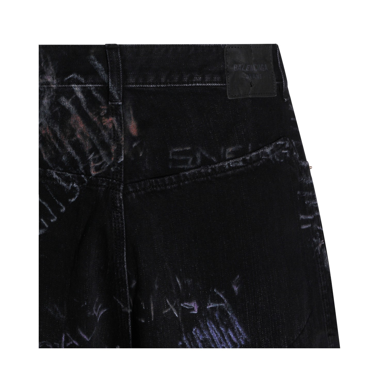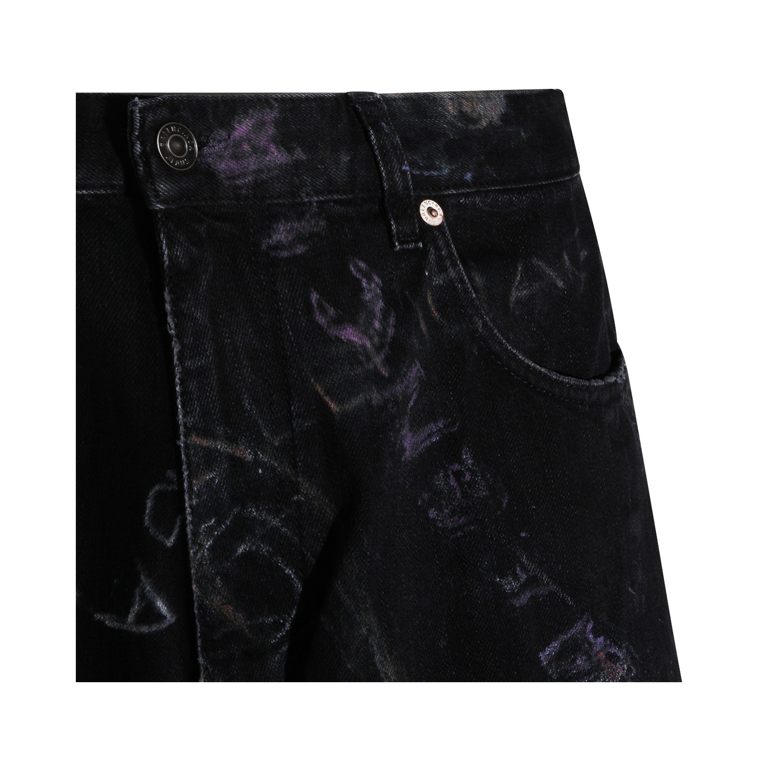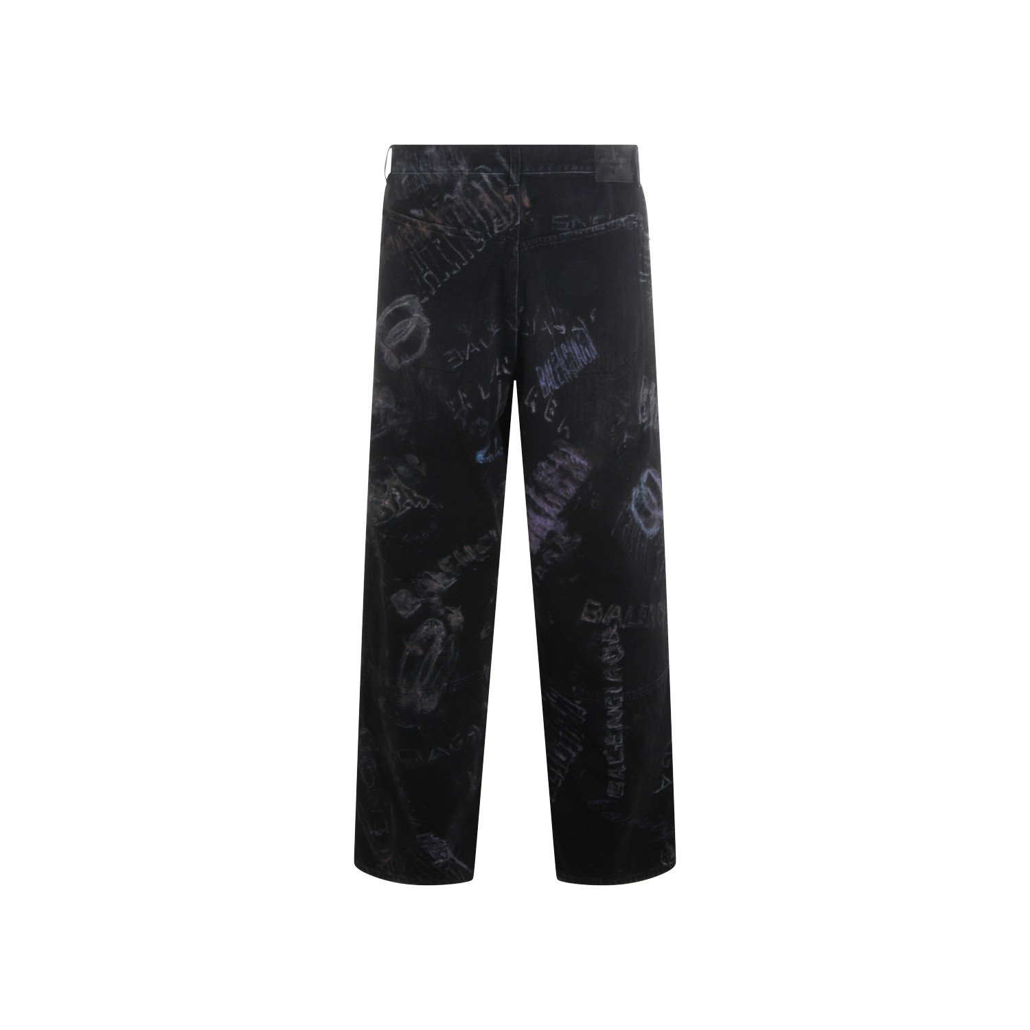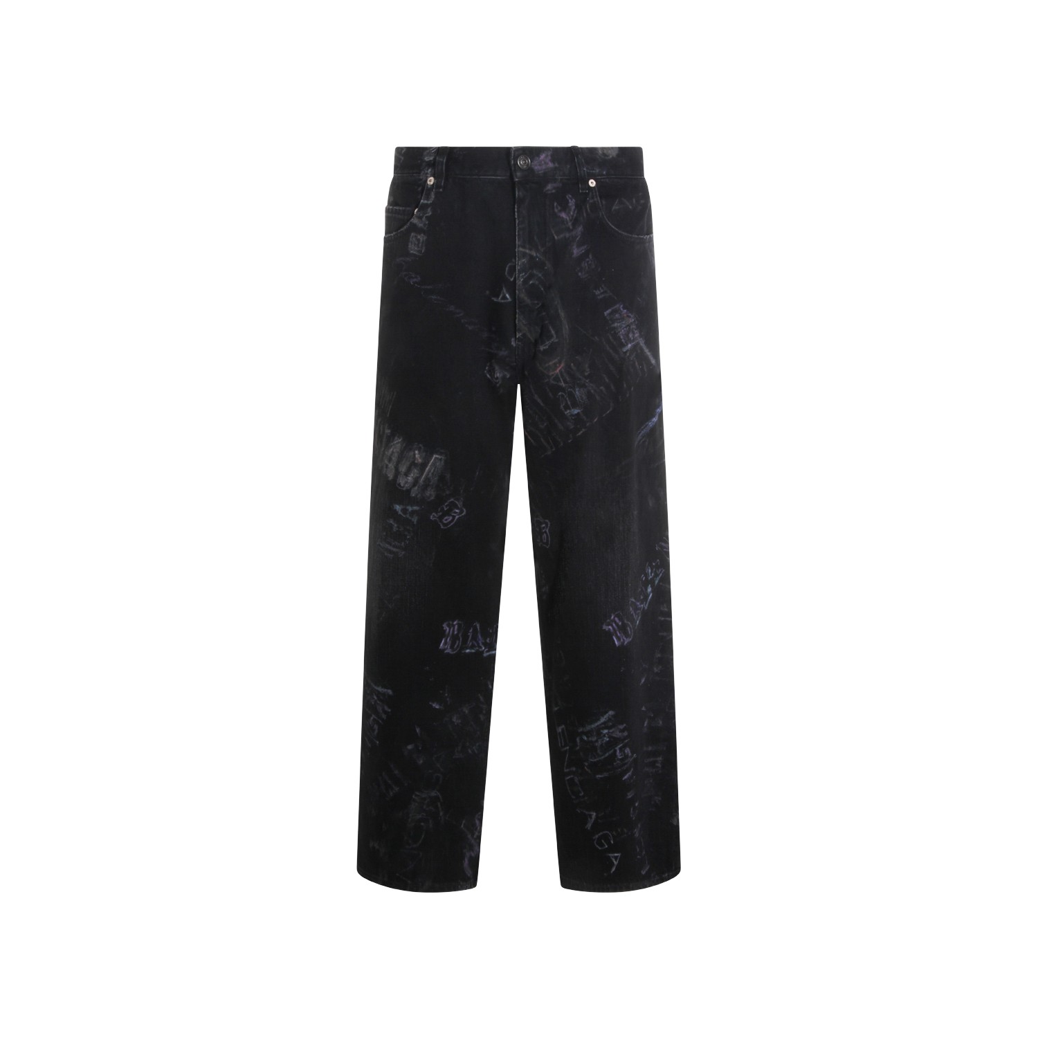 Black cotton jeans from Balenciaga featuring belt loops, zip and button fastening, graffiti pattern and wide leg.