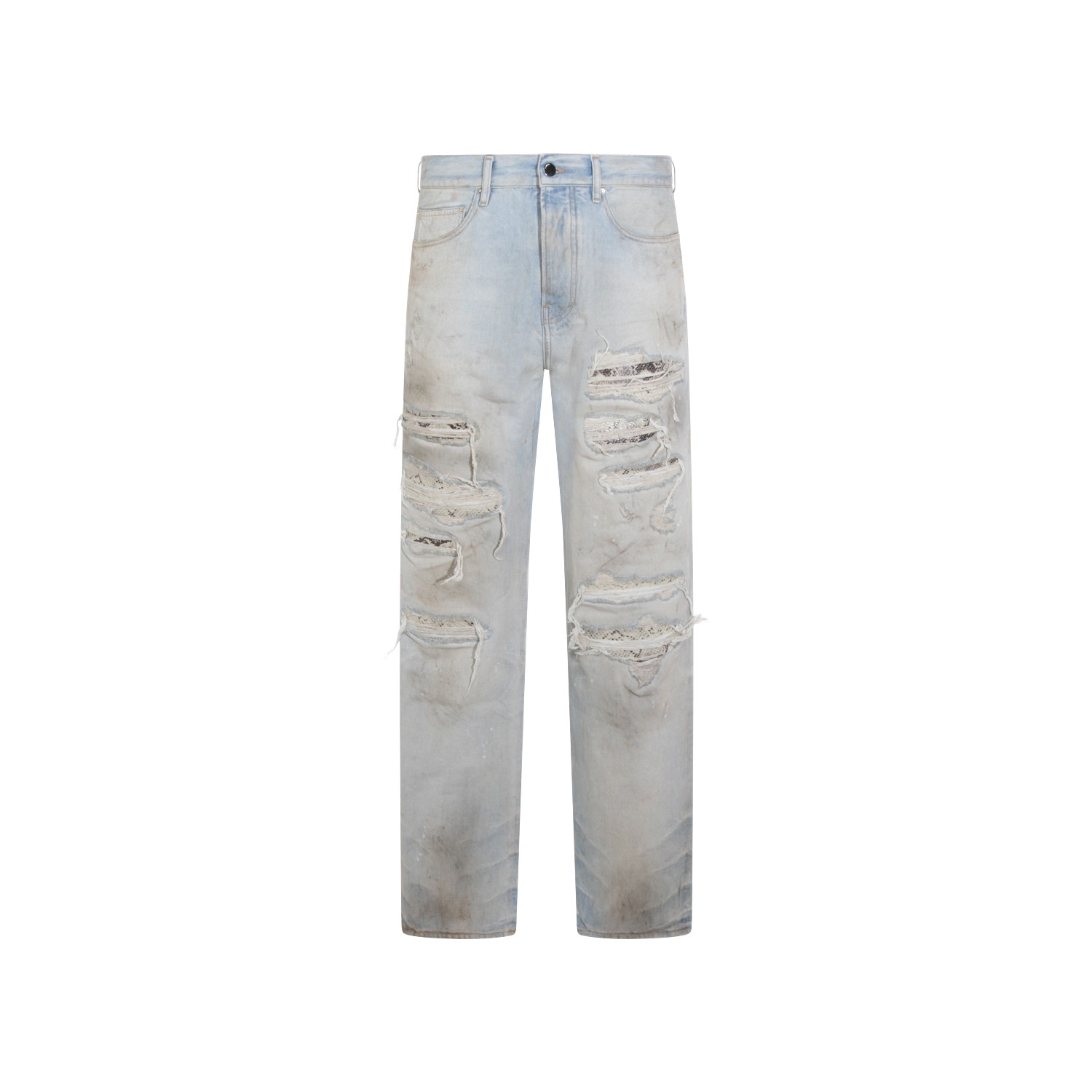 Light blue cotton jeans from Amiri featuring belt loops, zip and button fastening, pockets, worn effect and regular vestibility.