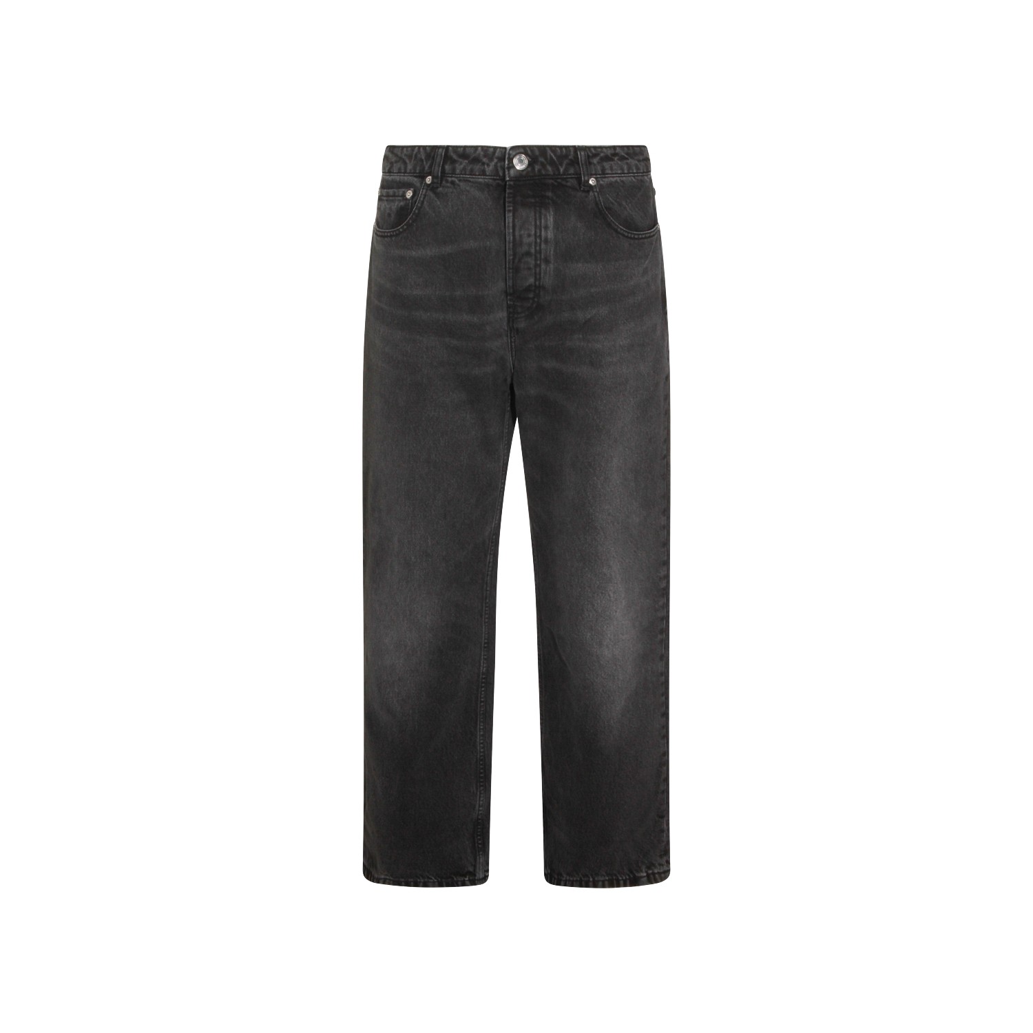Black cotton jeans from Ami Paris featuring belt loops, zip and button fastening, pockets, washed effect and regular fit.