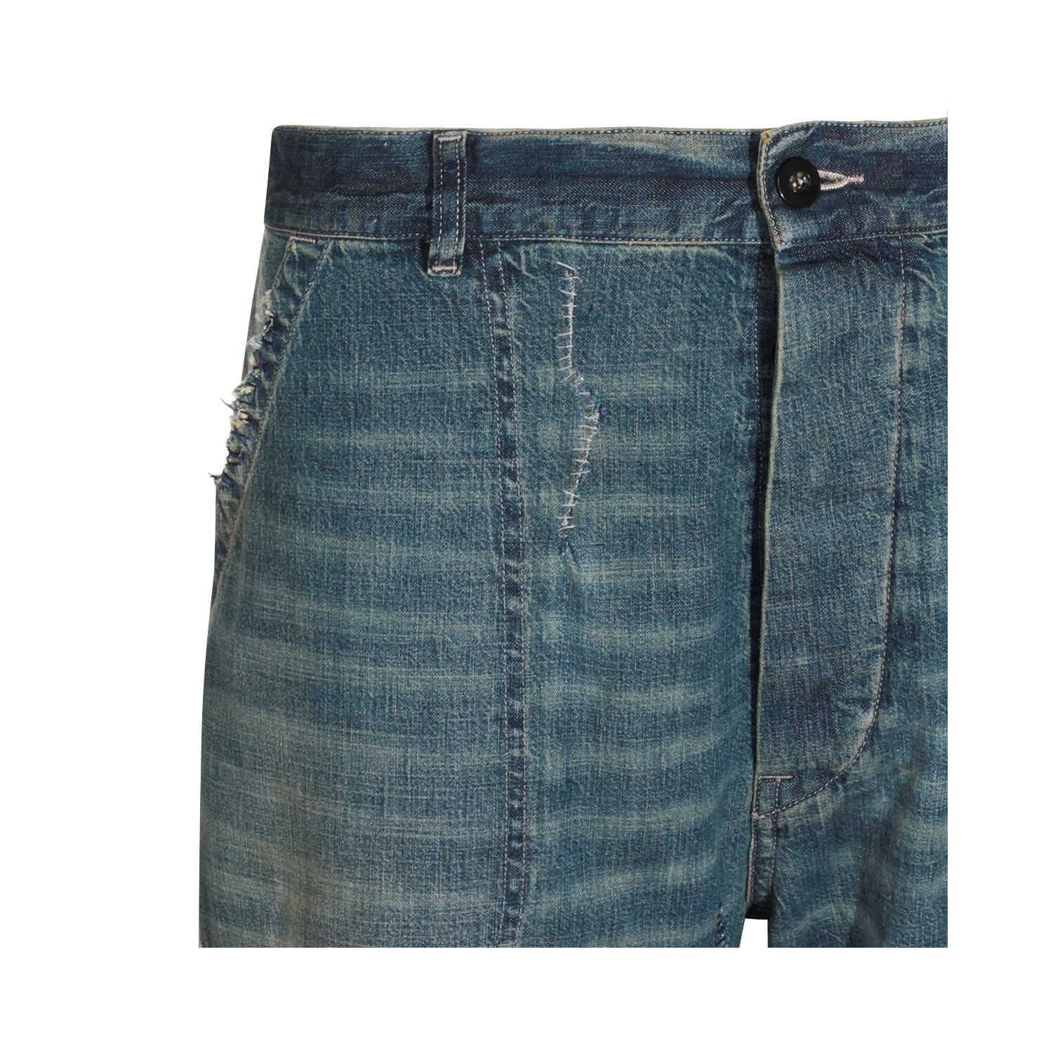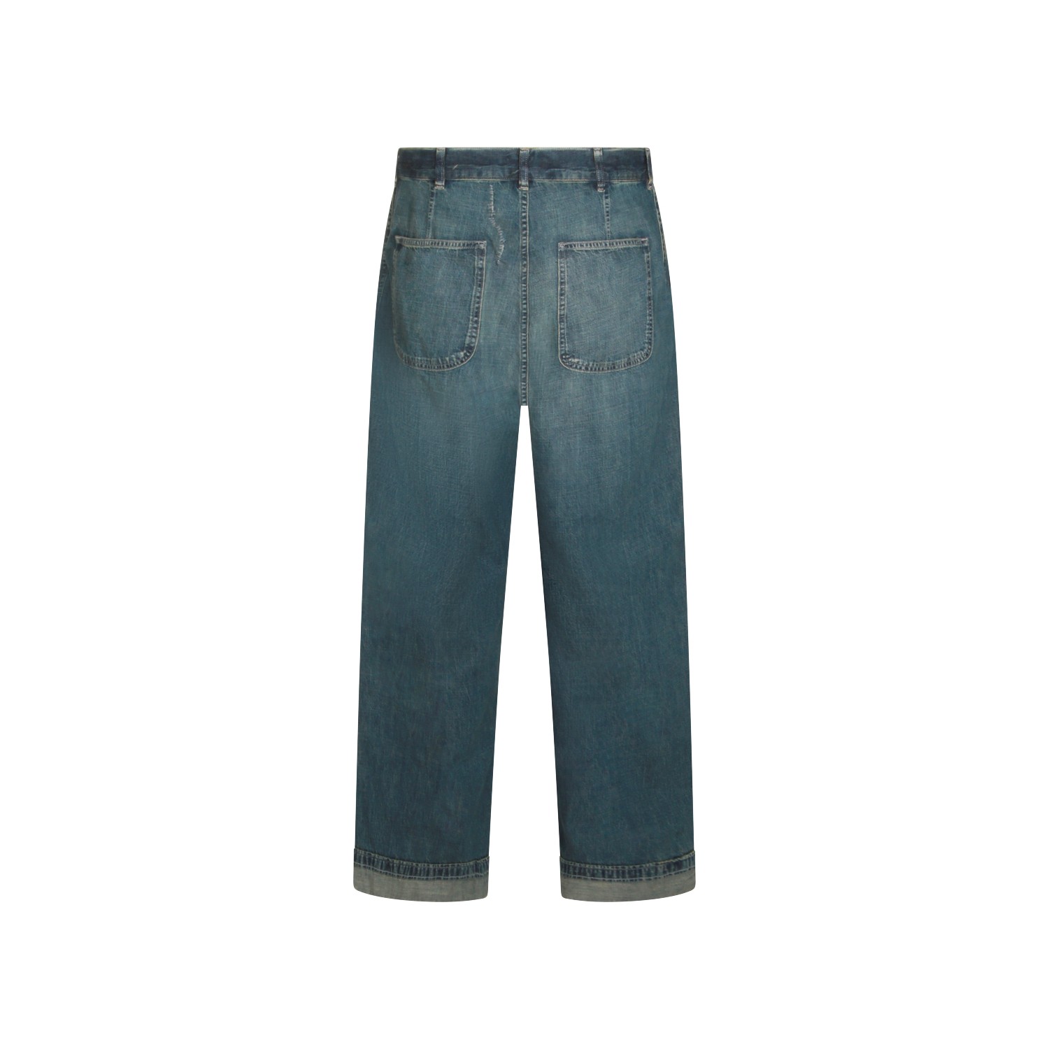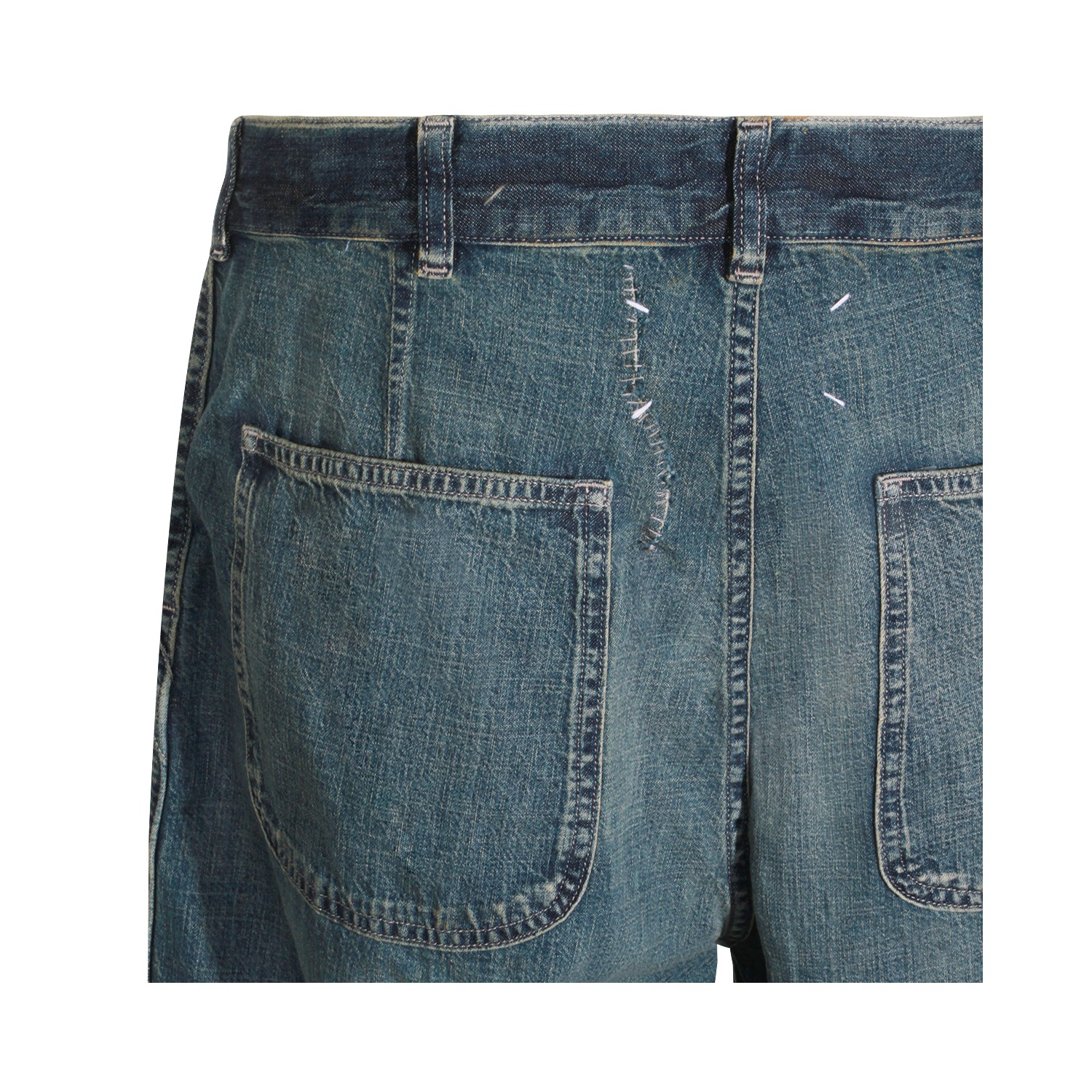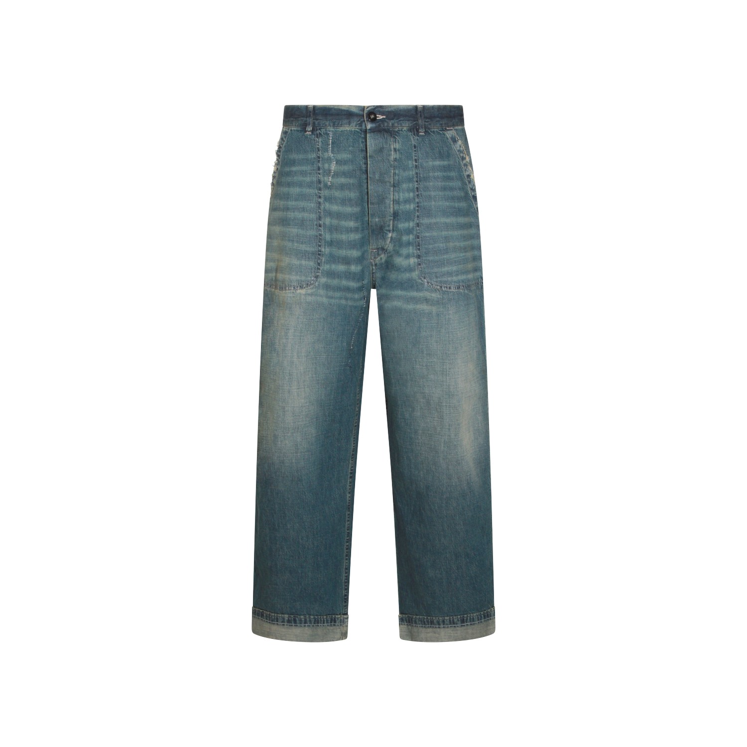 Blue cotton denim jeans from Maison Margiela featuring belt loops, zip and button fastening, washed effect and regular vestibility.