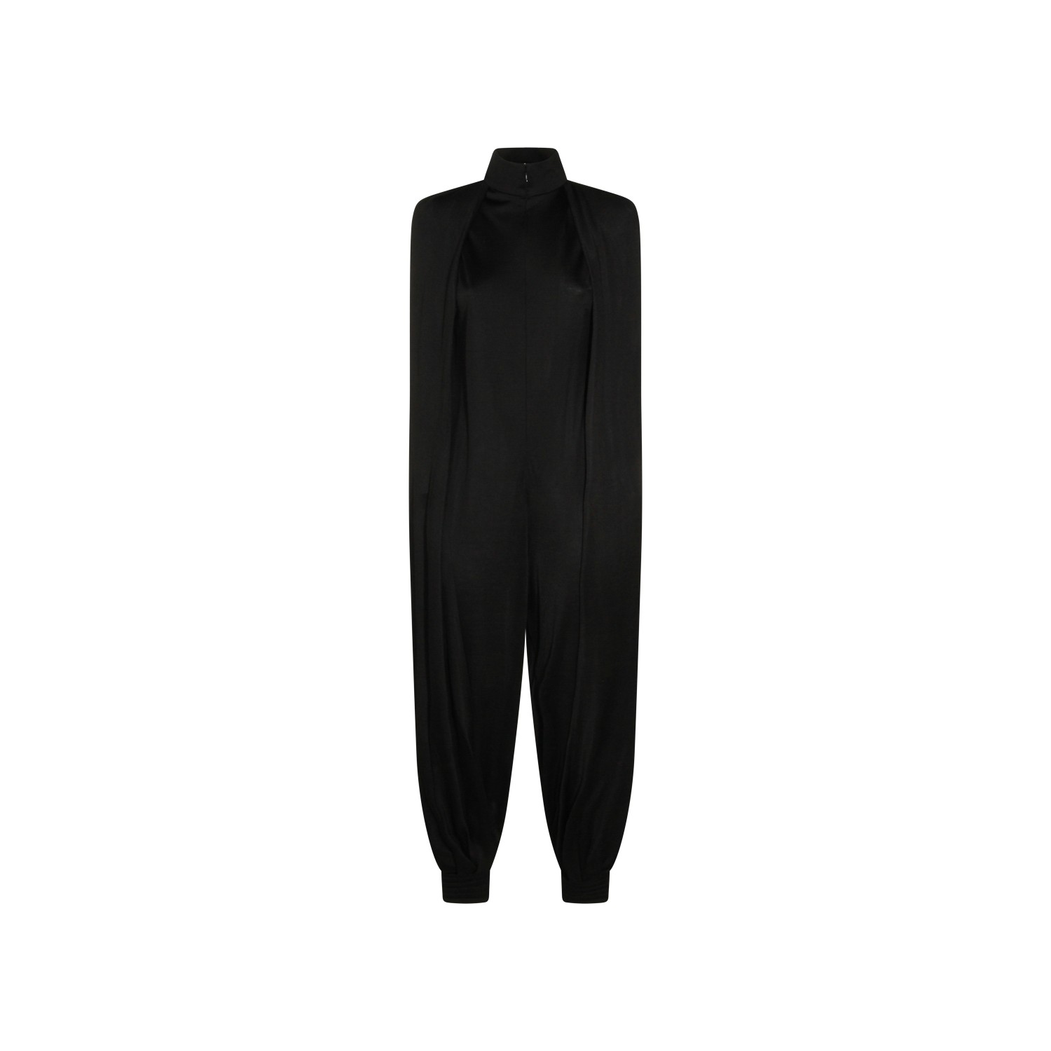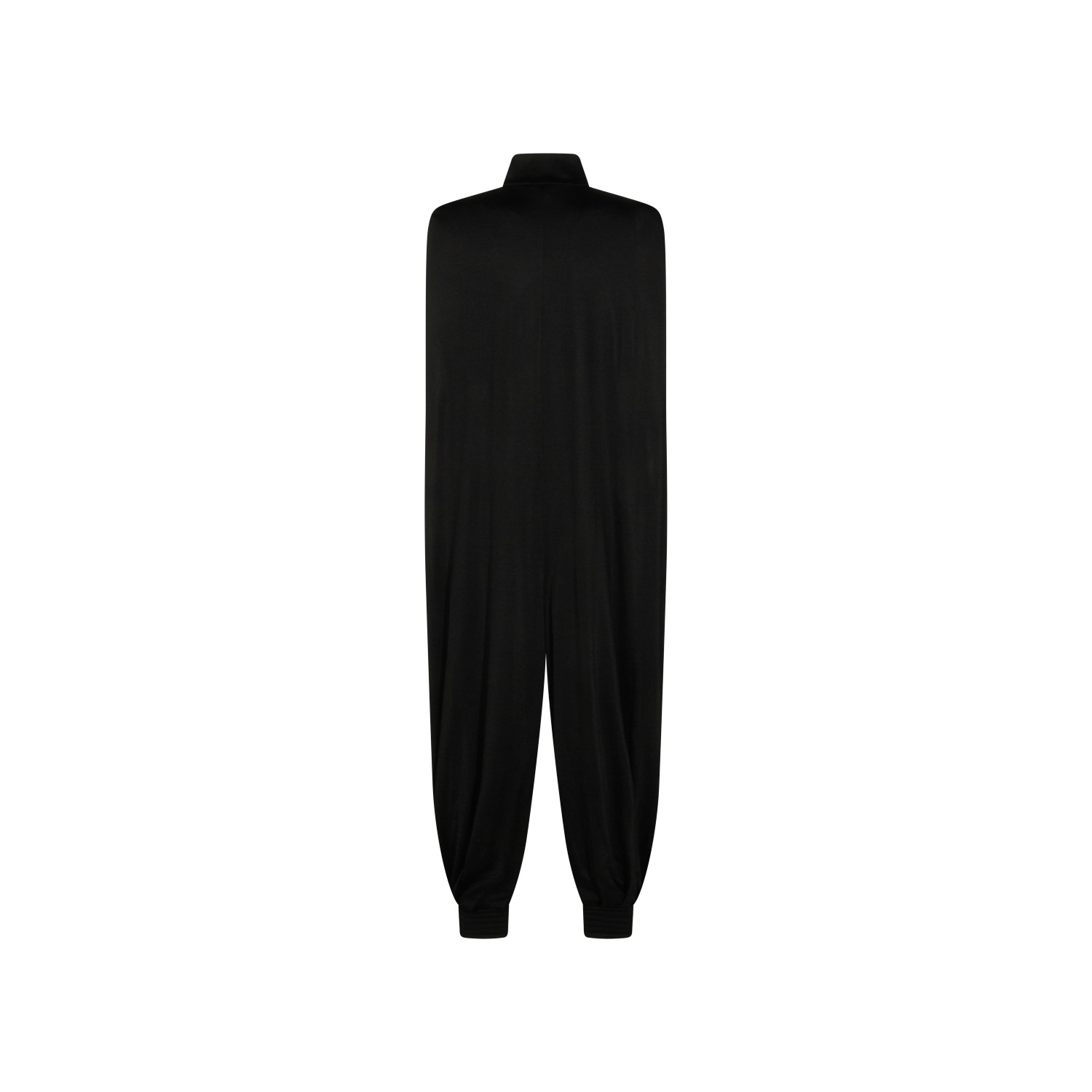 Noir stretch jumpsuit from Alaia featuring sleeveless, high neck, zip closure at back and panelled line.