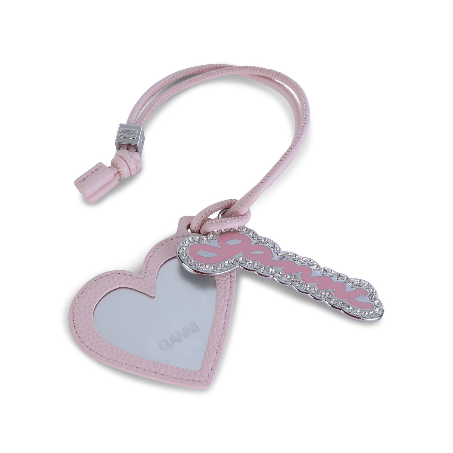 Pink leather keyring from Ganni featuring silver tone hardware.