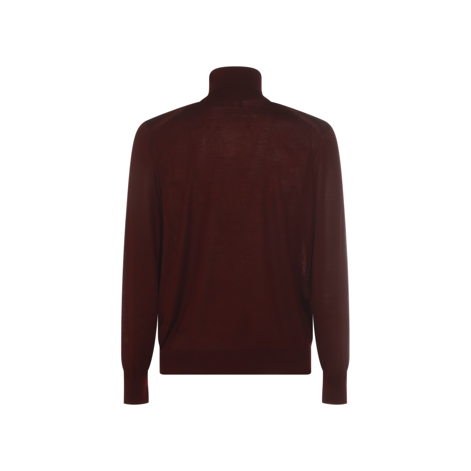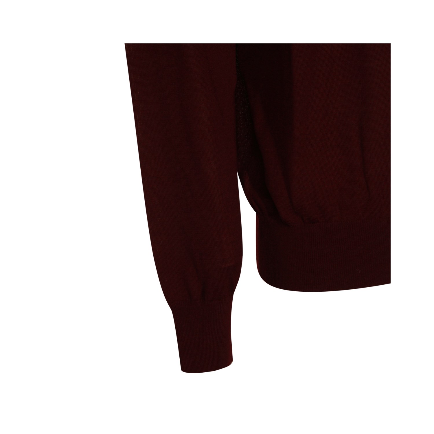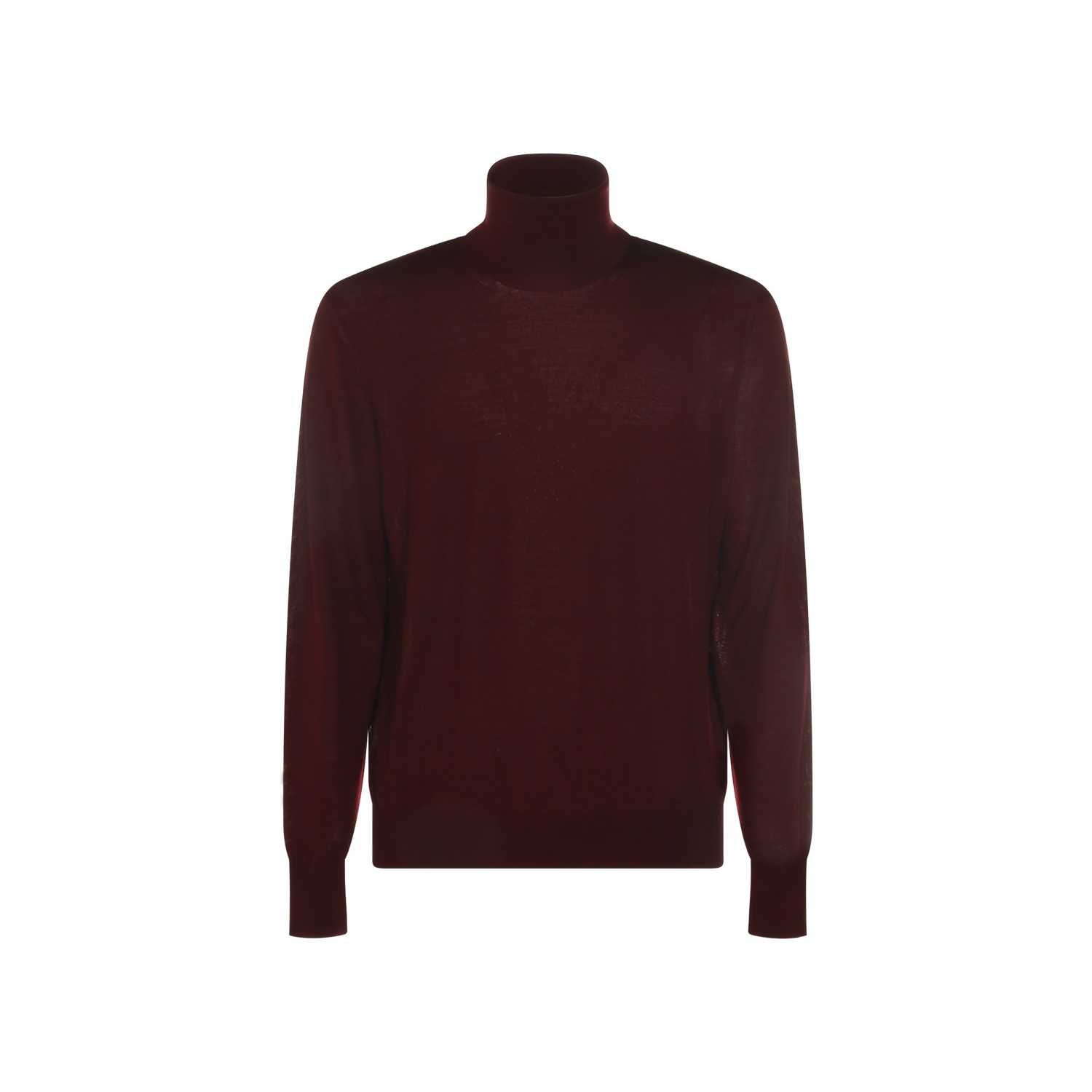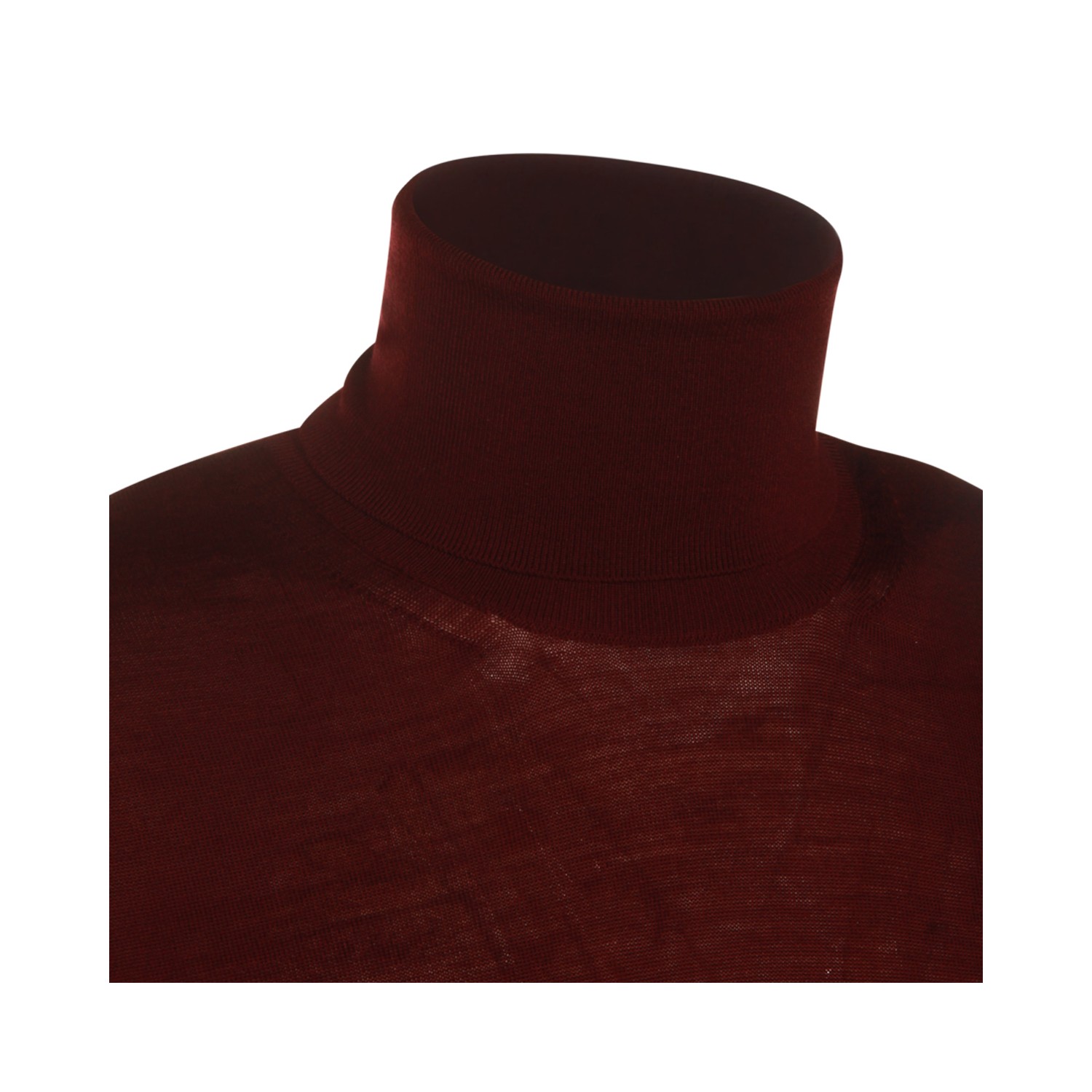 Bordeaux wool knitwear from Saint Laurent featuring high collar, long sleeves, ribbed cuffs and regular vestibility.