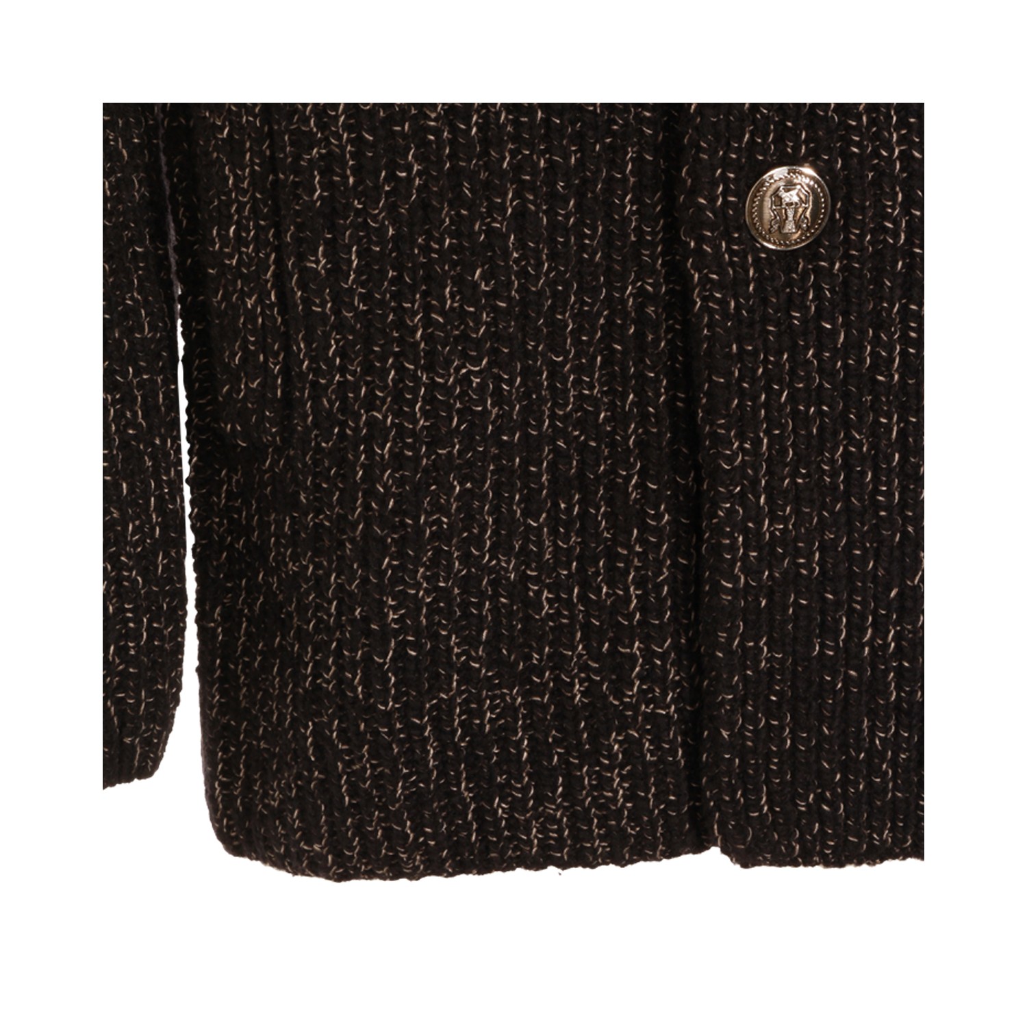 Black wool knitwear from Brunello Cucinelli featuring lapel collar, long sleeves, frontal fastening and regular vestibility.