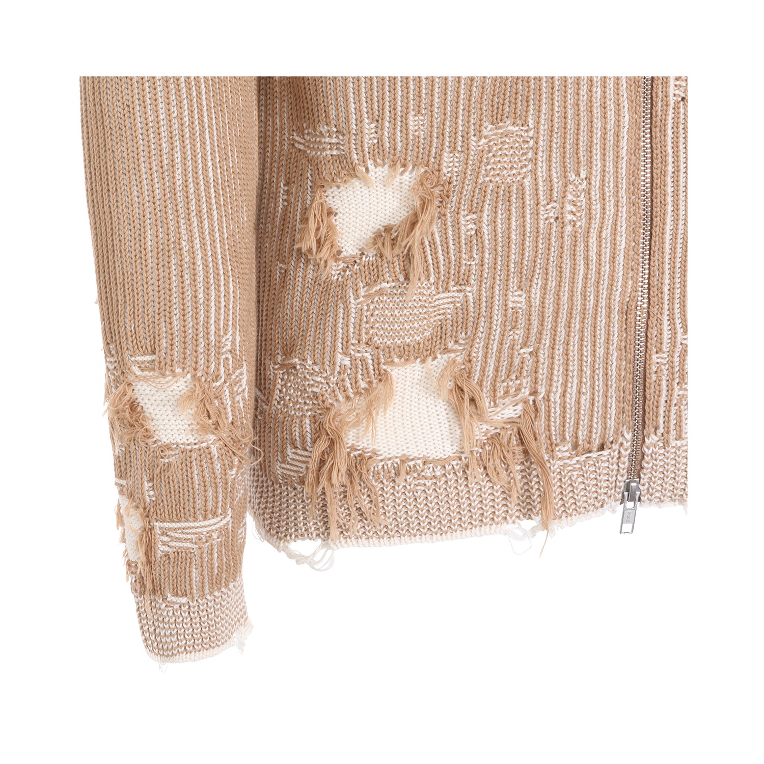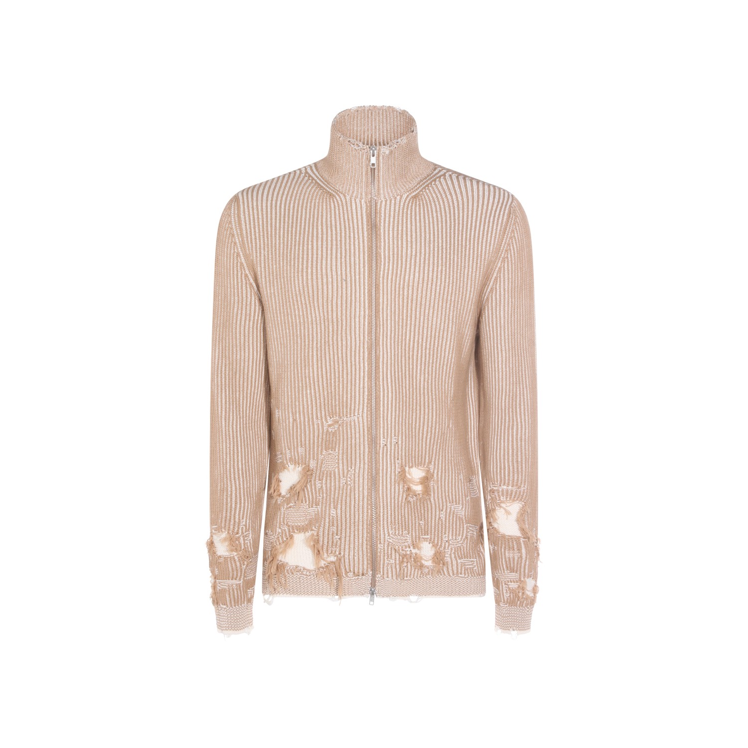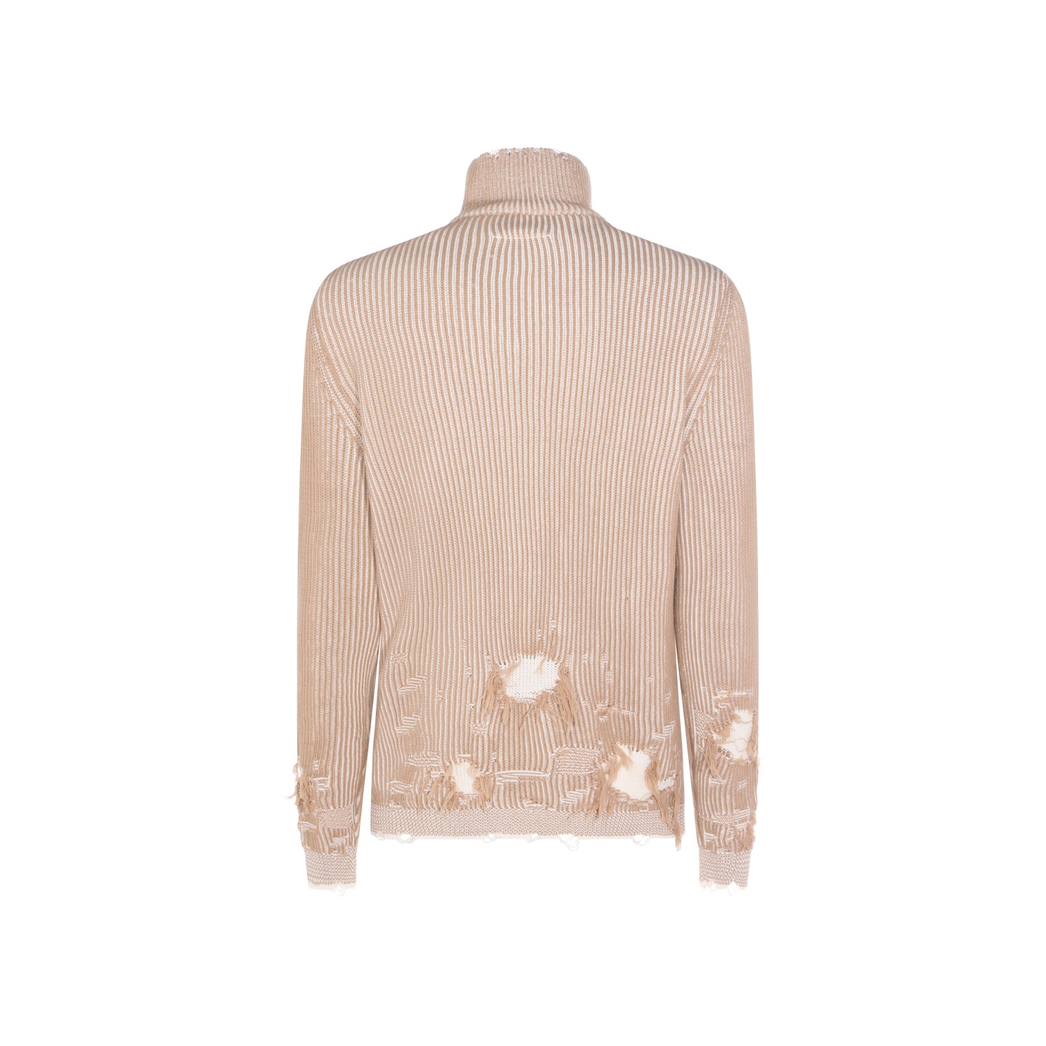 Camel chalk cotton sweater from MM6 Maison Margiela featuring long sleeves, zip closure, stressed effect and high neck.