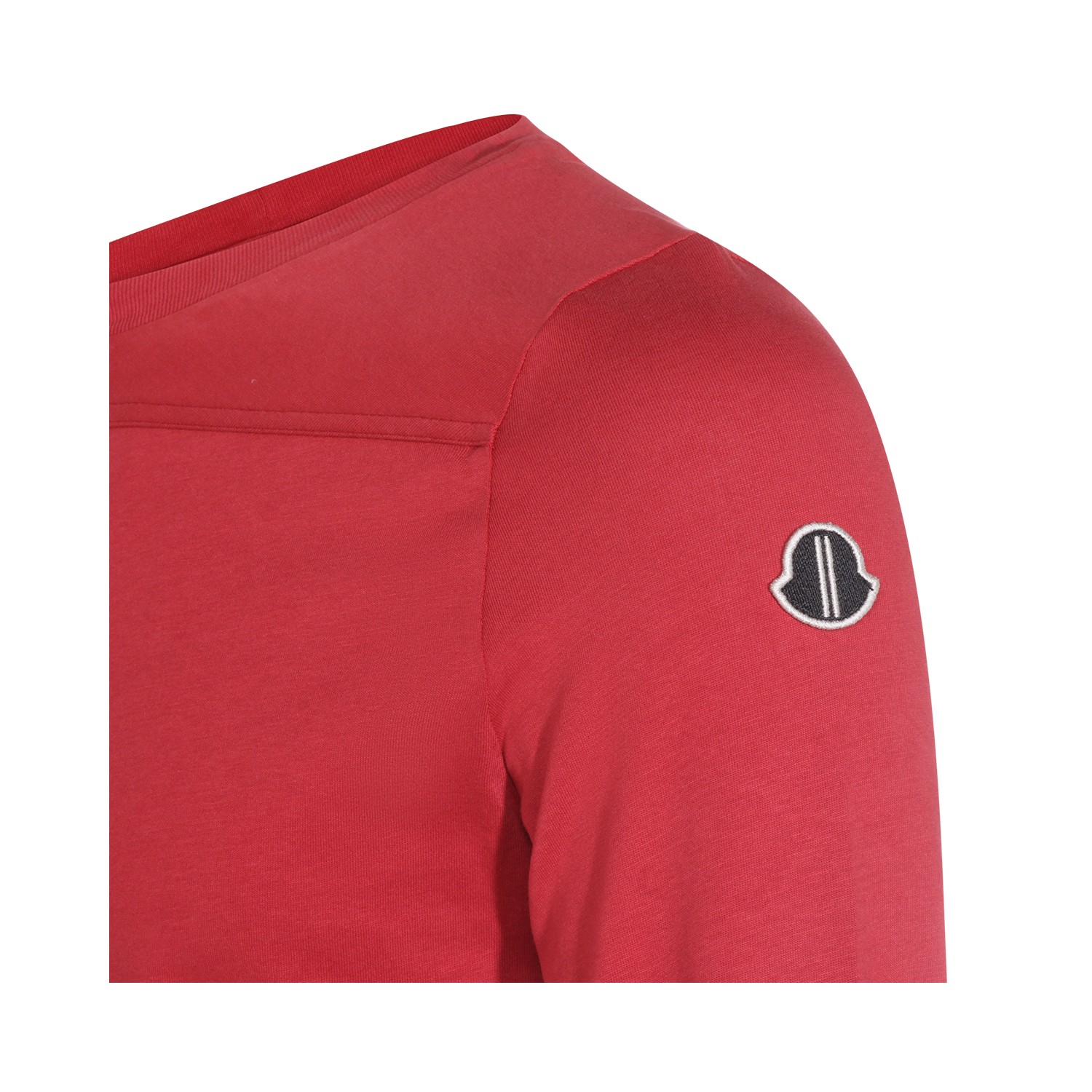 Red cotton Girder knitwear from Moncler + Rick Owens featuring choker, long sleeves, embroidered logo patch and slim fit.