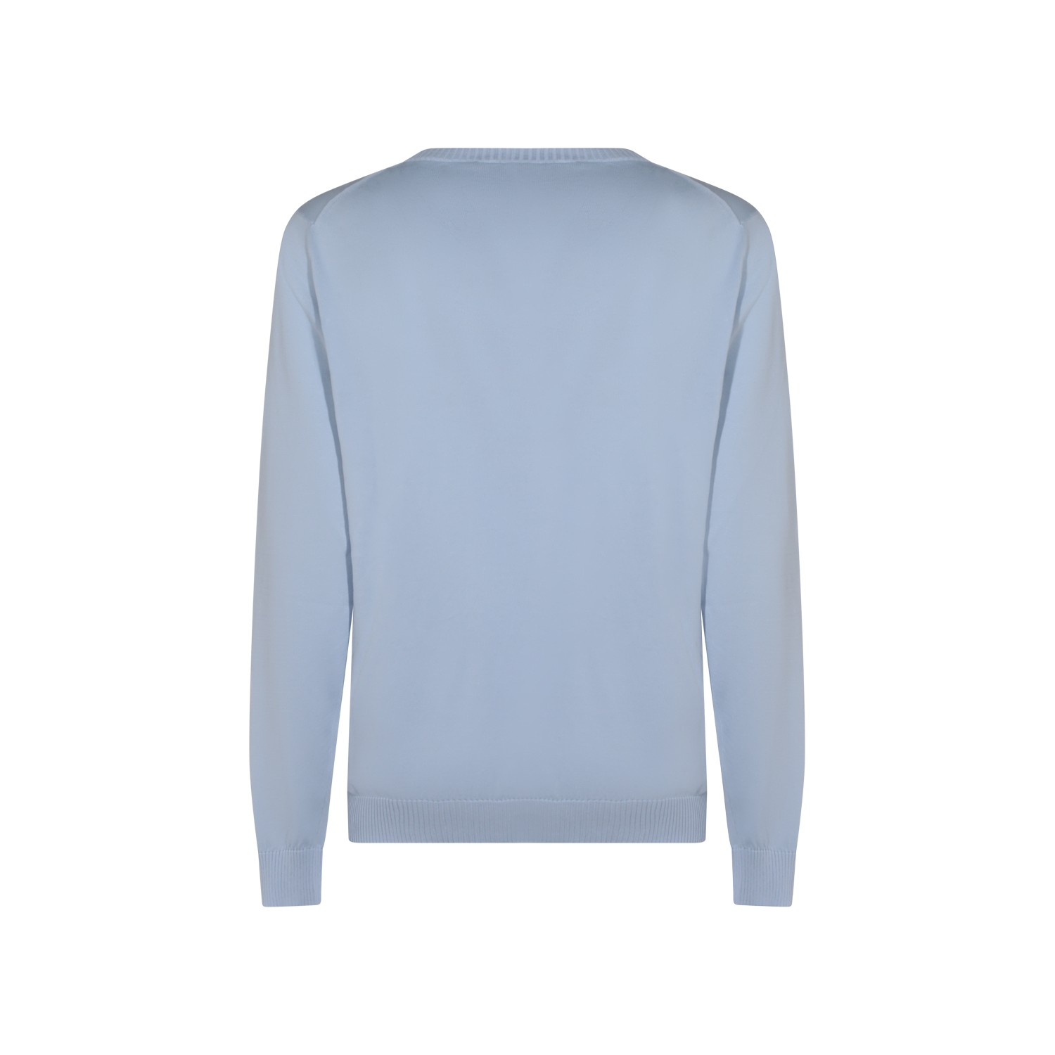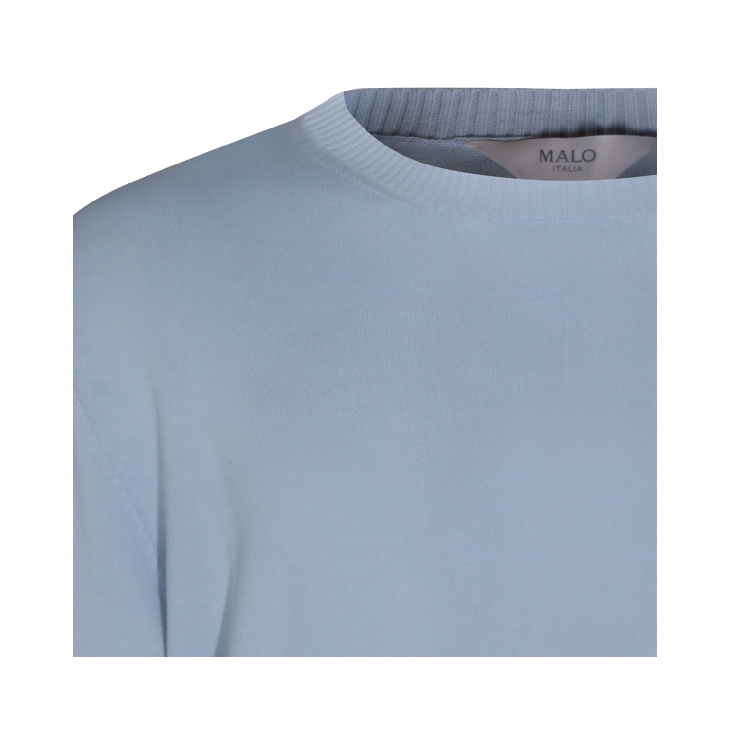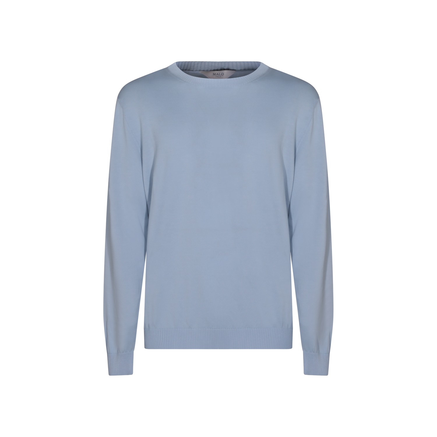 Light blue cotton knitwear from Malo featuring round collar, long sleeves, ribbed cuffs and hem and regular vestibility.