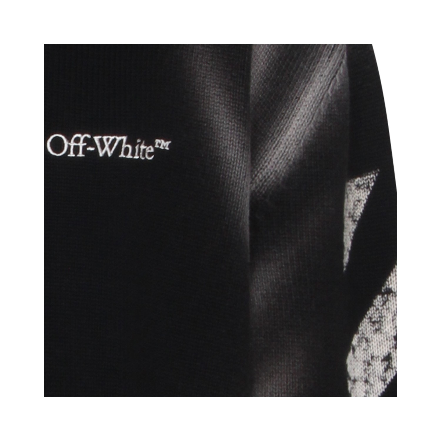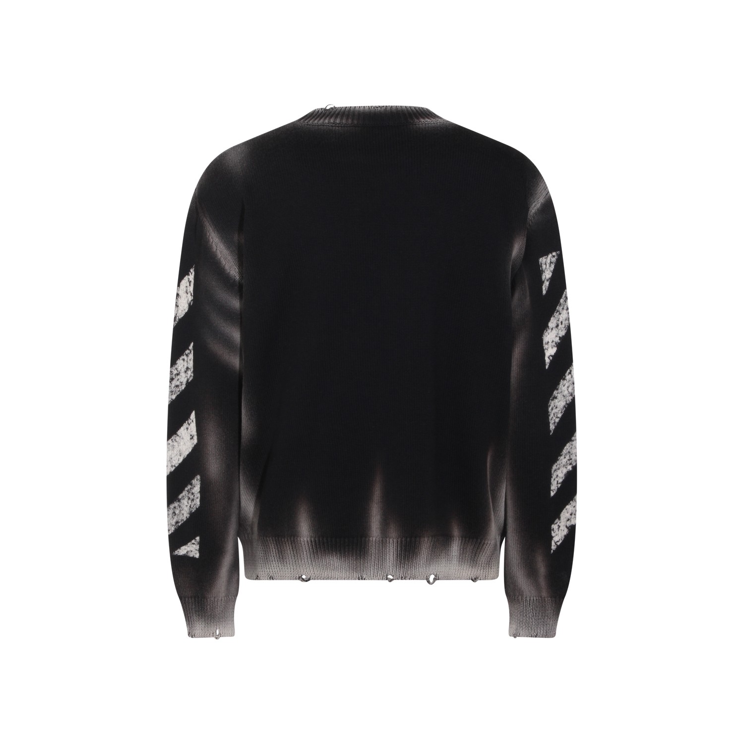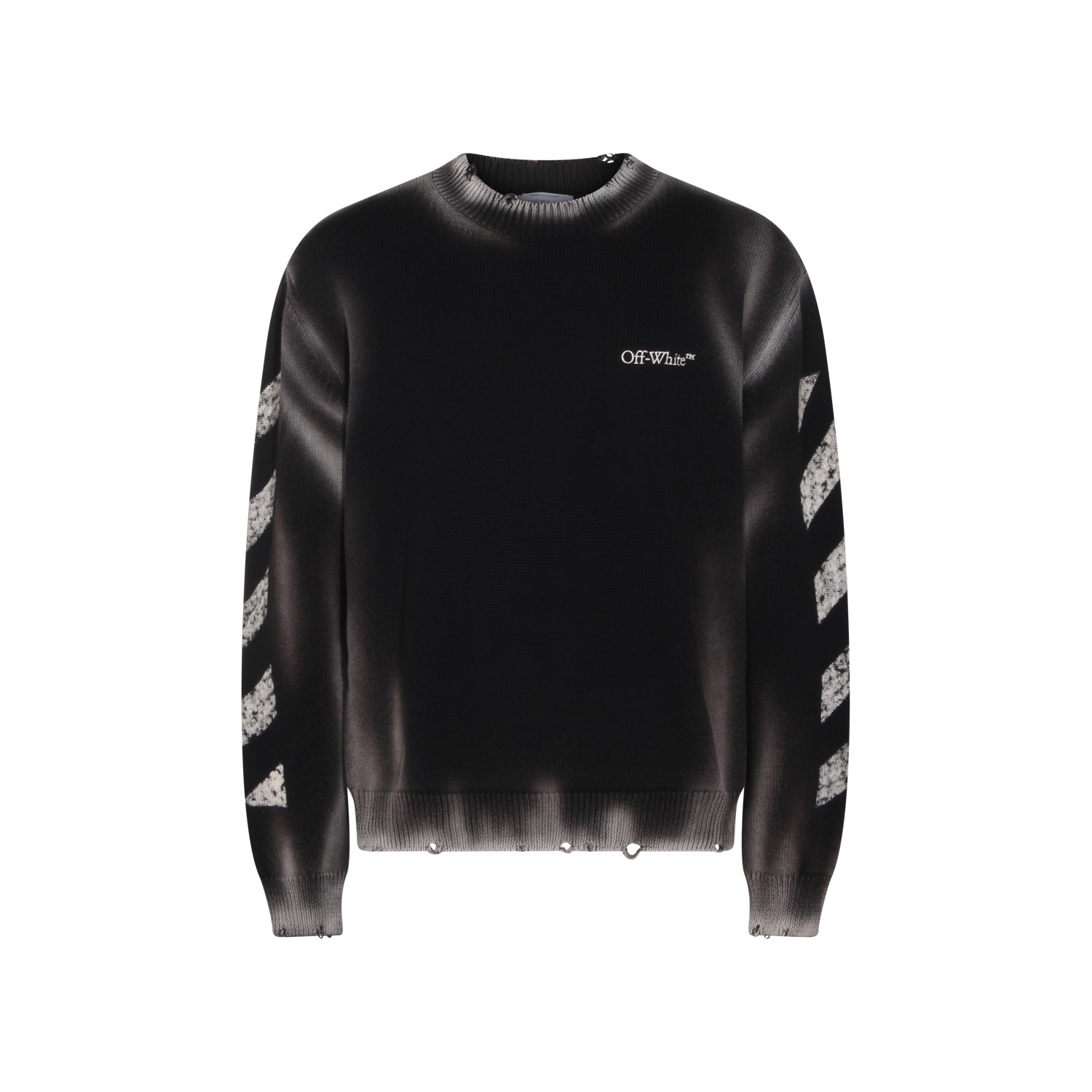 Black cotton knitwear from Off-White featuring crew neckline, long sleeves, used effect, frontal embroidered logo and regular vestibility.
