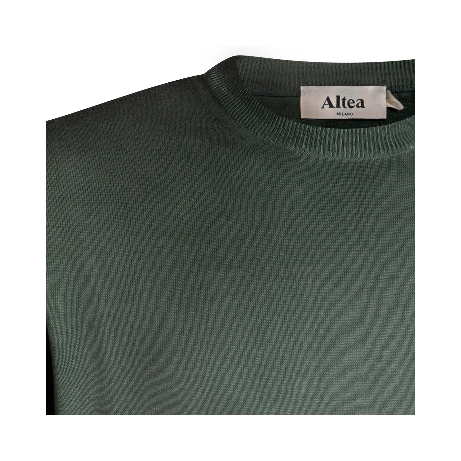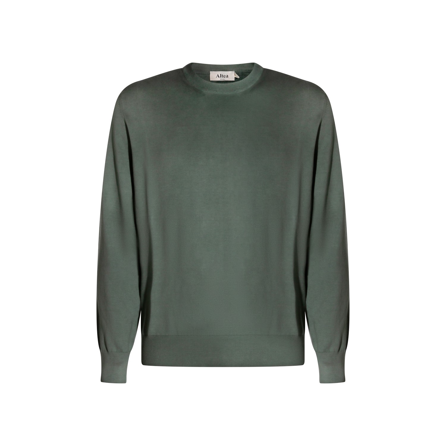 Dark green cotton knitwear from Altea featuring long sleeves, ribbed cuffs and hem and soft vestibility.
