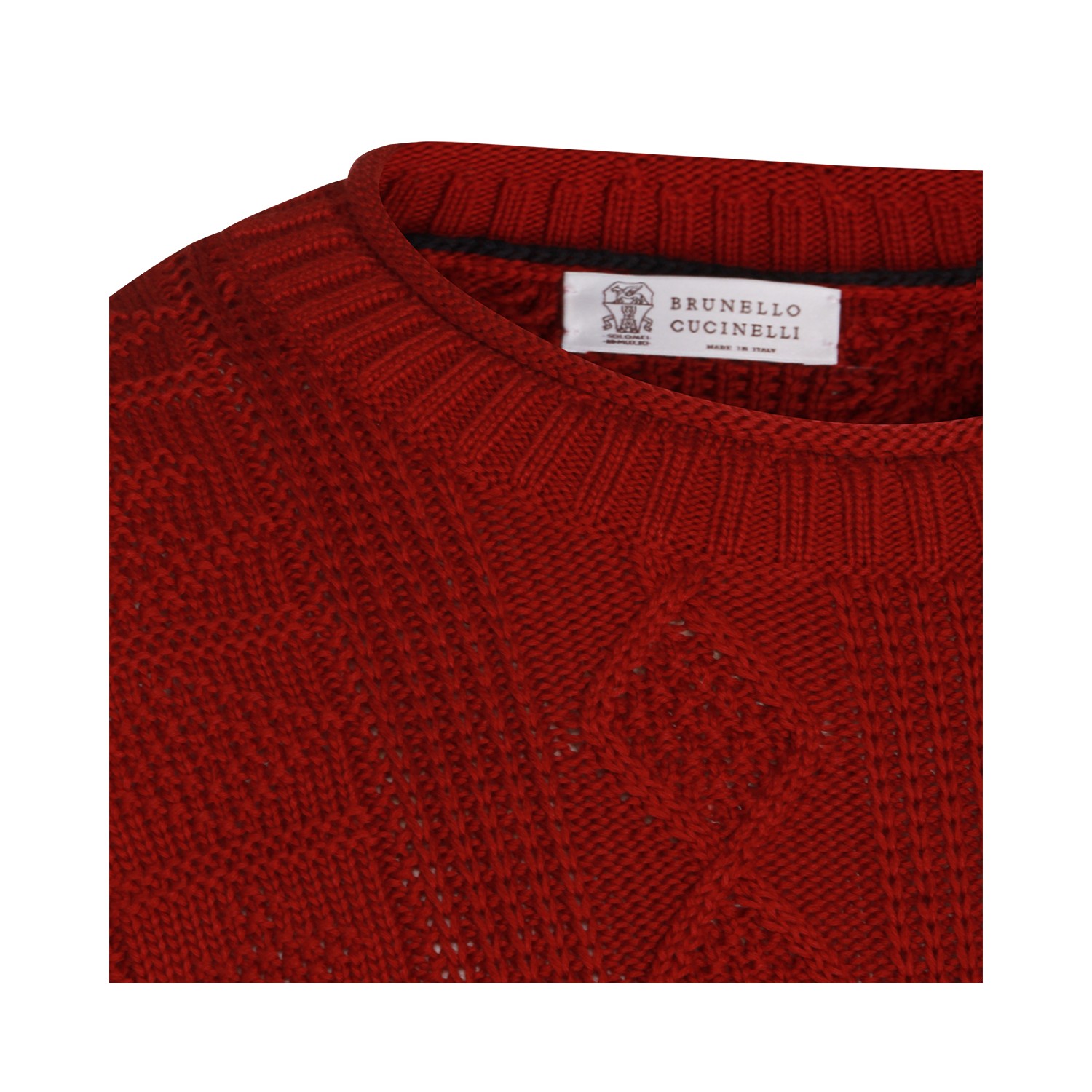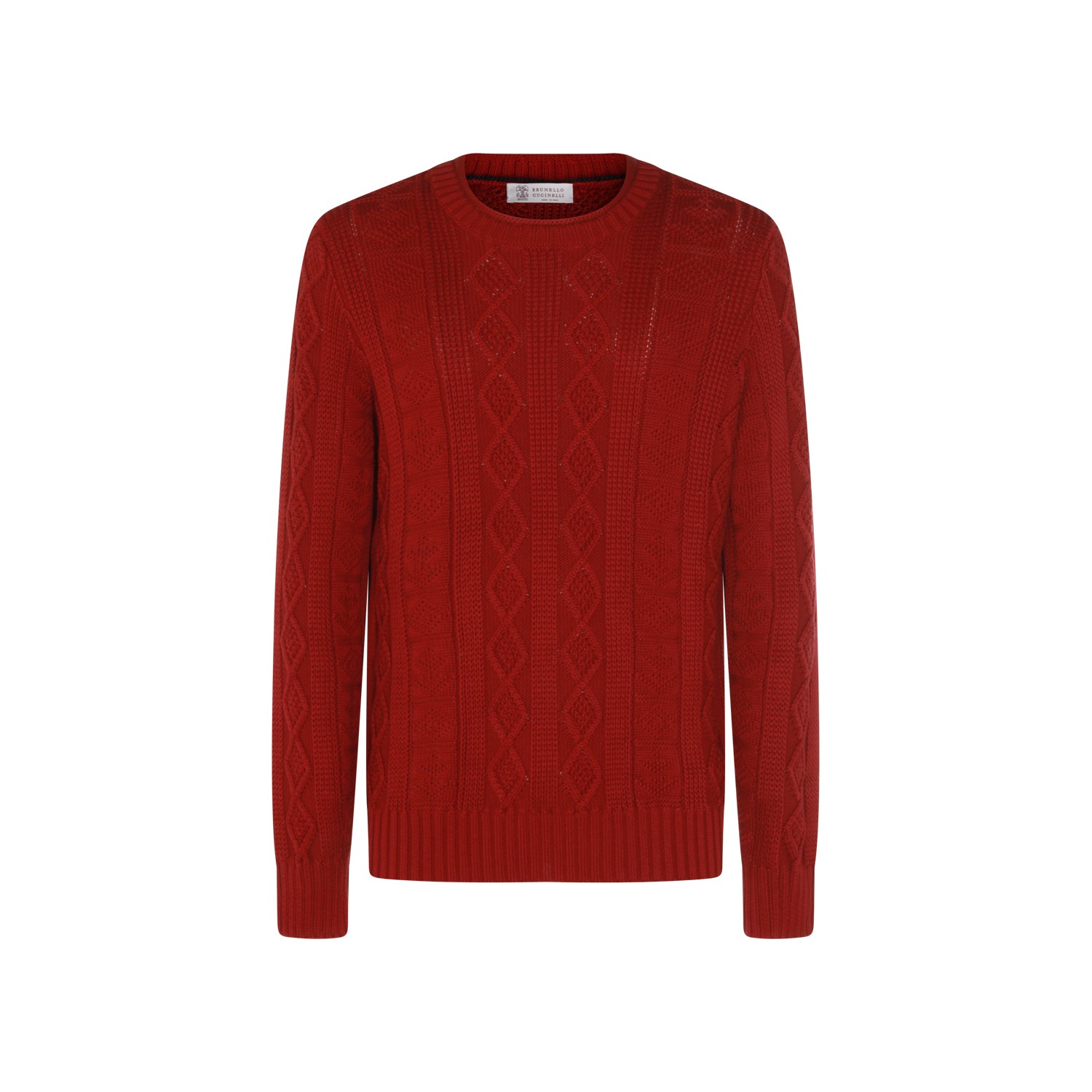 Red cotton nitwear from Brunello Cucinelli featuring crew neckline, long sleeves, braided workmanship and regular vestibility.