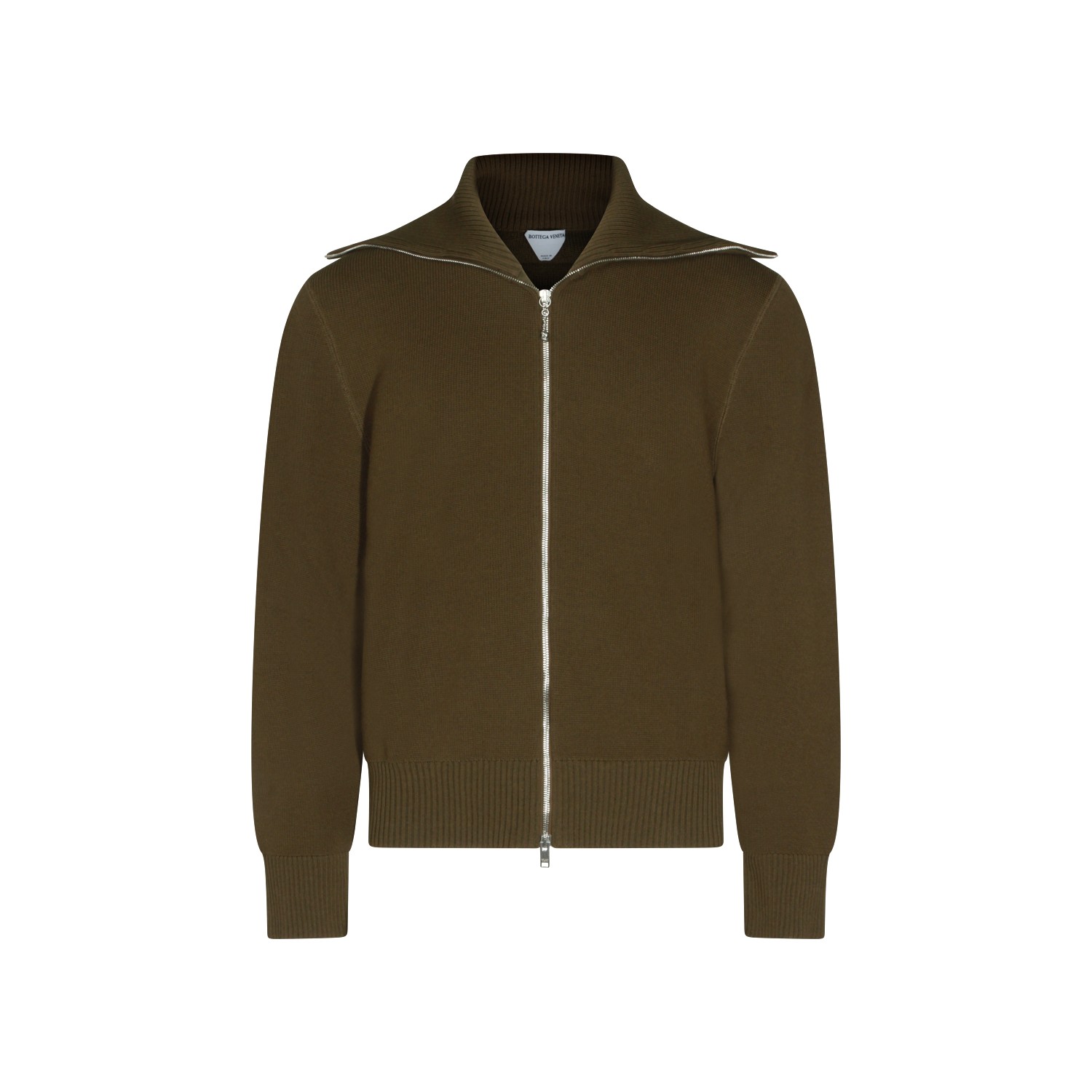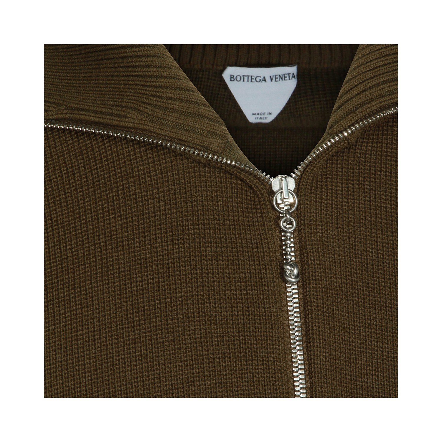 Brown wool cotton blend knitwear from Bottega Veneta featuring long sleeves, double zip fastening and regular fit.