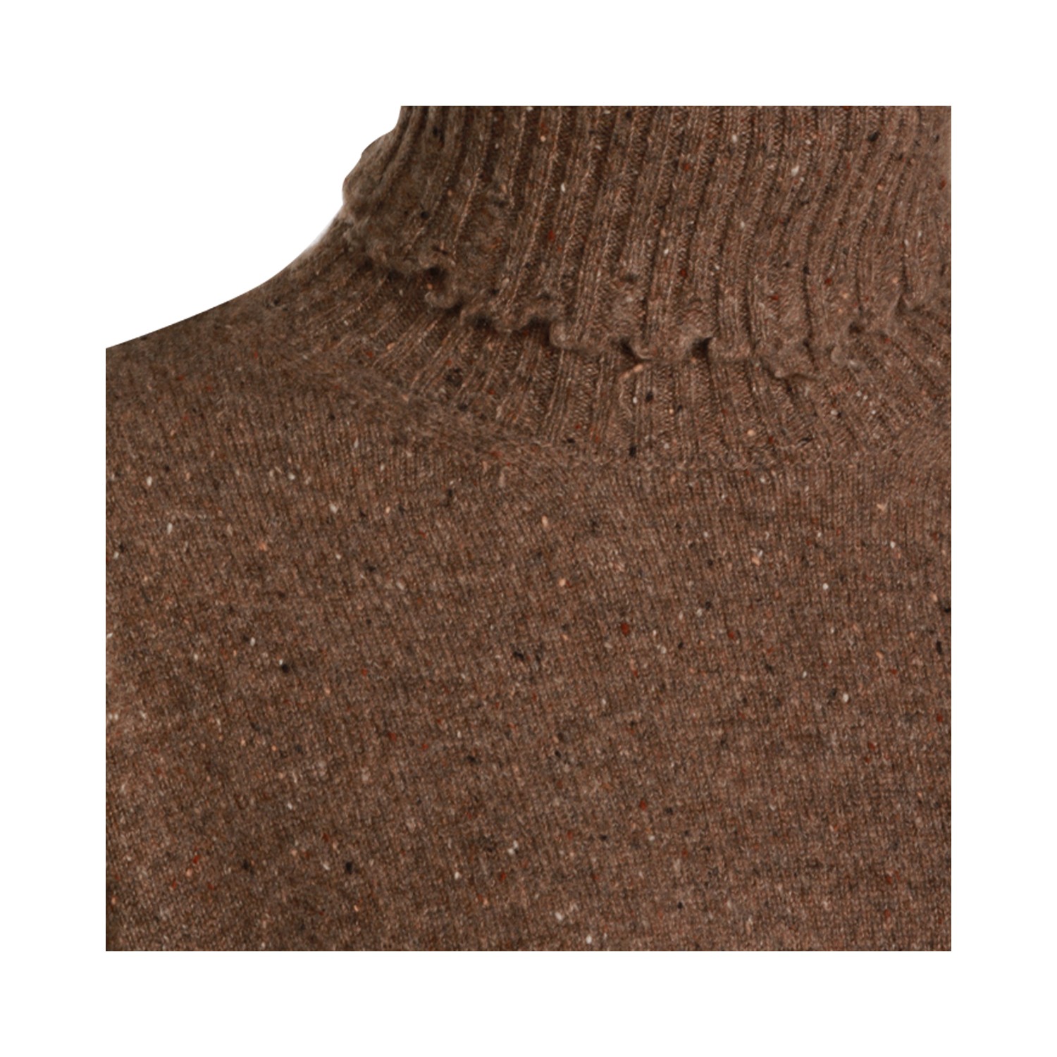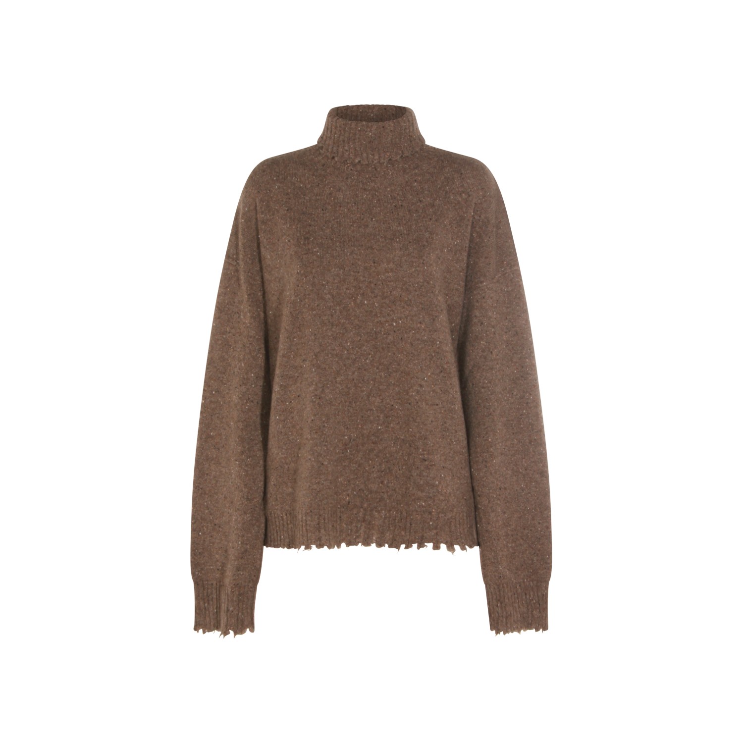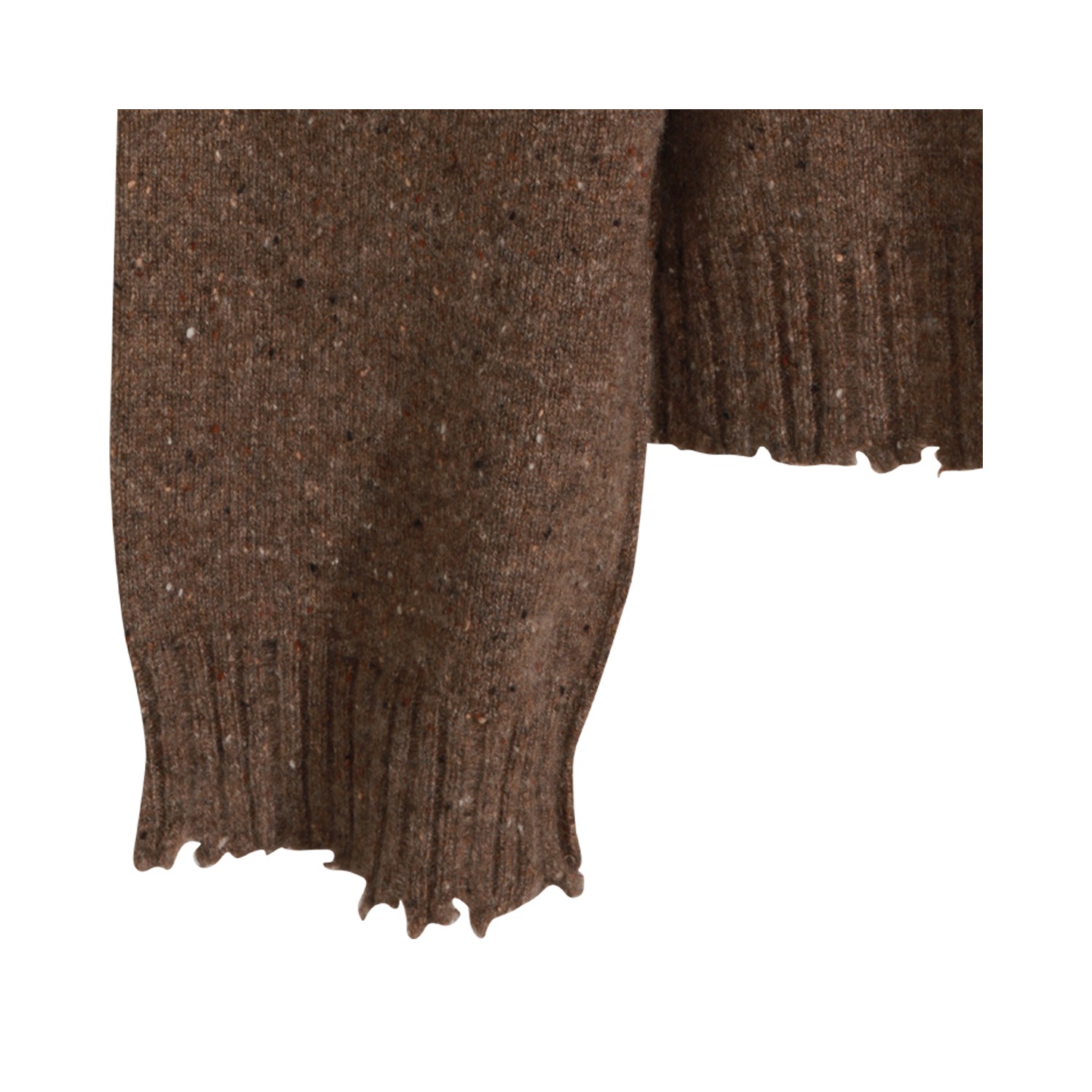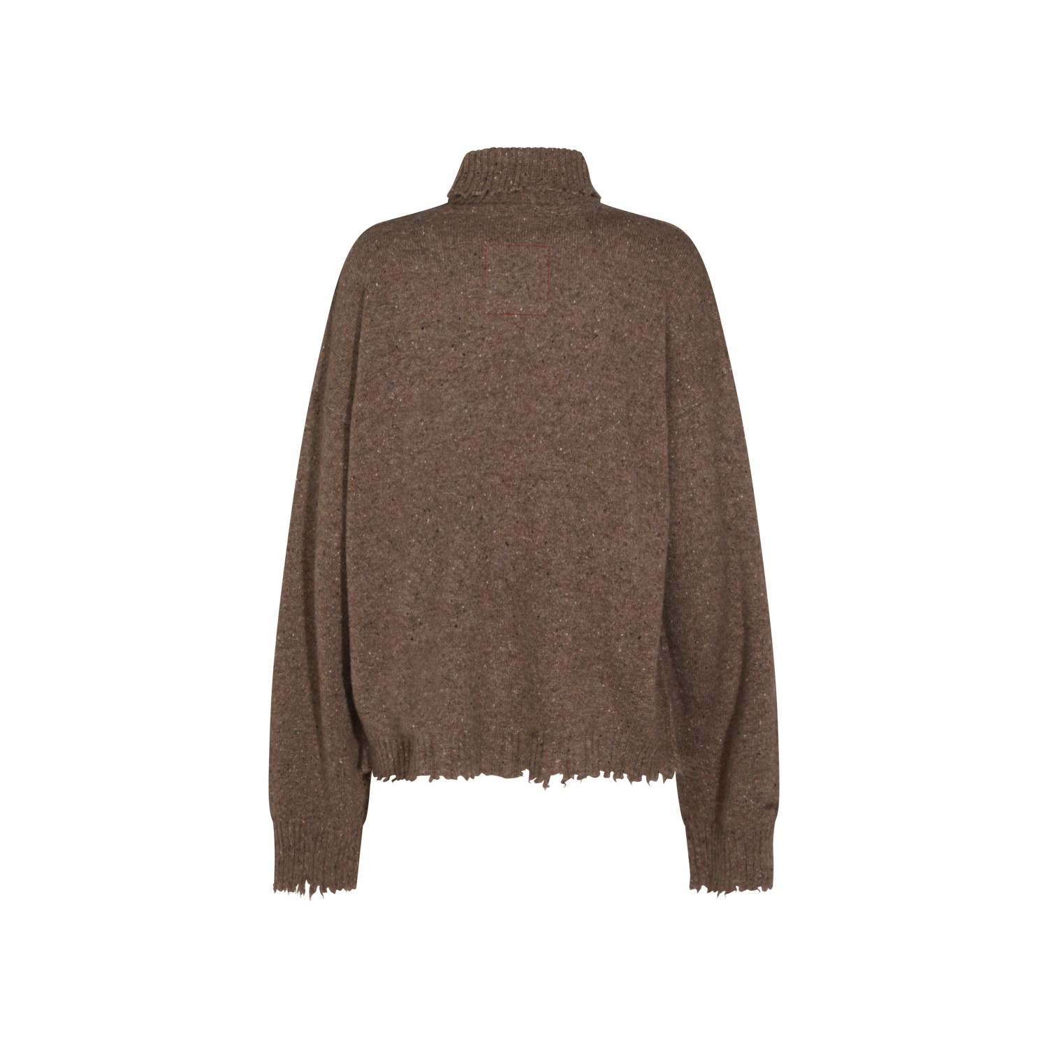 Brown cashmere knitwear from Uma Wang featuring high collar, long sleeves, worn hem and regular vestibility.