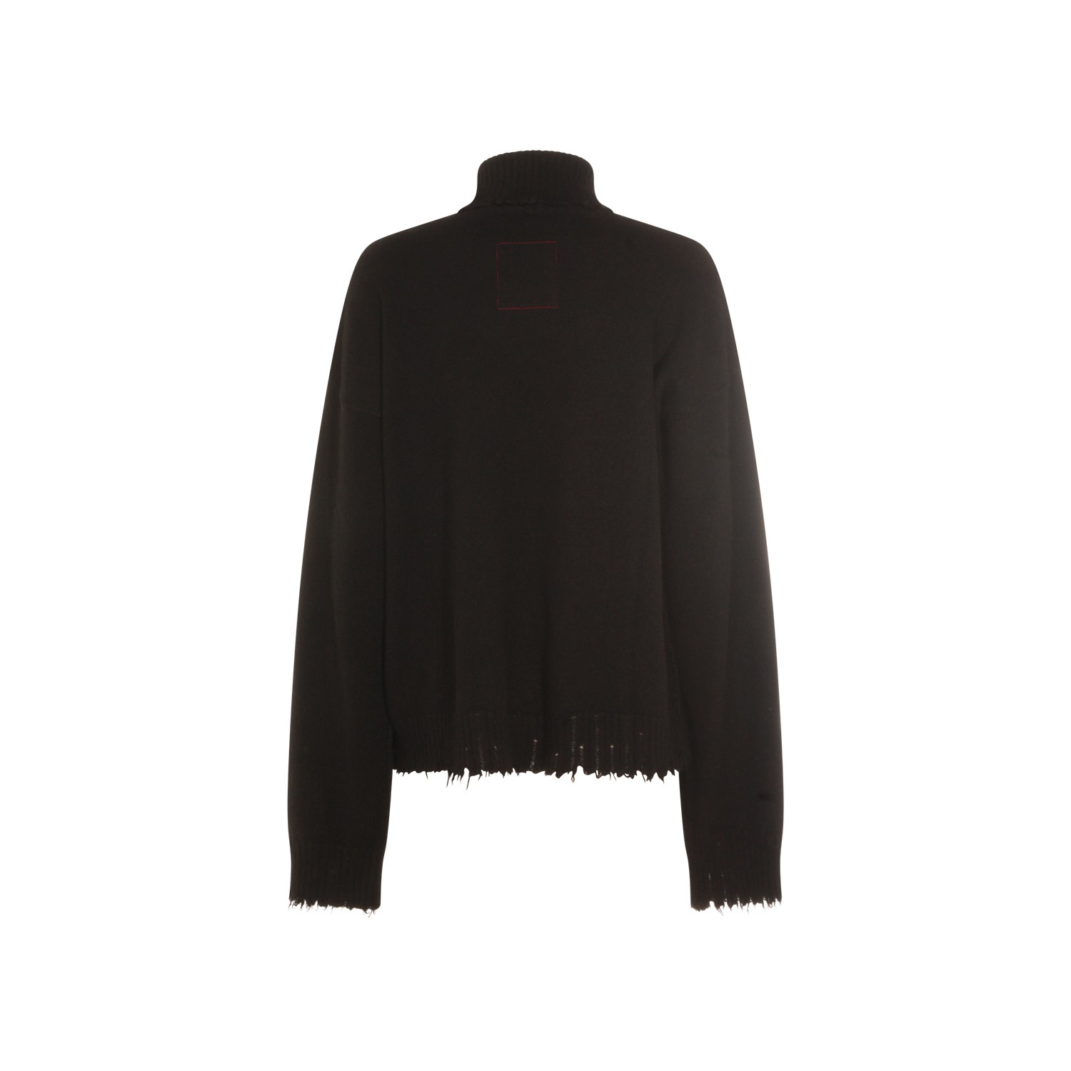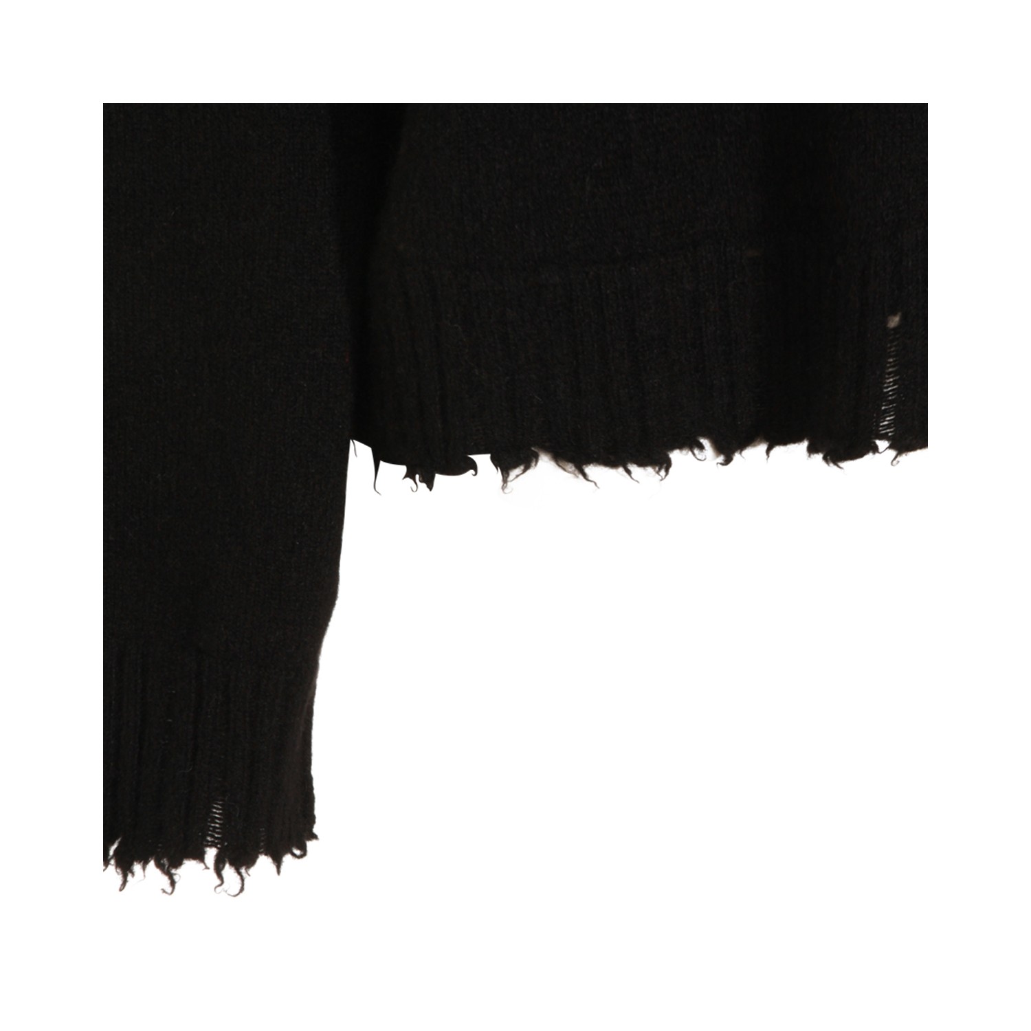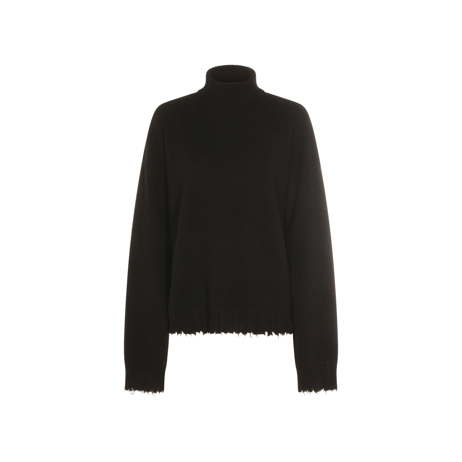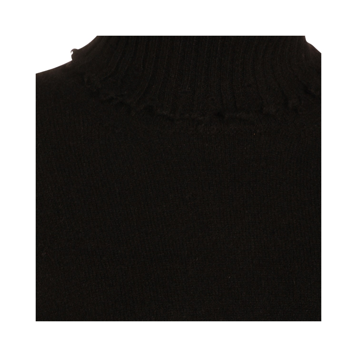 Black cashmere knitwear from Uma Wang featuring high collar, long sleeves, worn hem and regular vestibility.