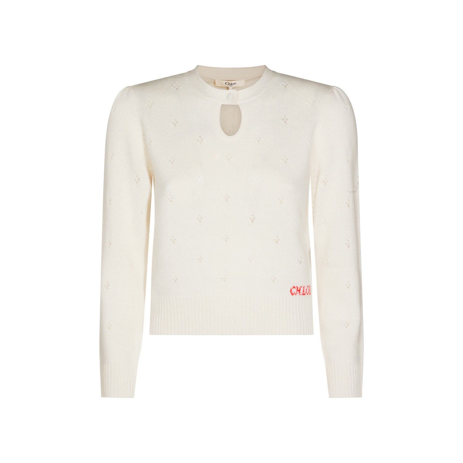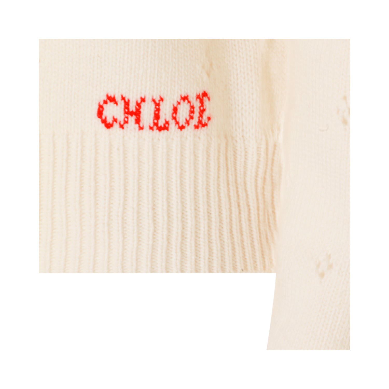 White wool knitwear from Chlofeaturing round collar, long sleeves, logo and tight vestibility.