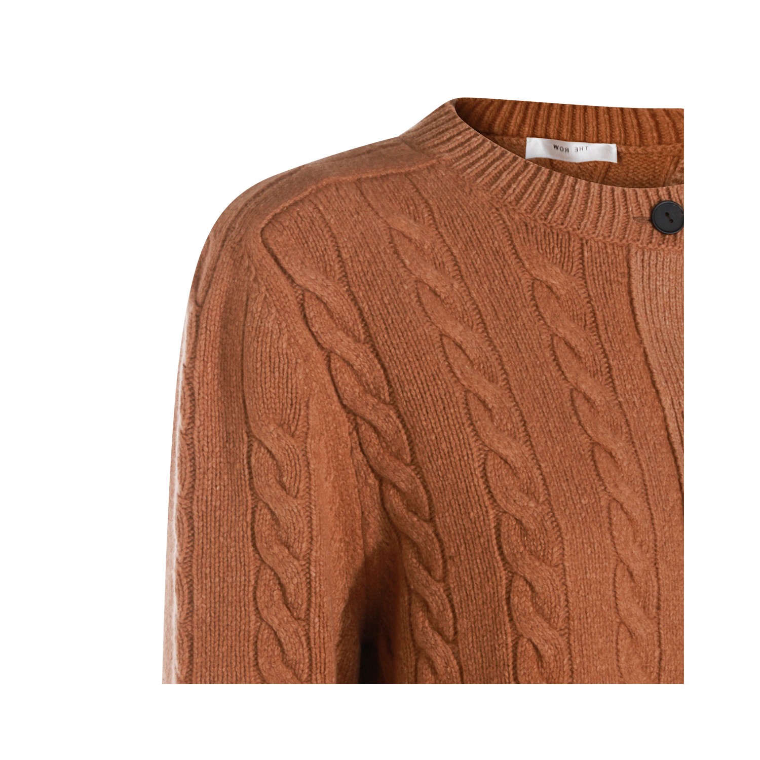 Brown wool knitwear from The Row featuring round collar, long sleeves, buttons fastening, knitted and relaxed vestibility.