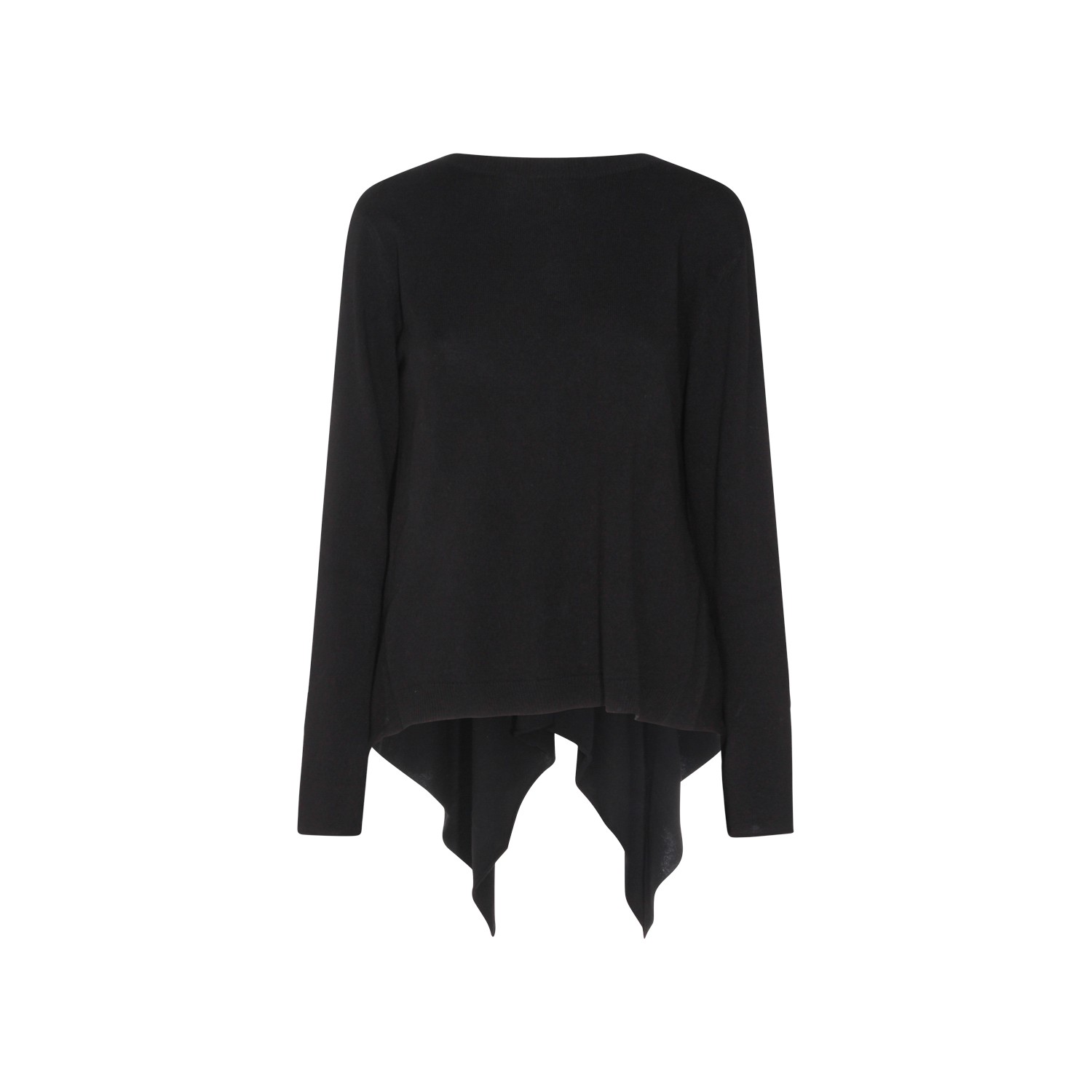 Black wool knitwear from Fabiana Filippi featuring round collar, long sleeves and asymmetrical lenght.