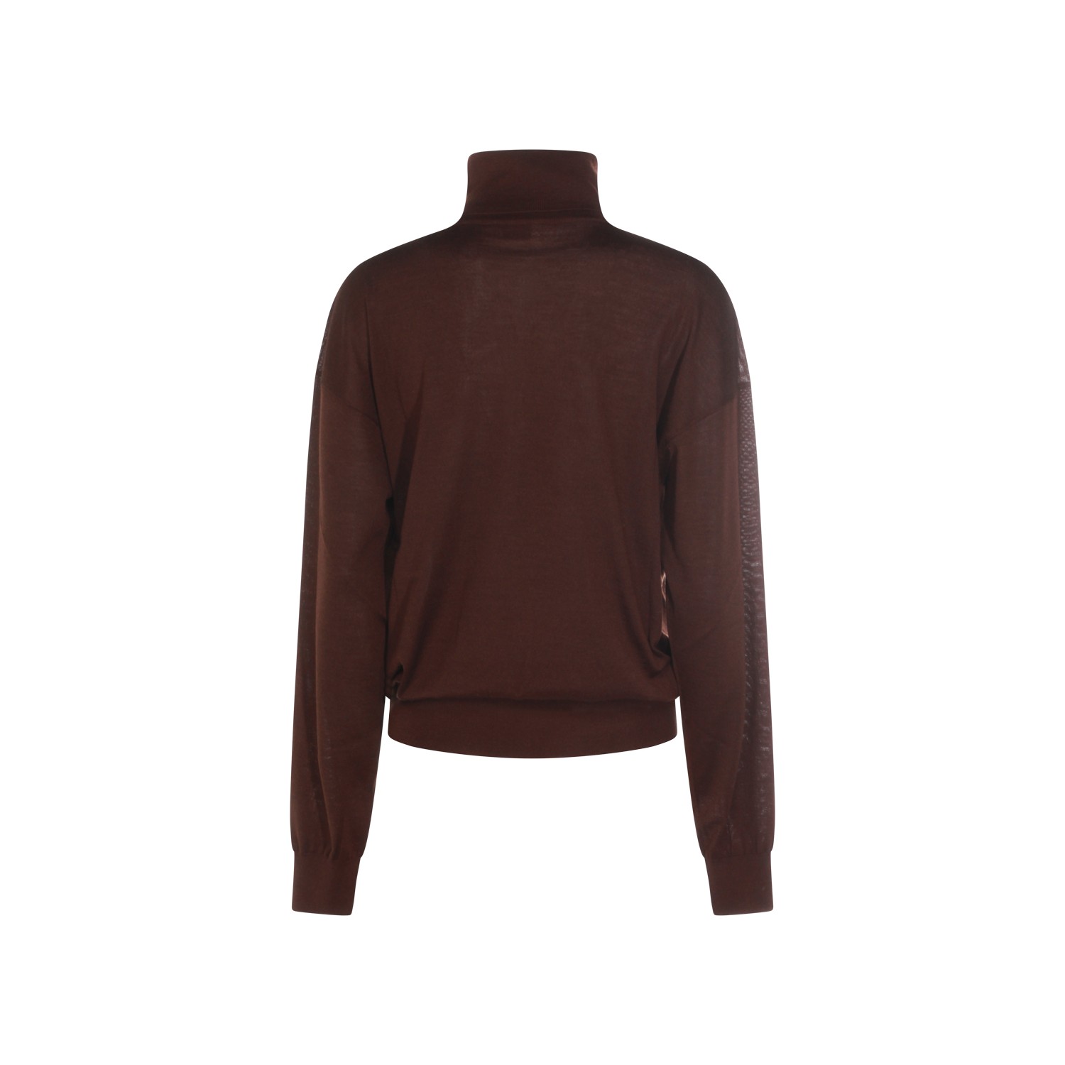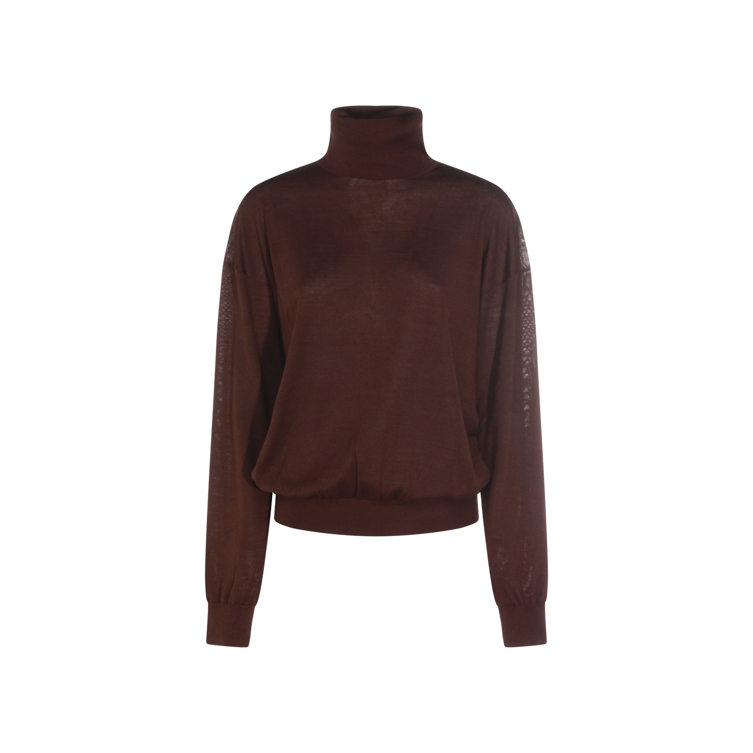 Brown cashmere knitwear from Saint Laurent featuring high collar, long sleeves and regular vestibility.