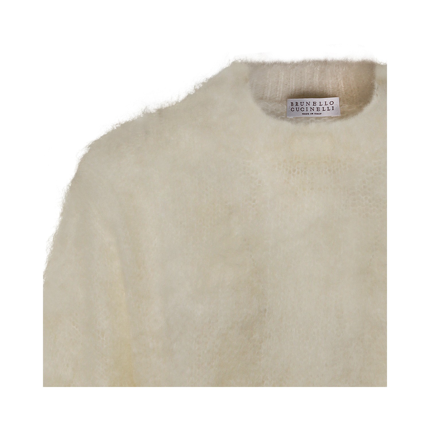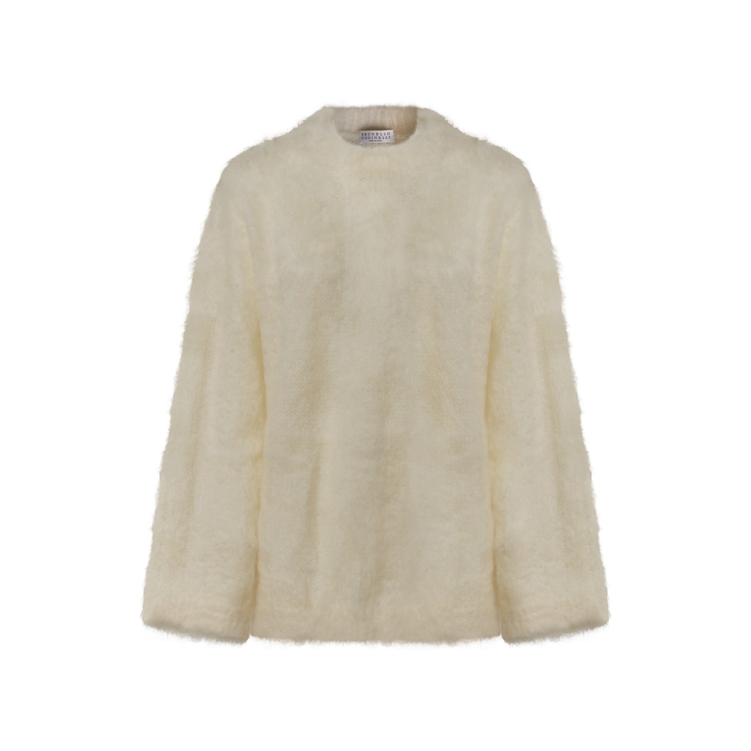 White wool knitwear from Brunello Cucinelli featuring crew neck, long sleeves and soft vestibility.