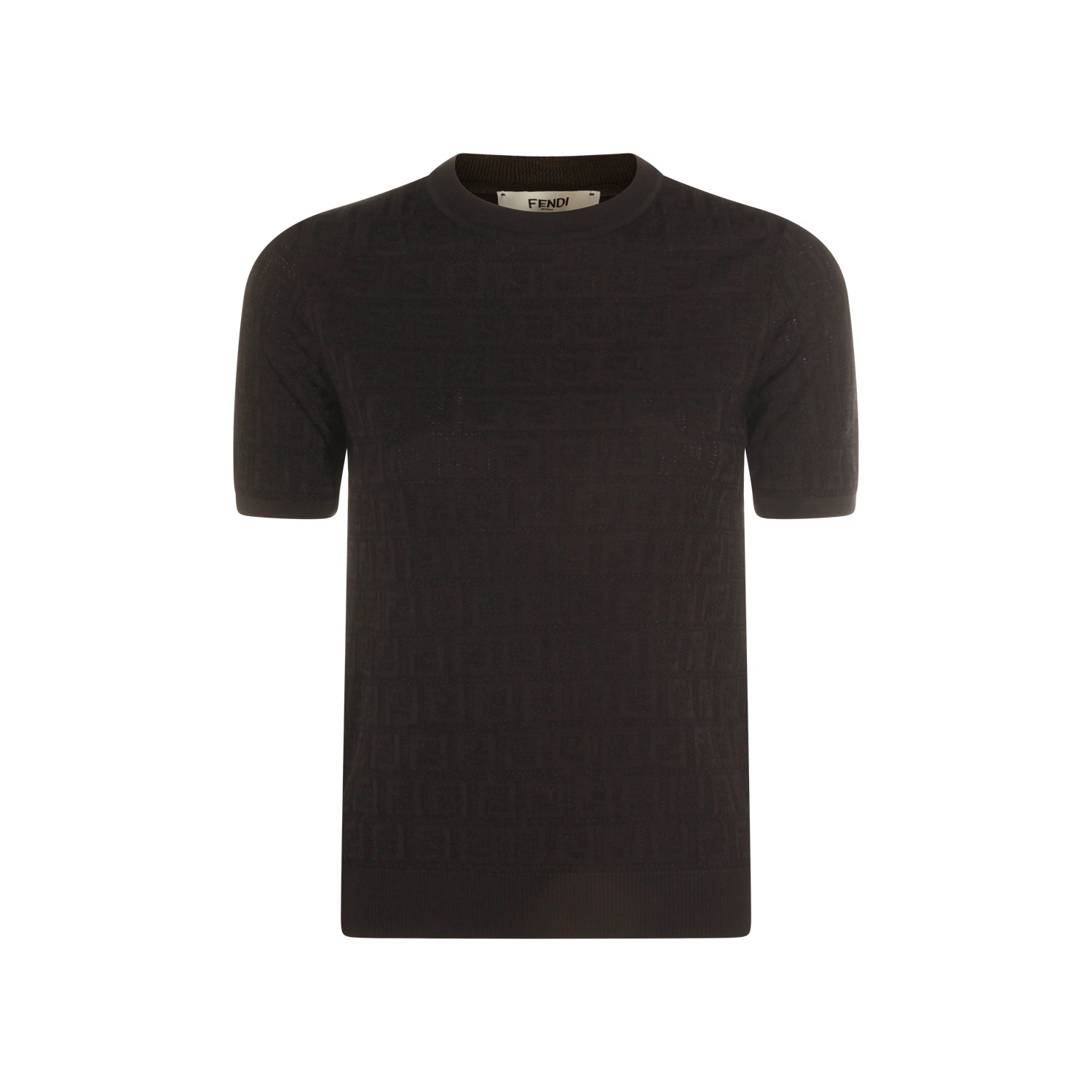 Black cotton knitwear from Fendi featuring crew neck, short sleeves and regular vestibility.