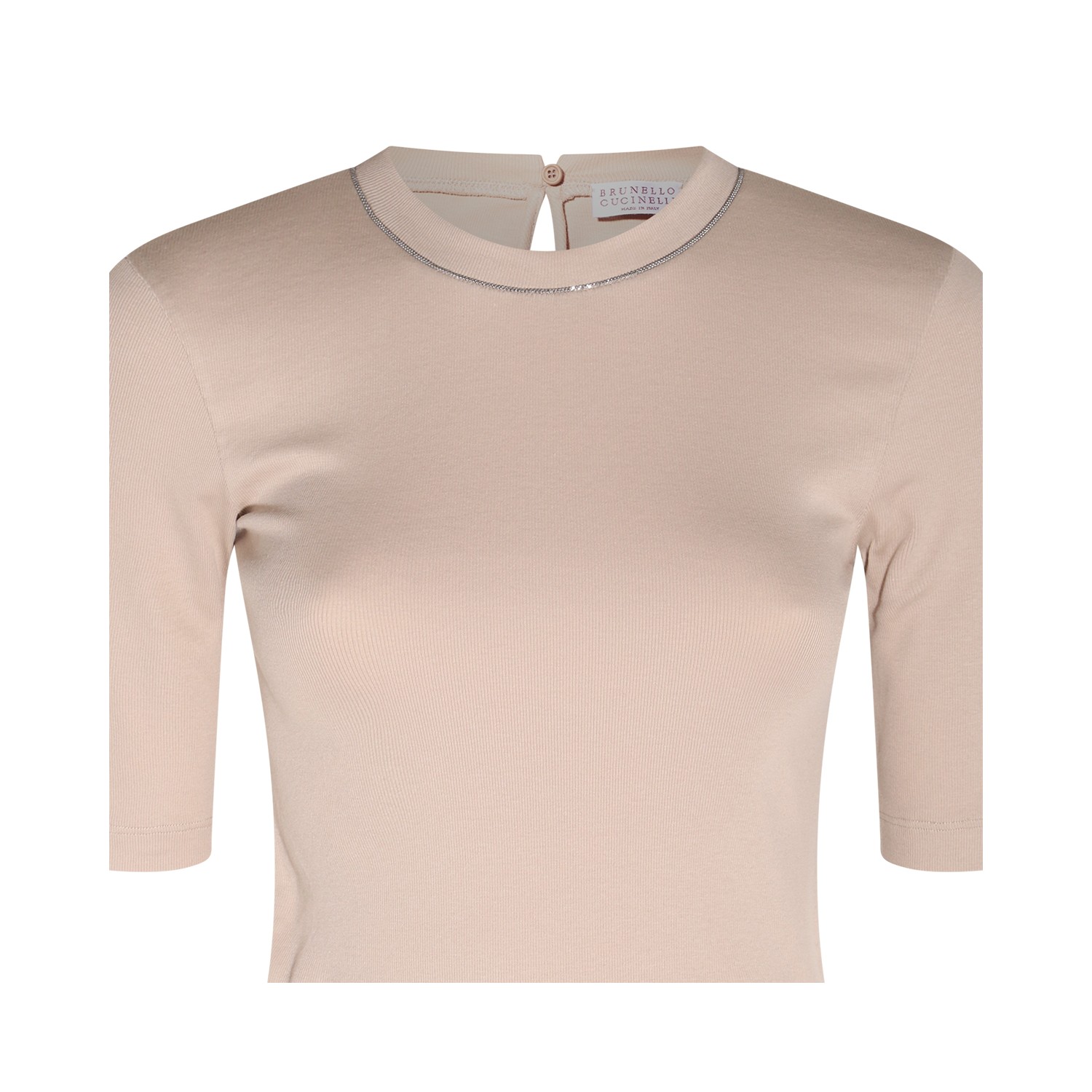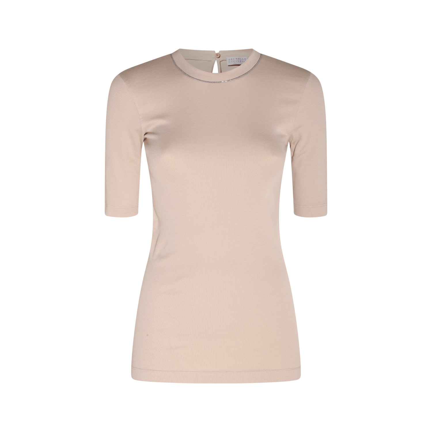 Beige cotton blend T-shirt from Brunello Cucinelli featuring crew neck, straight hem and short sleeves.