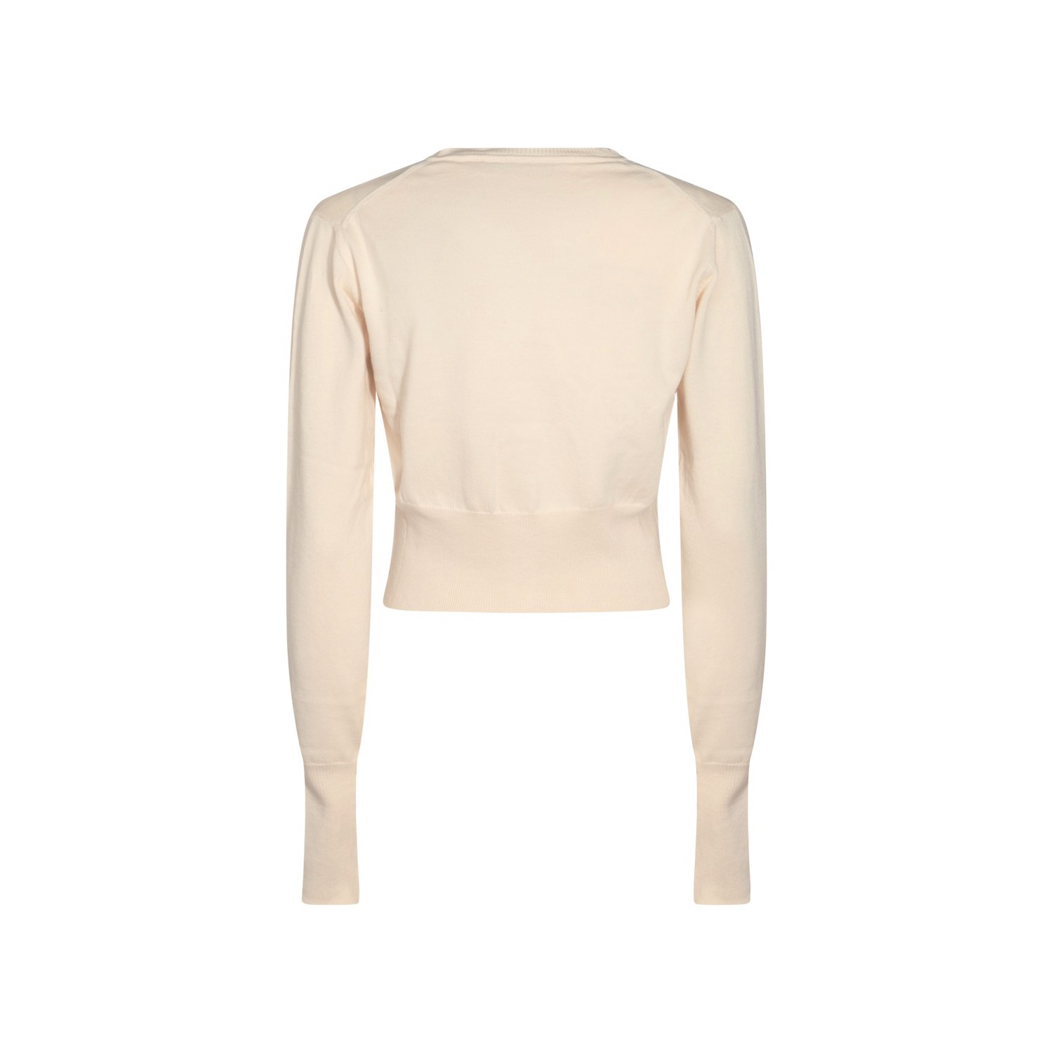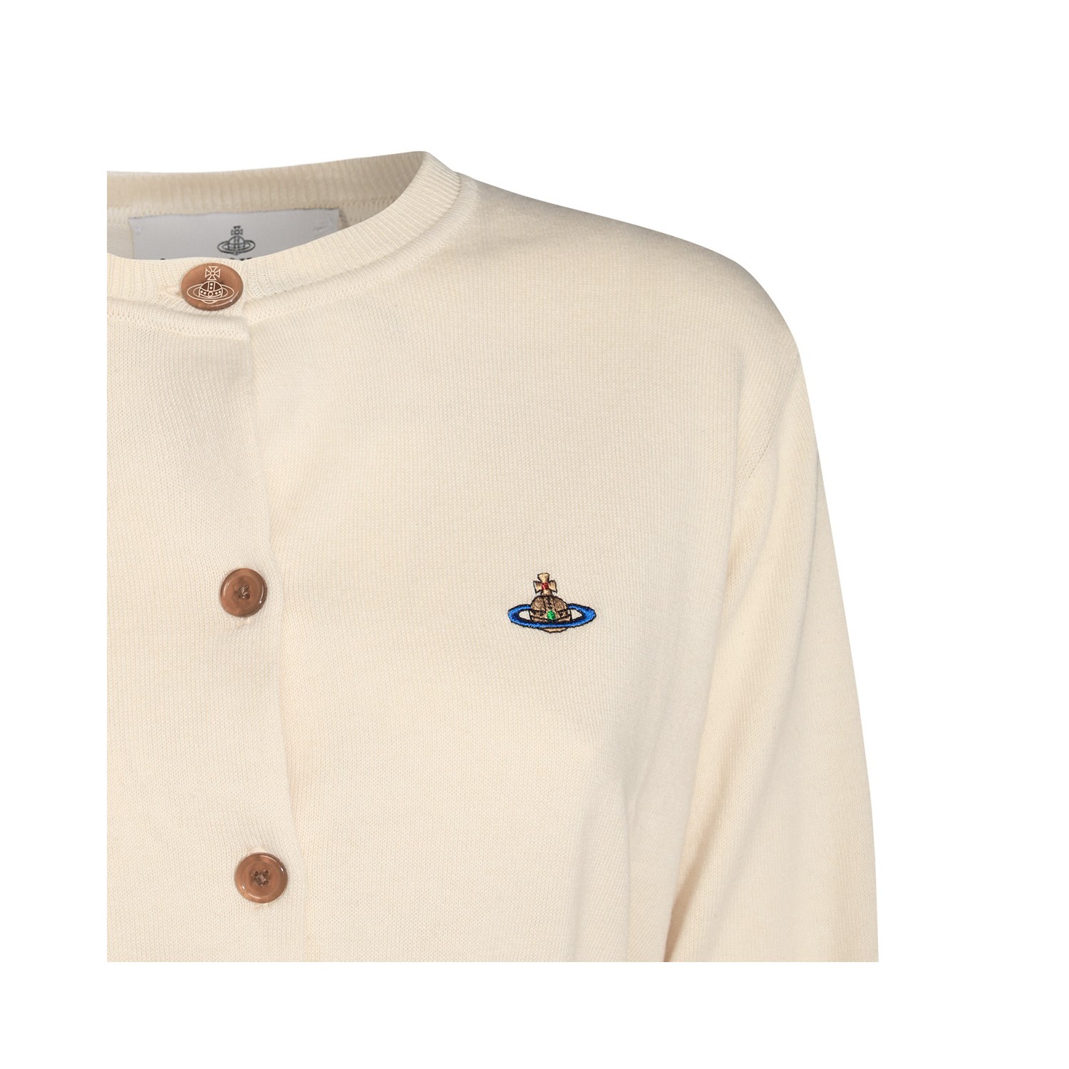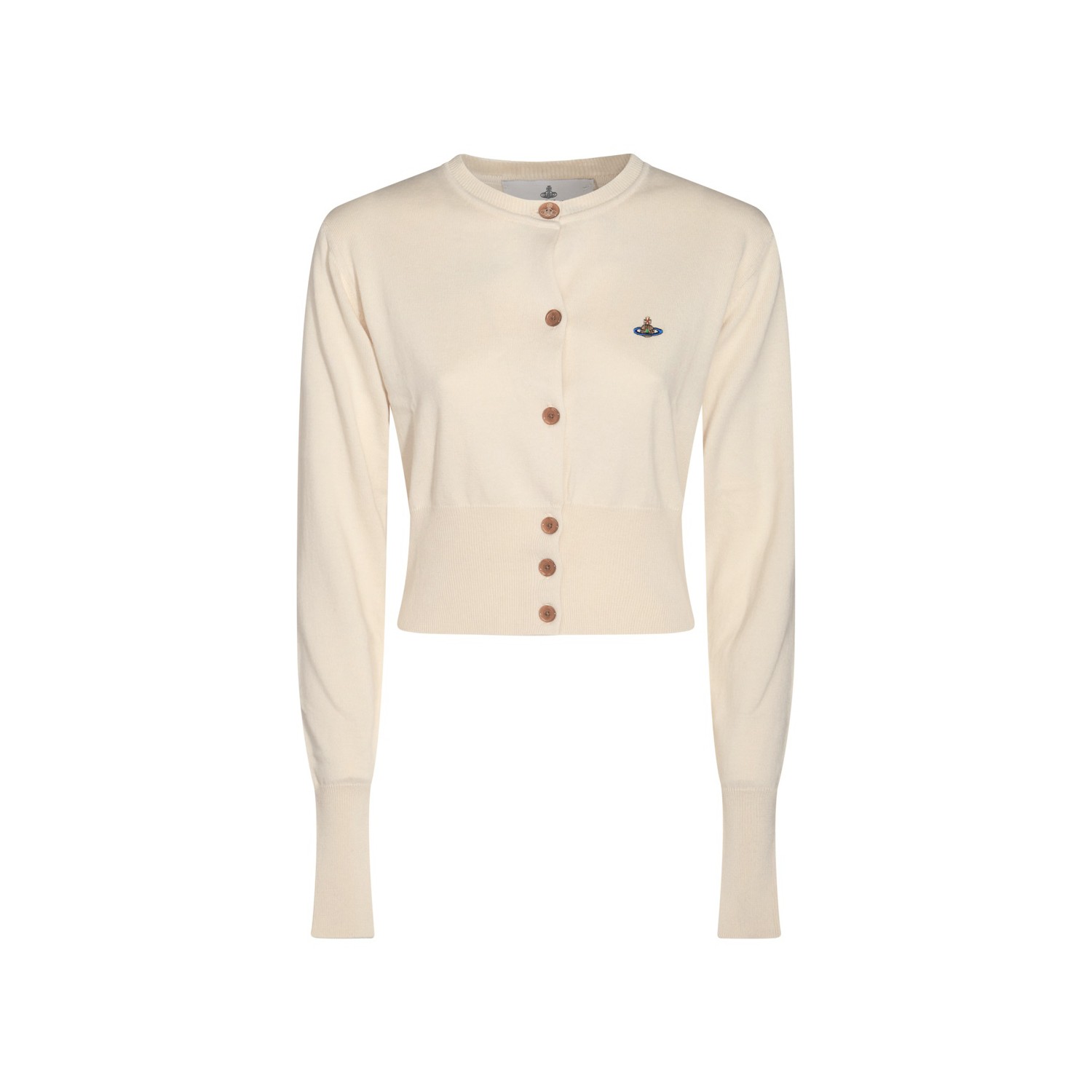 Cream cotton knitwear from Vivienne Westwood featuring round collar, long sleeves, frontal buttons fastening, ribbed cuffs and hem, logo and regular vestibility.