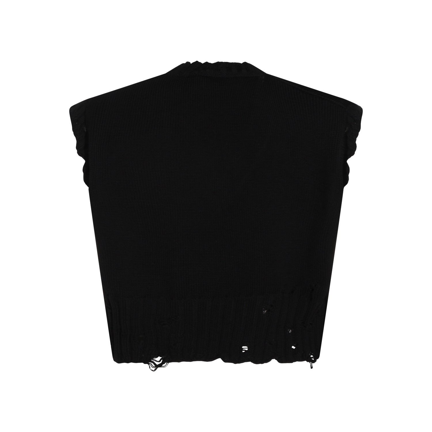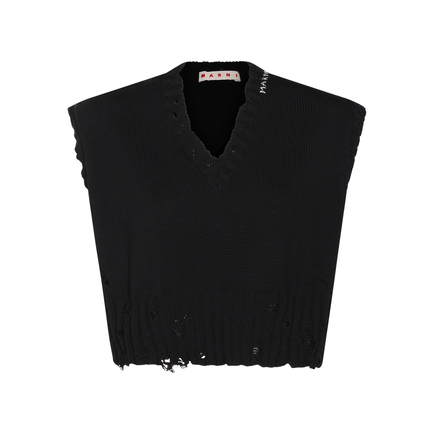 Black cotton knitwear from Marni featuring v neck, sleeveless, worn effect and crop.