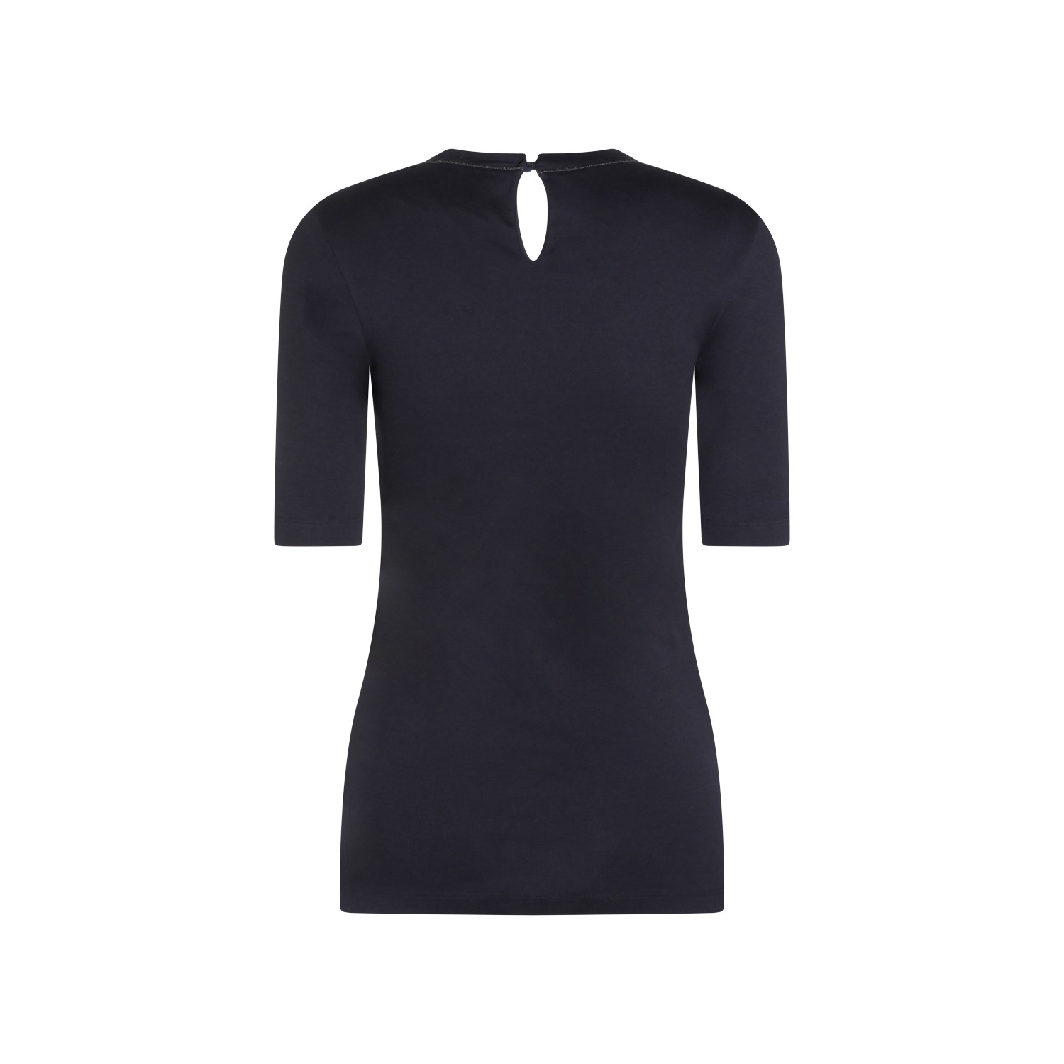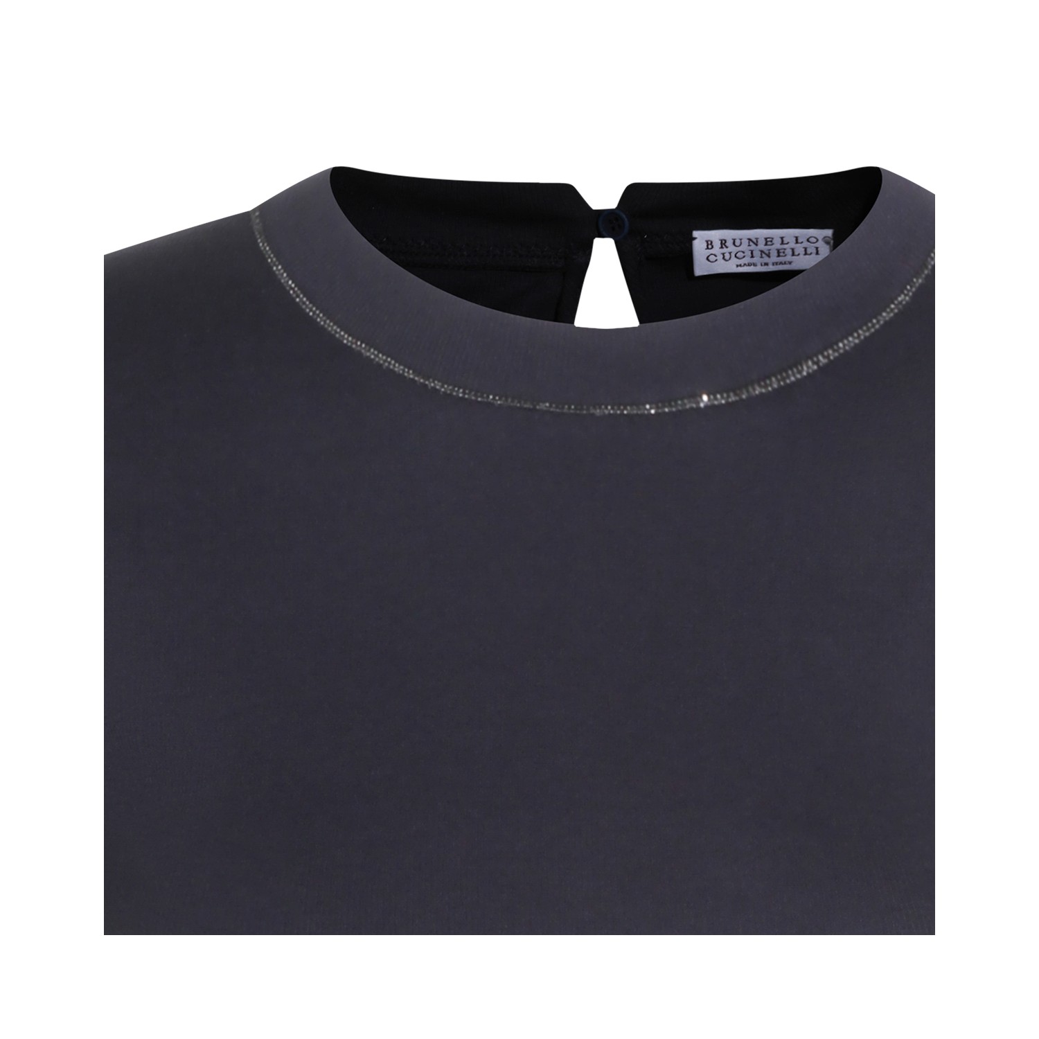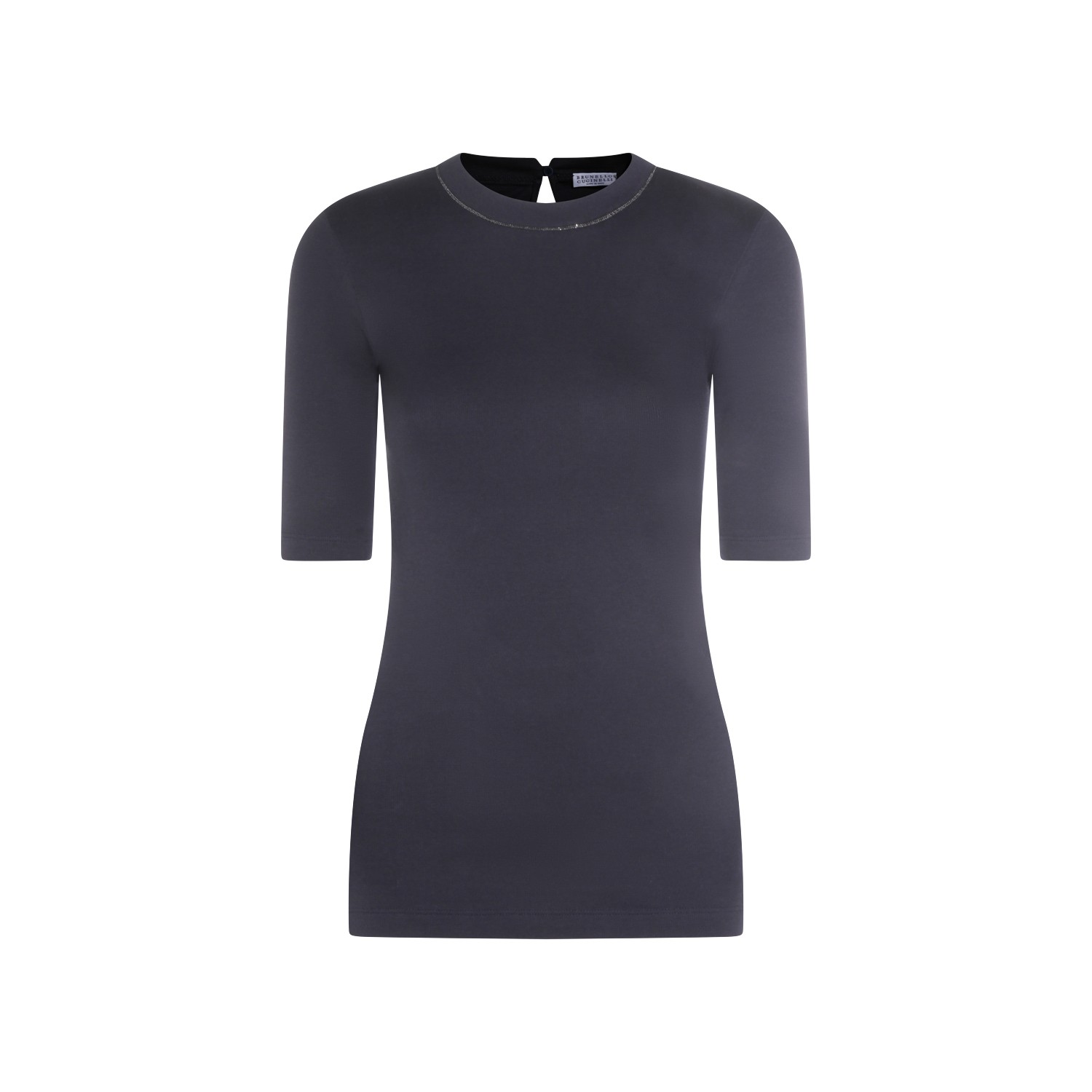 Dark blue cotton knitwear from Brunello Cucinelli featuring round collar, midi sleeves, details and regular vestibility.