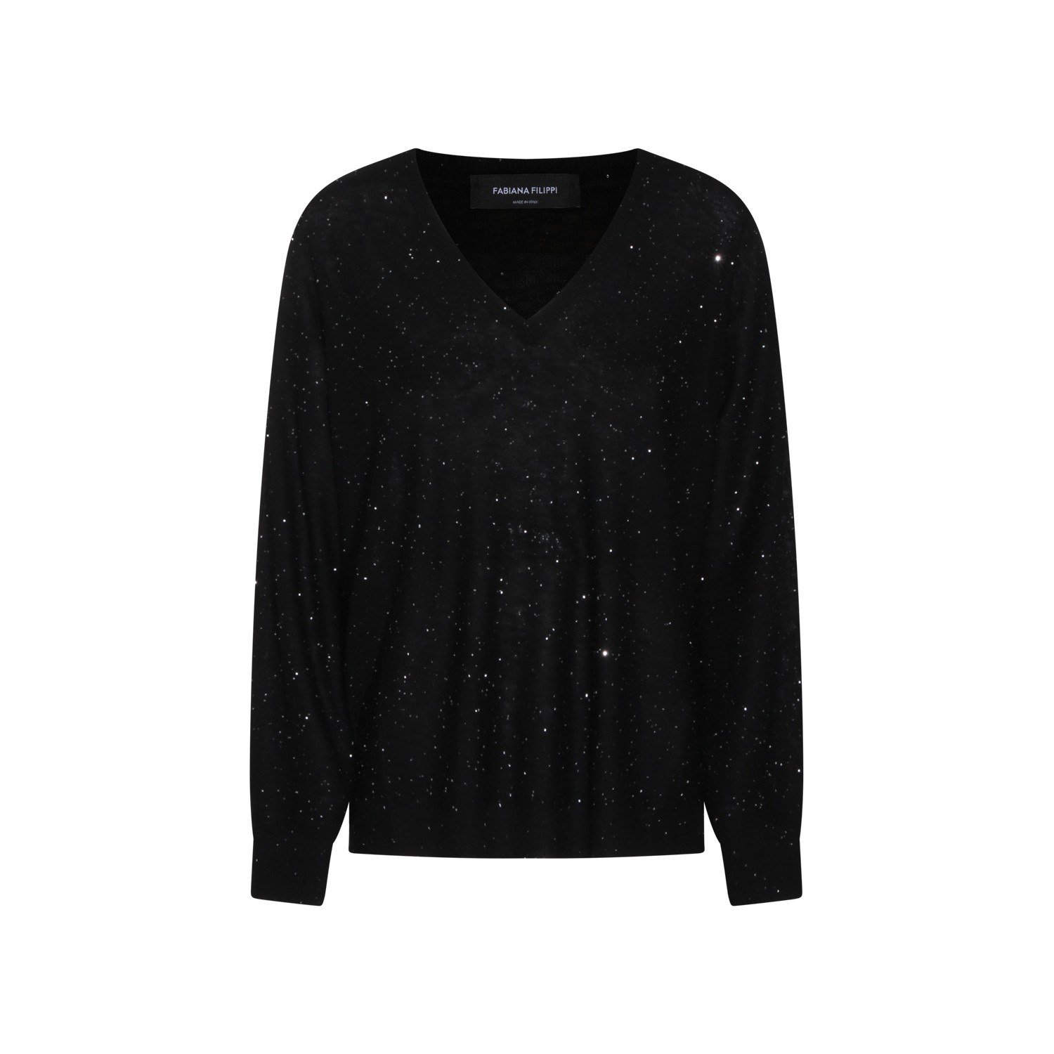 Black wool knitwear from Fabiana Filippi featuring v neckline, long sleeves and regular vestibility.