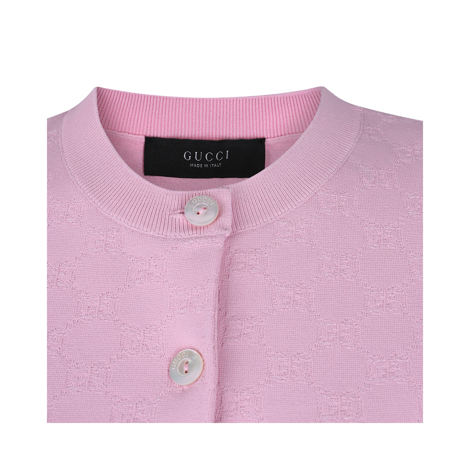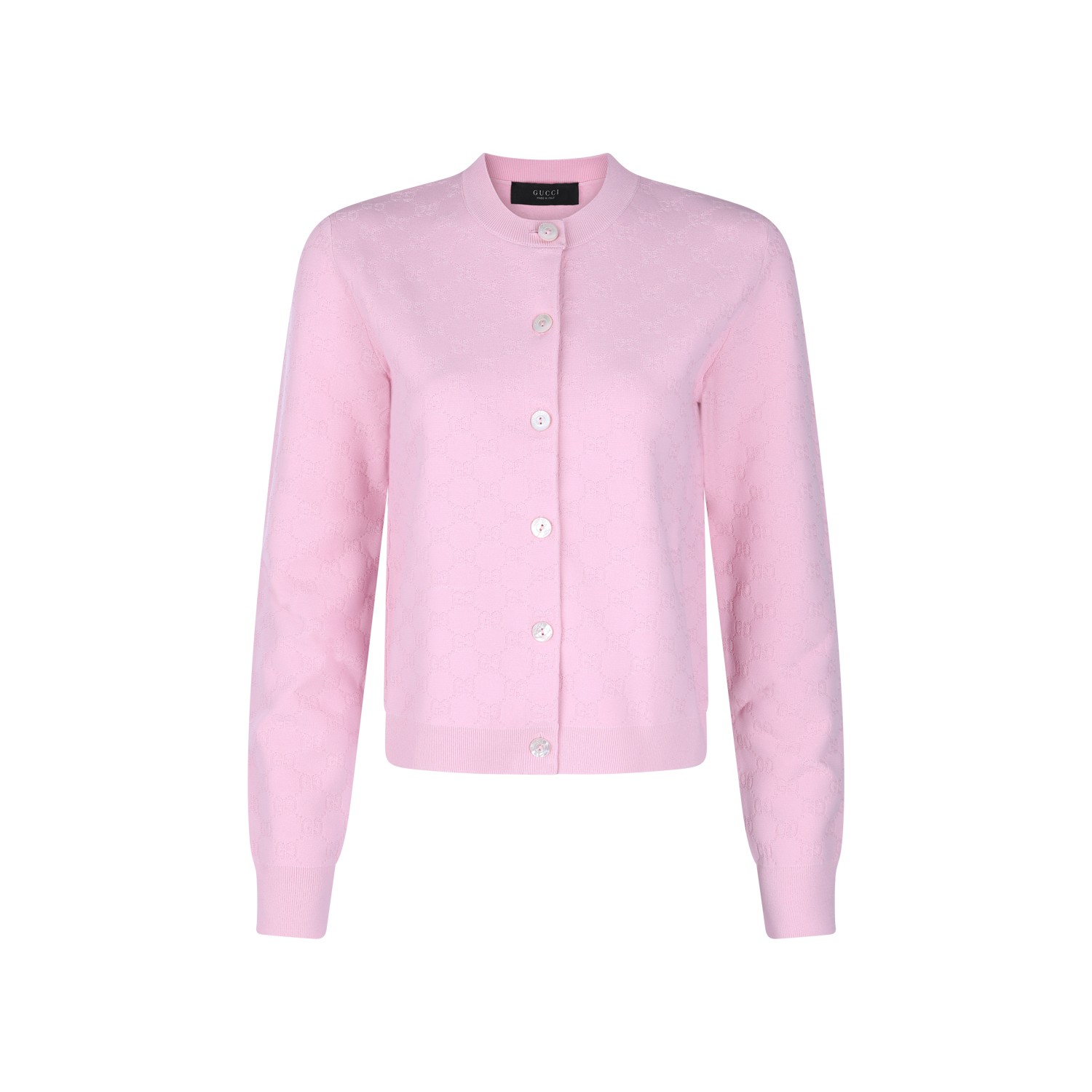 Pink knitwear from Gucci featuring round collar, long sleeves, buttons fastening and soft vestibility.