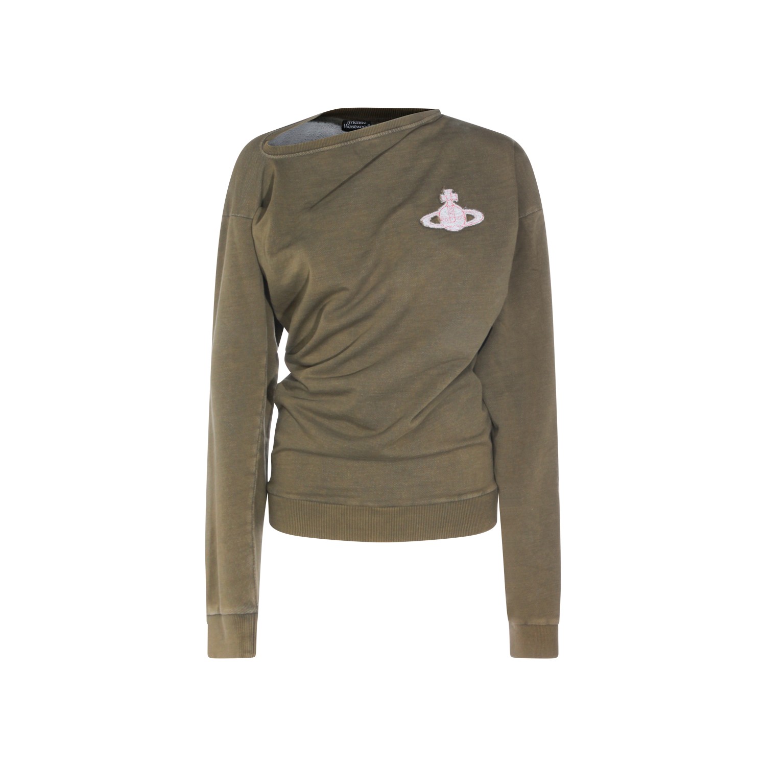 Green cotton knitwear from Vivienne Westwood featuring asymmetric collar, long sleeves, heart Orb logo and regular fit.