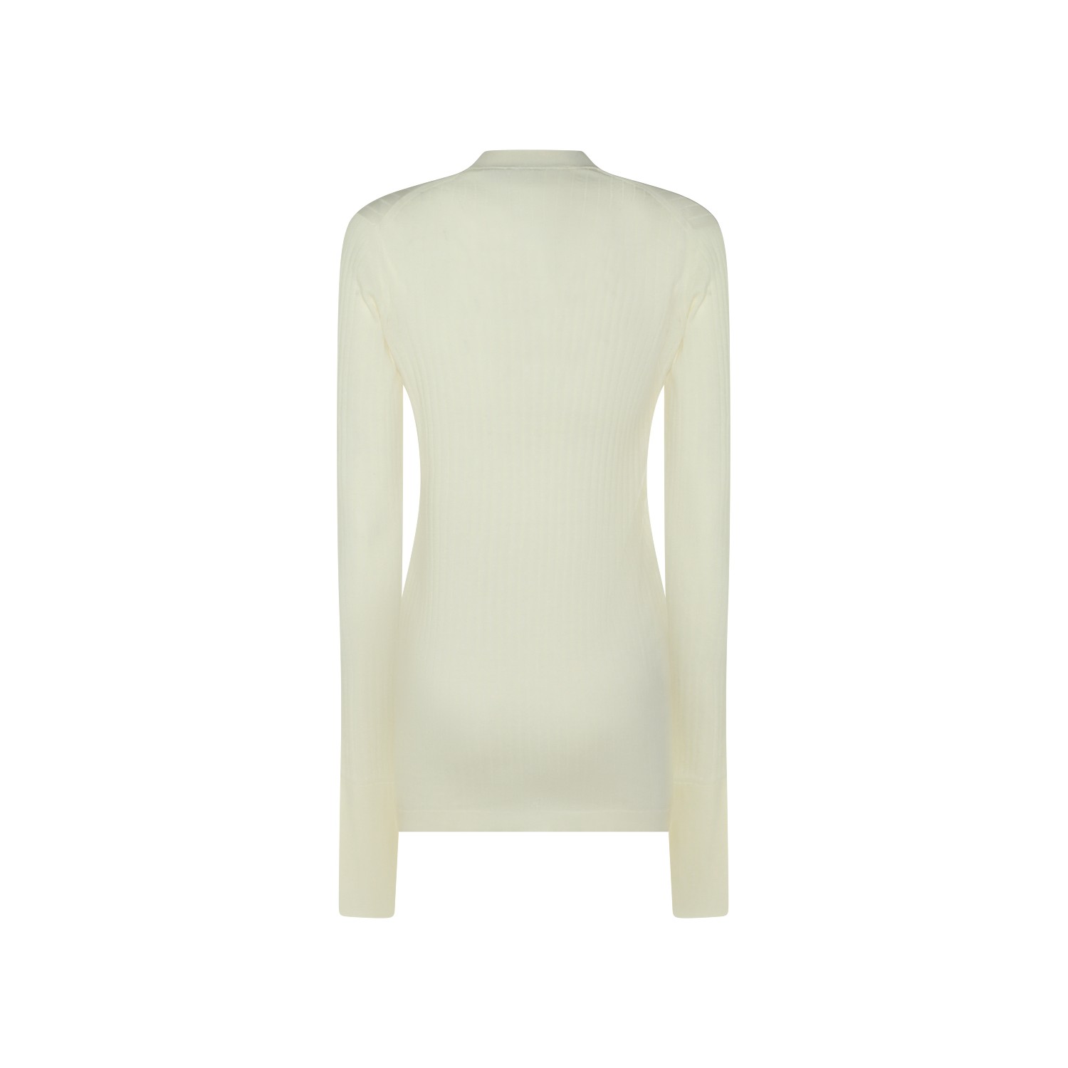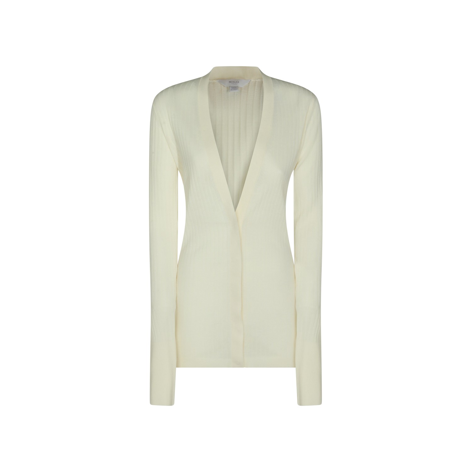White cotton knitwear from Malo featuring v neckline, long sleeves, frontal closure and regular fit.
