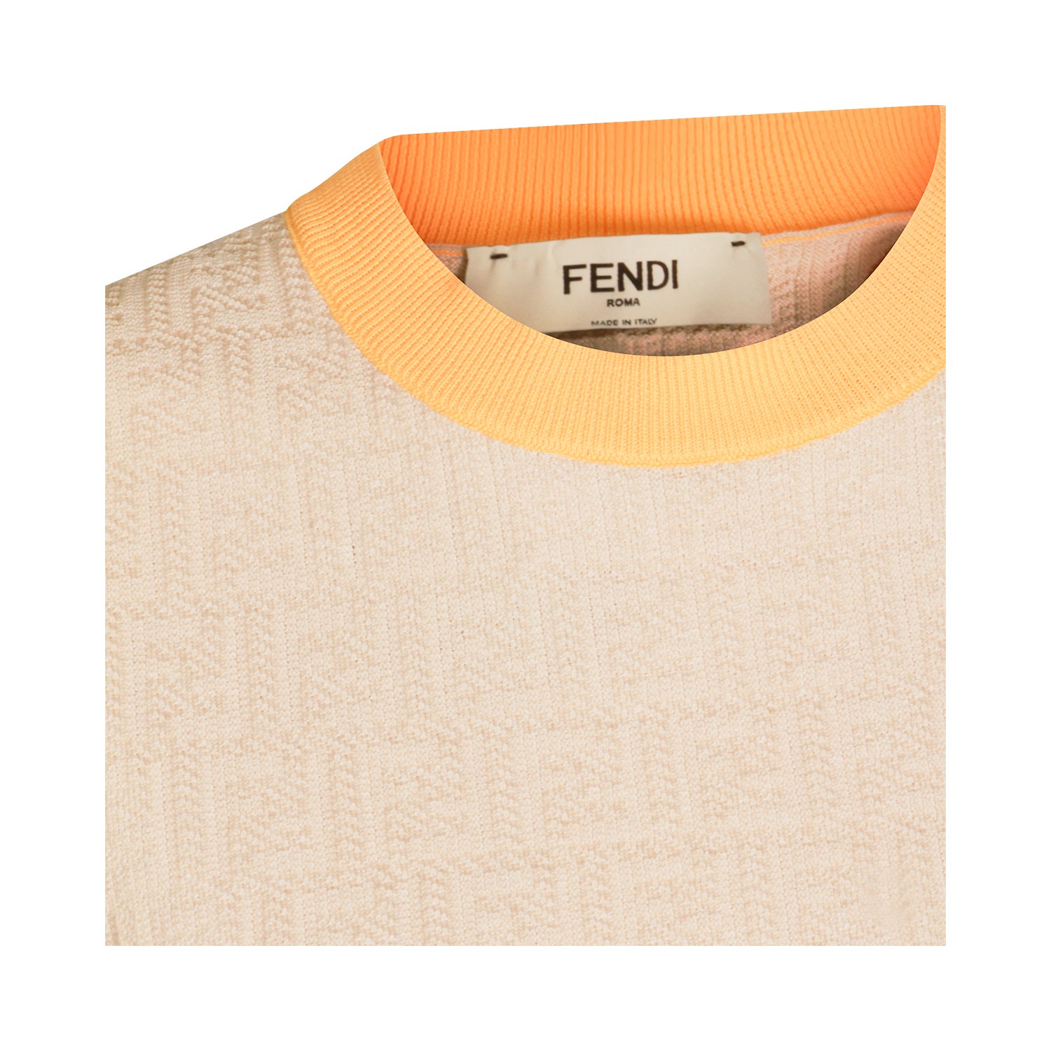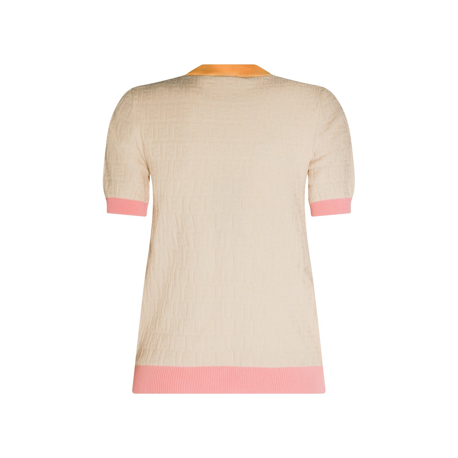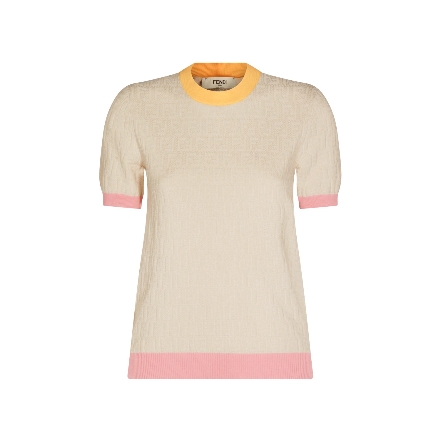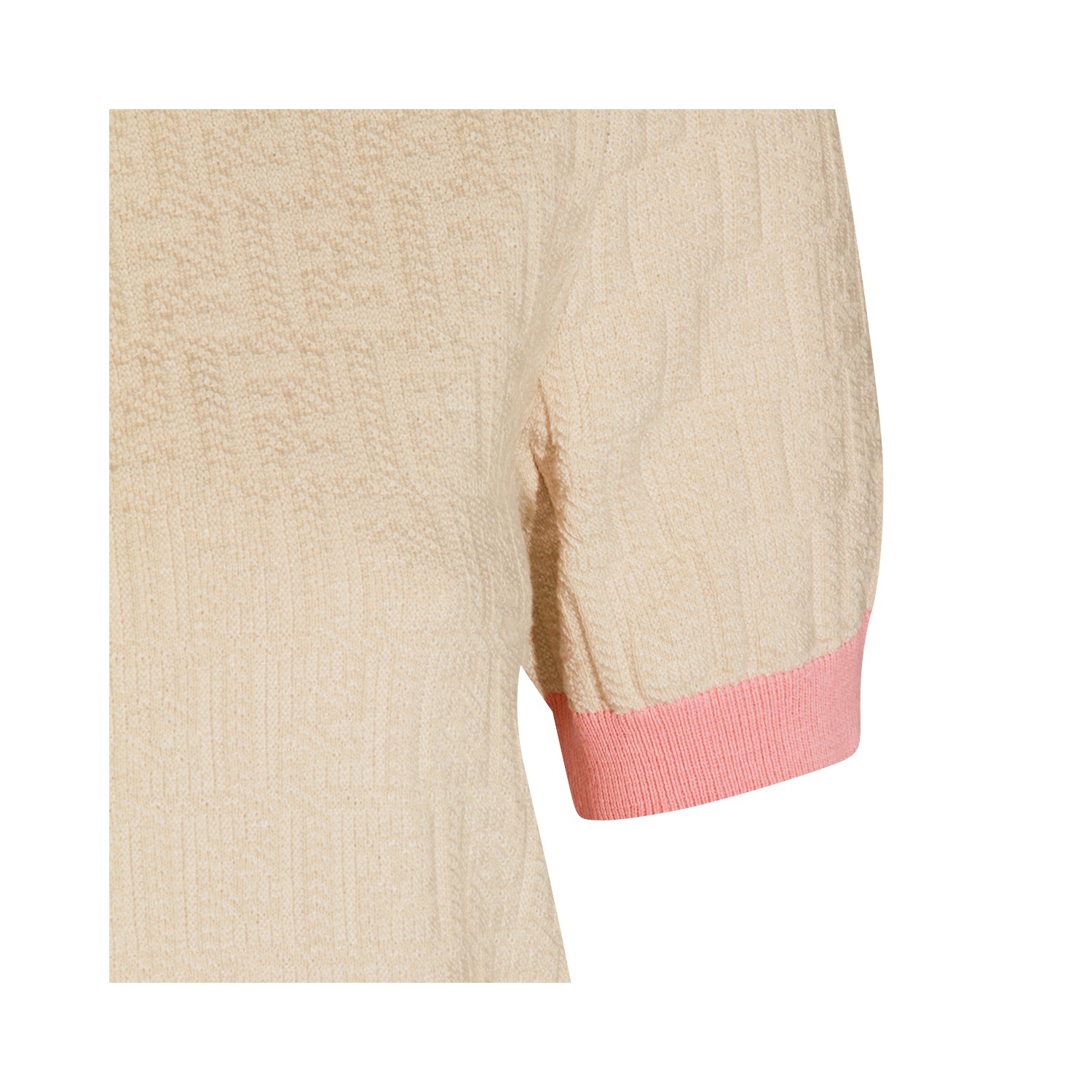 Ecru cotton knitwear from Fendi featuring round collar, short sleeves, contrasting edges and regular fit.