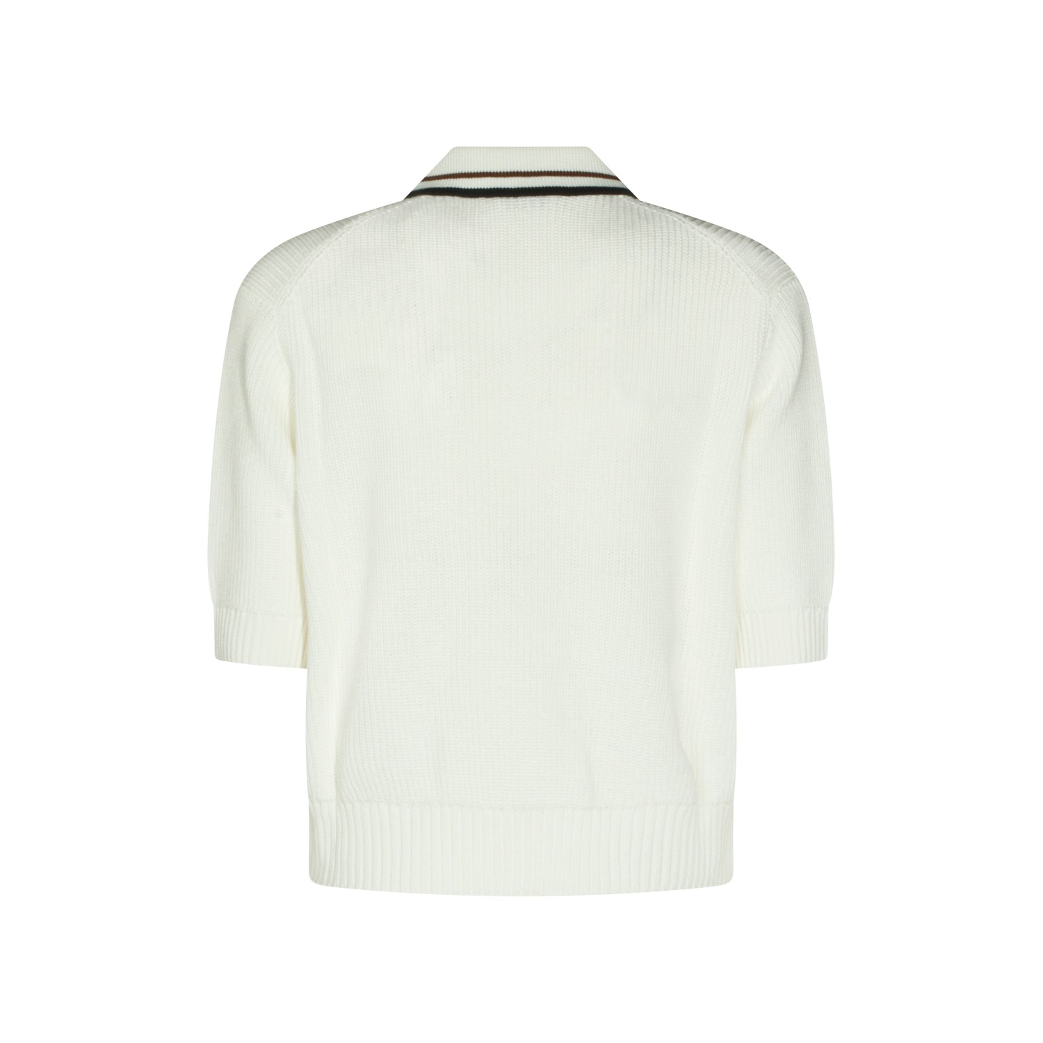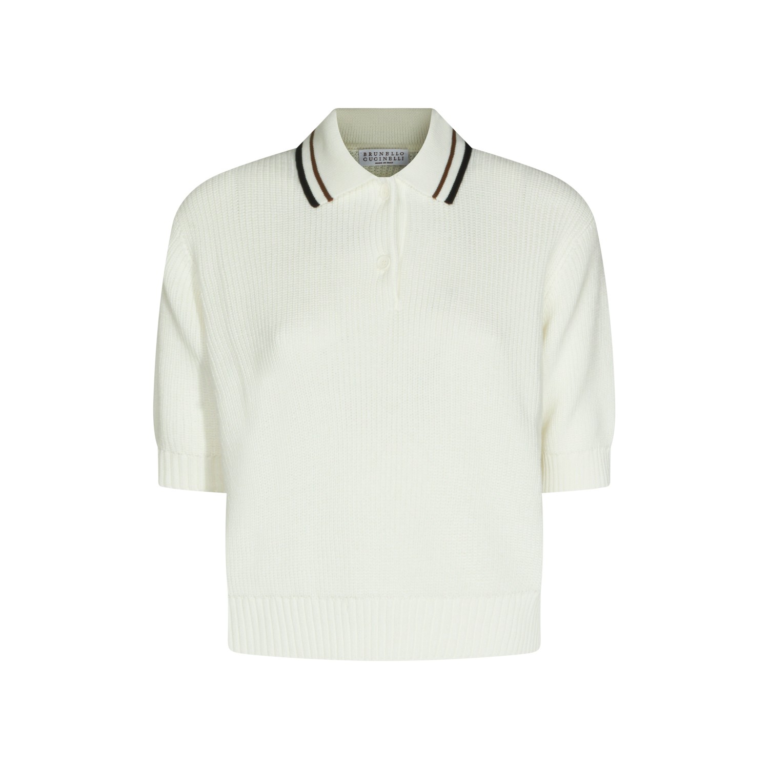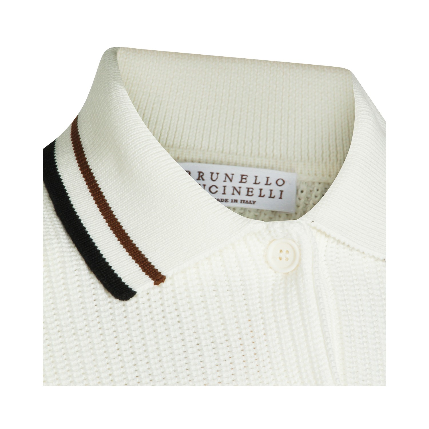 White cotton knitwear from Brunello Cucinelli featuring classic collar, short sleeves, ribbed hem and regular fit.