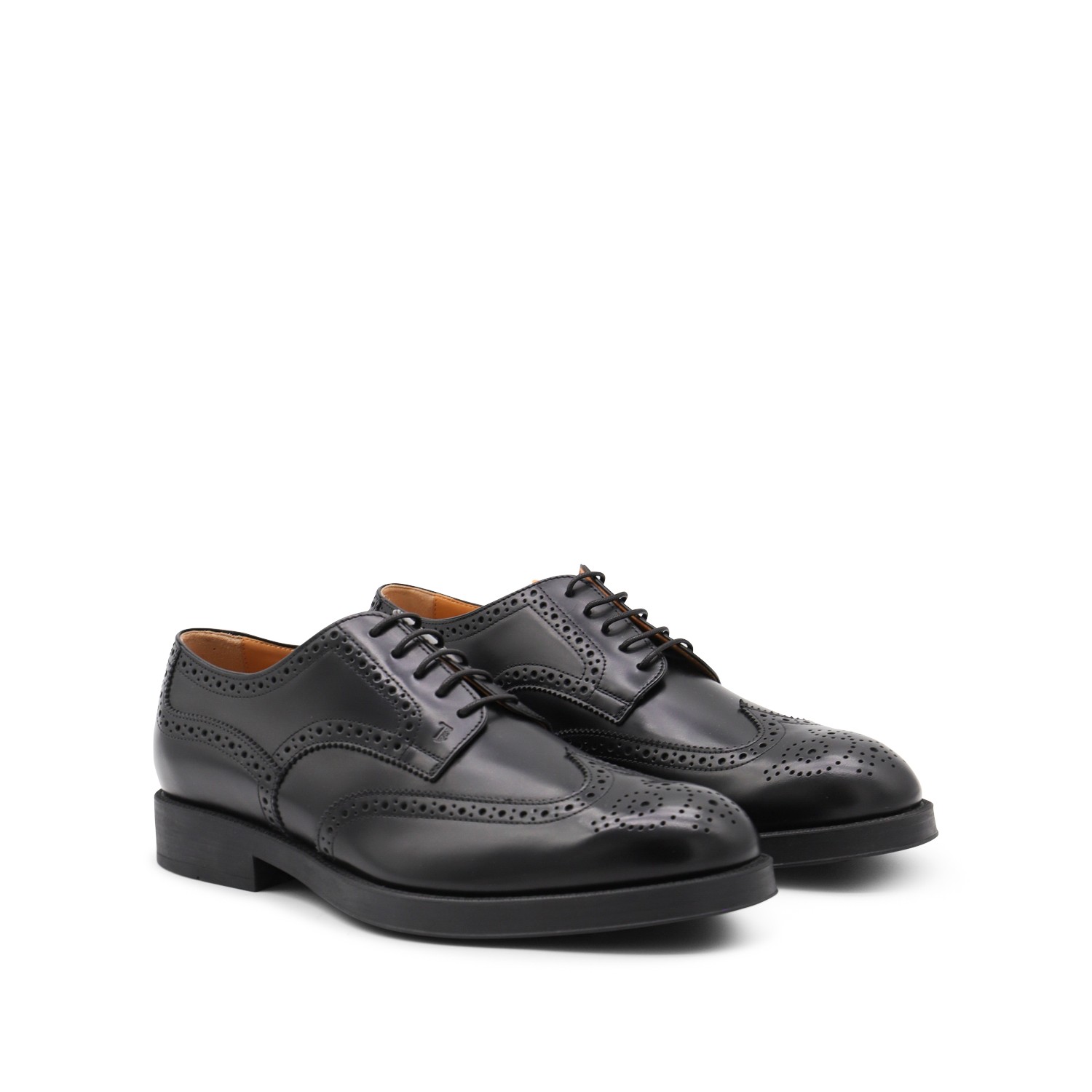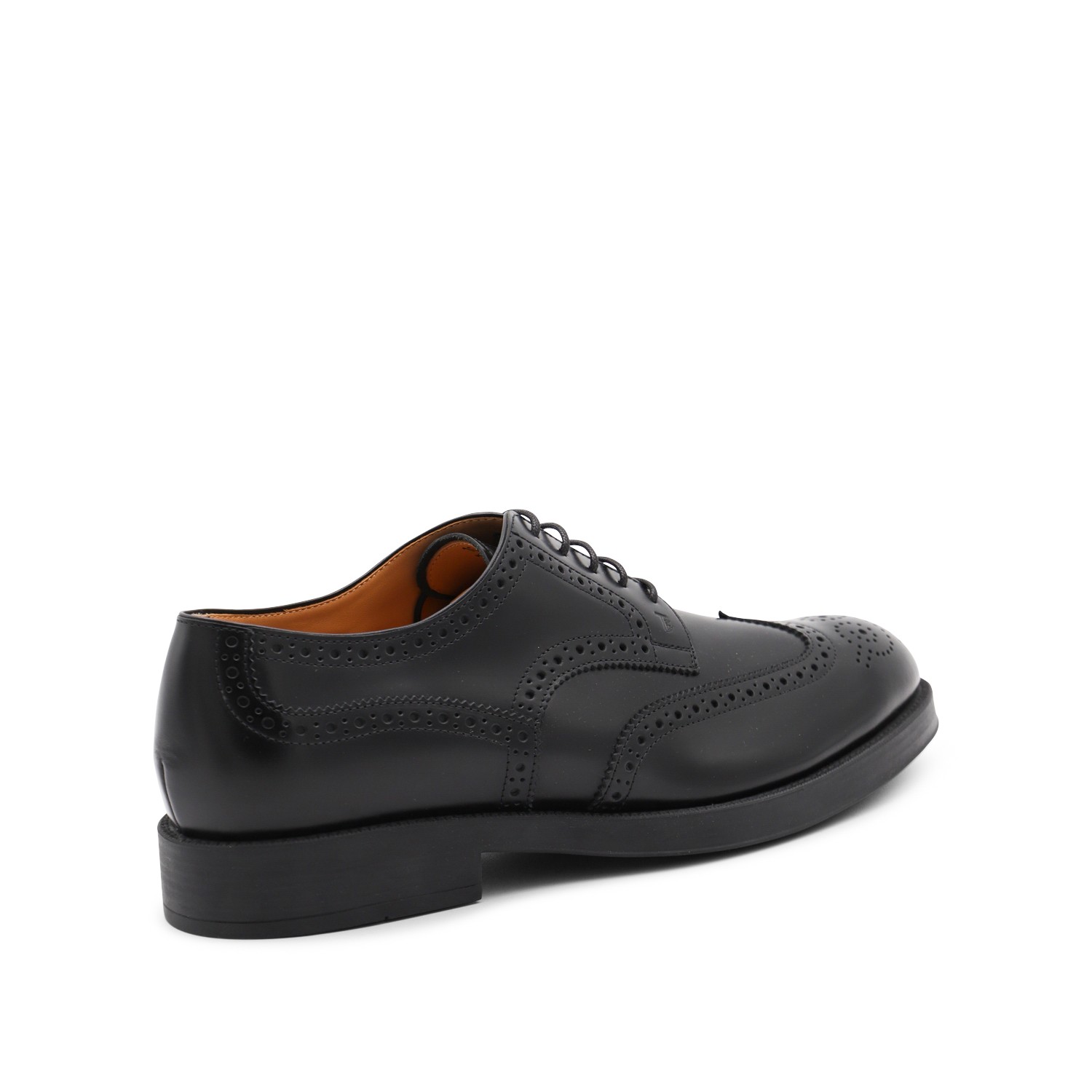 Black leather lace up shoes from Tod's featuring round toe, rubber sole, branded insole, lace up closure.