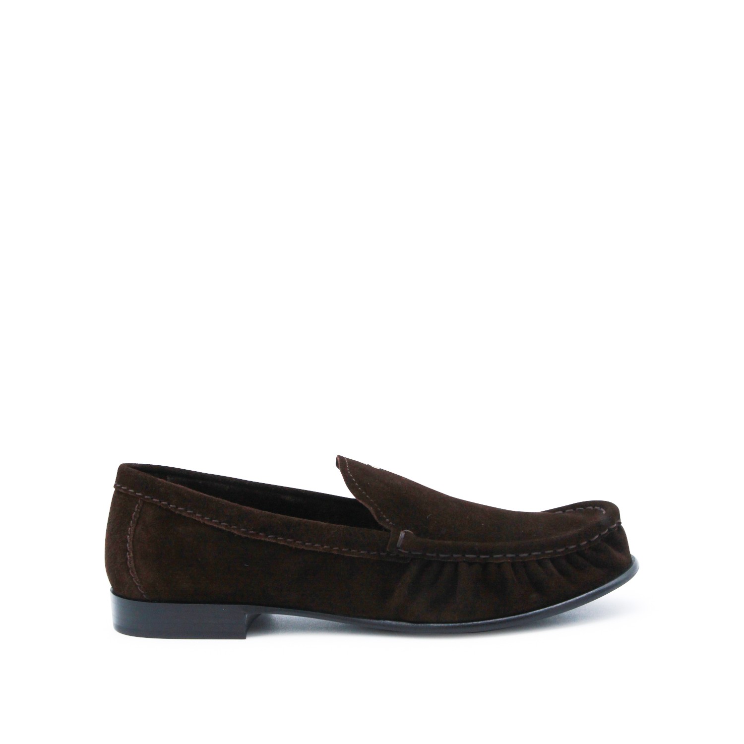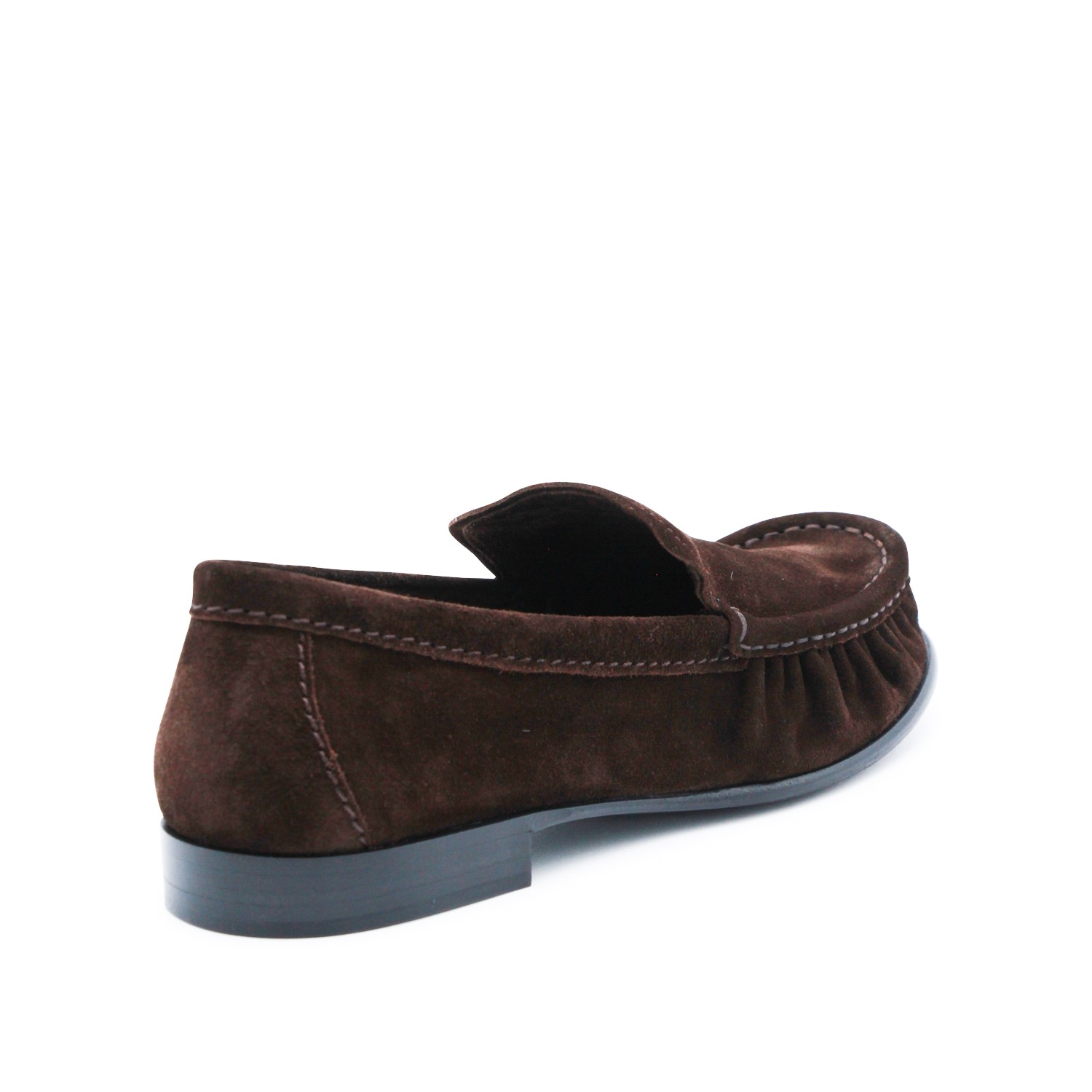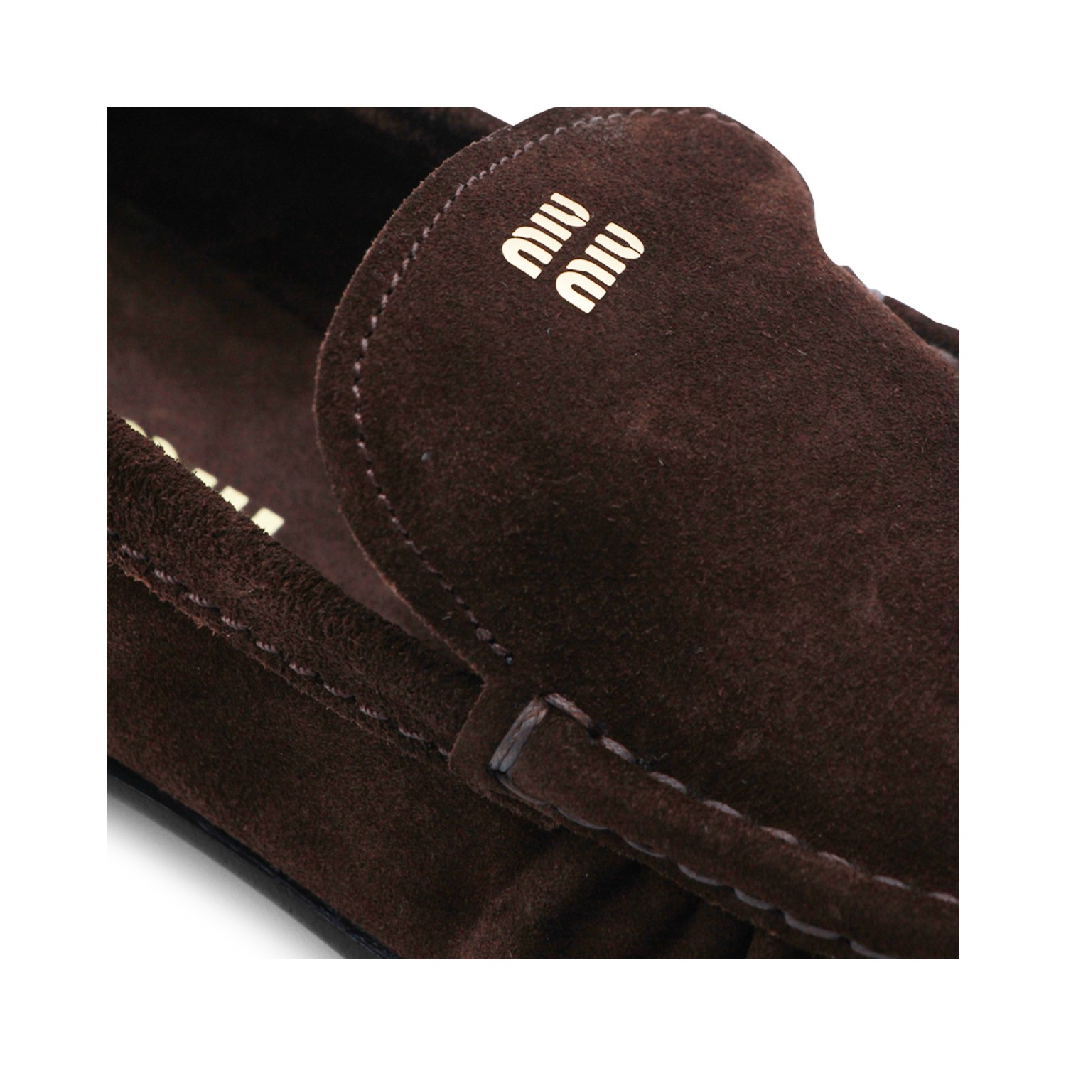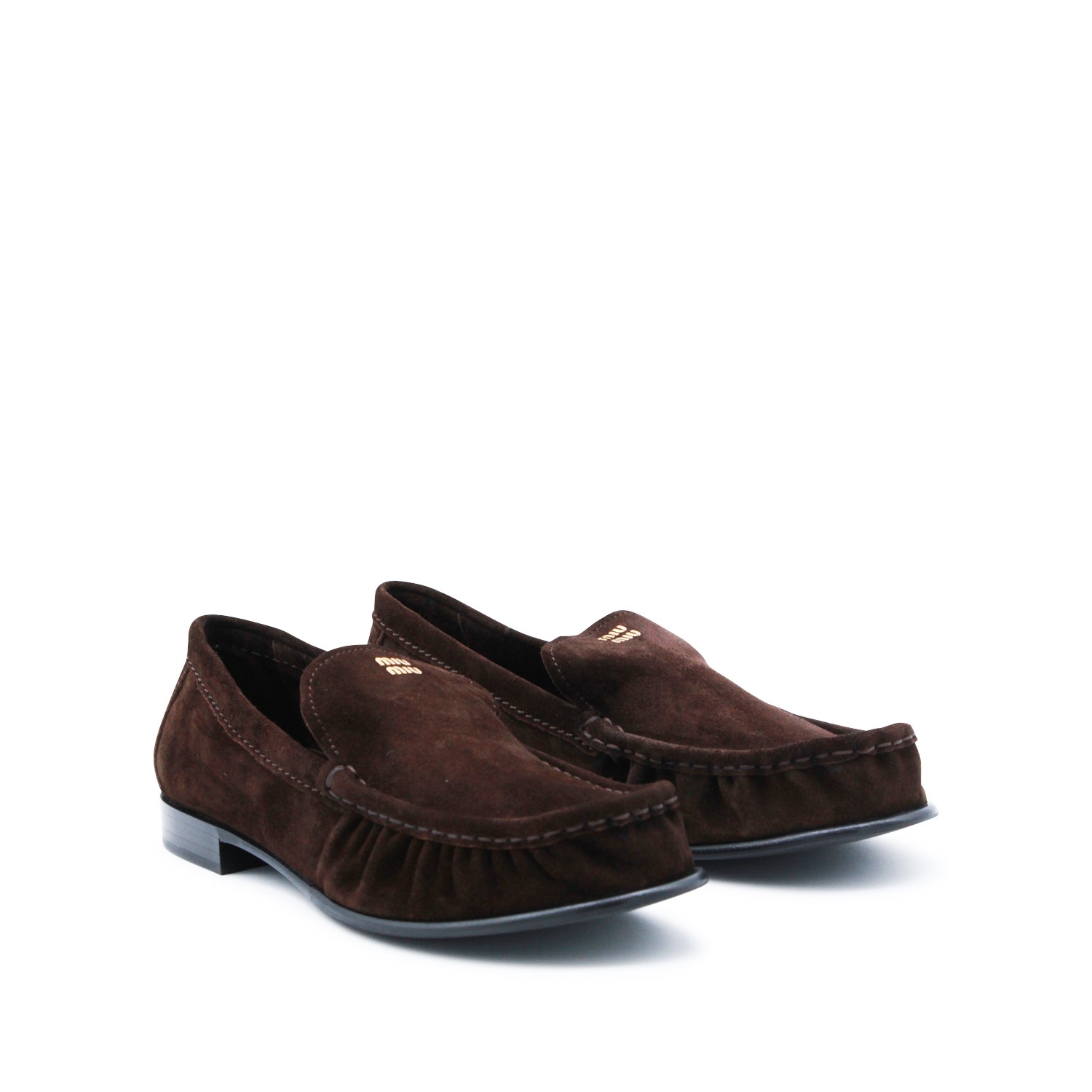 Dark brown leather loafers from Miu Miu featuring round toe, slip-on style, ton-sur-ton stitchings and rubber sole.