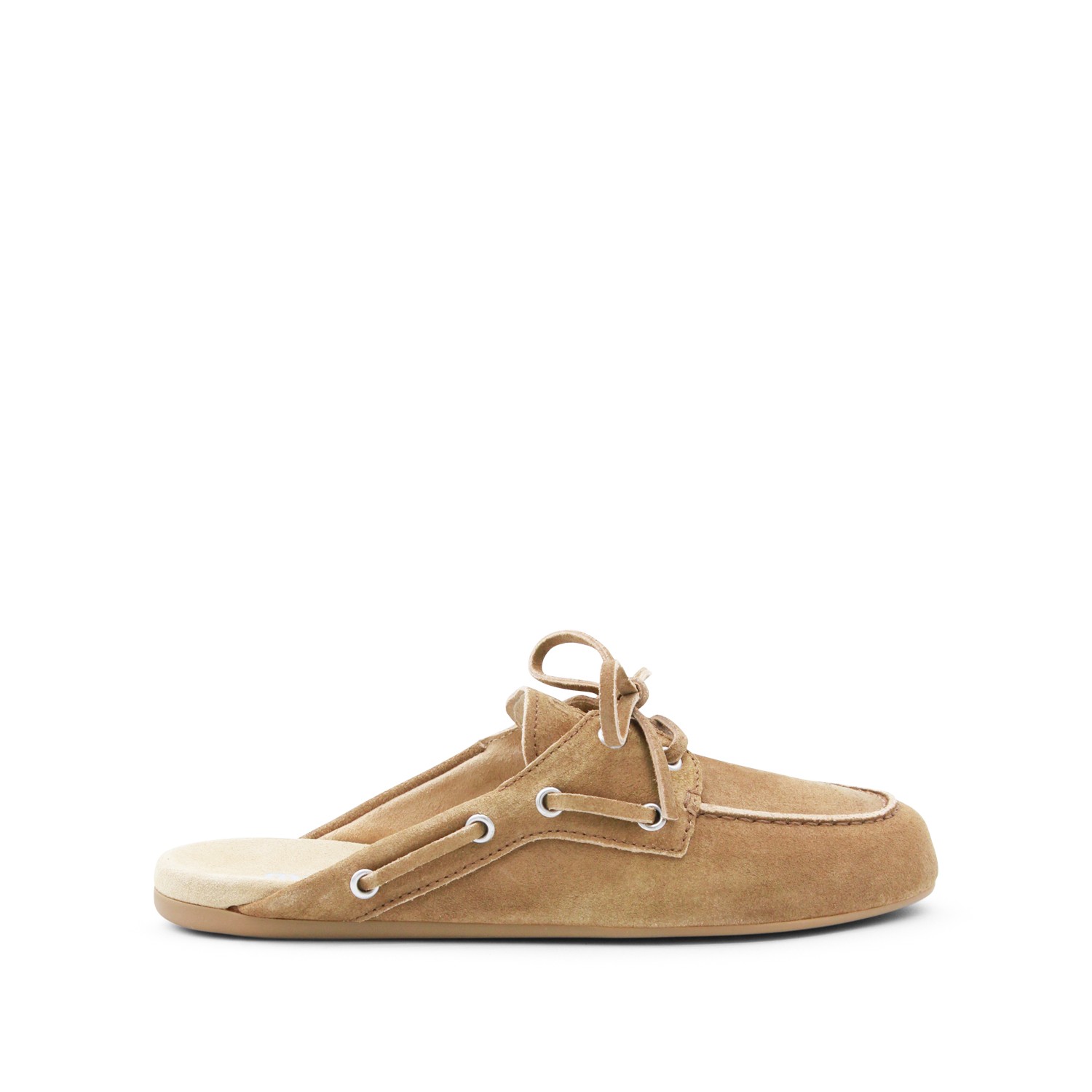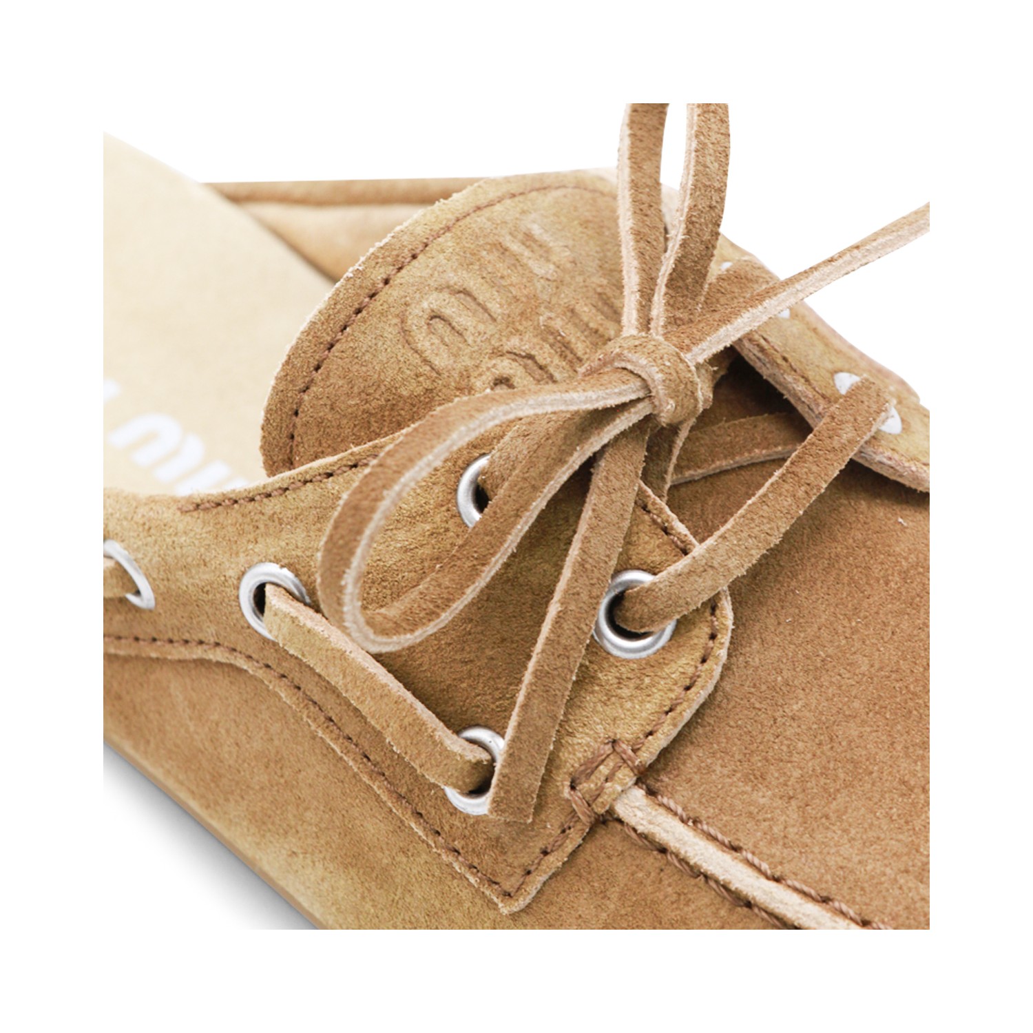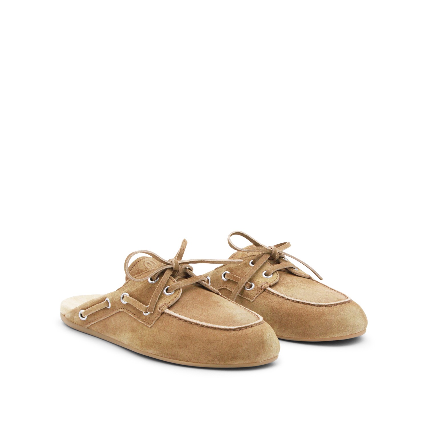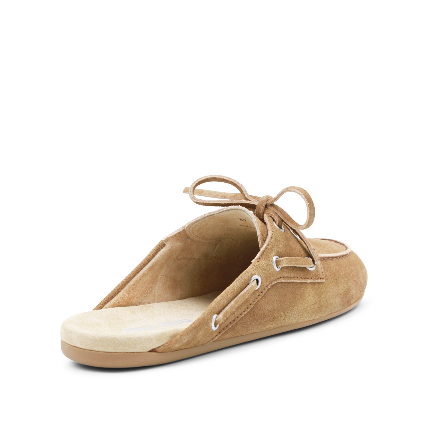 Cannella leather loafers from Miu Miu featuring round toe, laces featurig, open back, slip-on style and rubber sole.