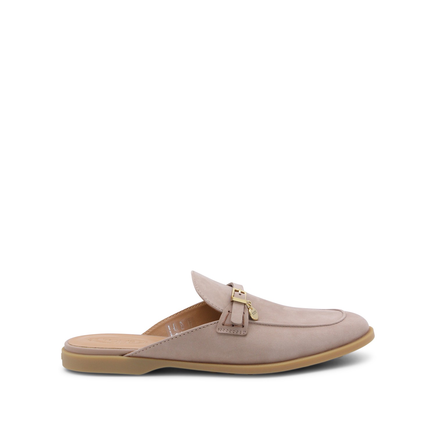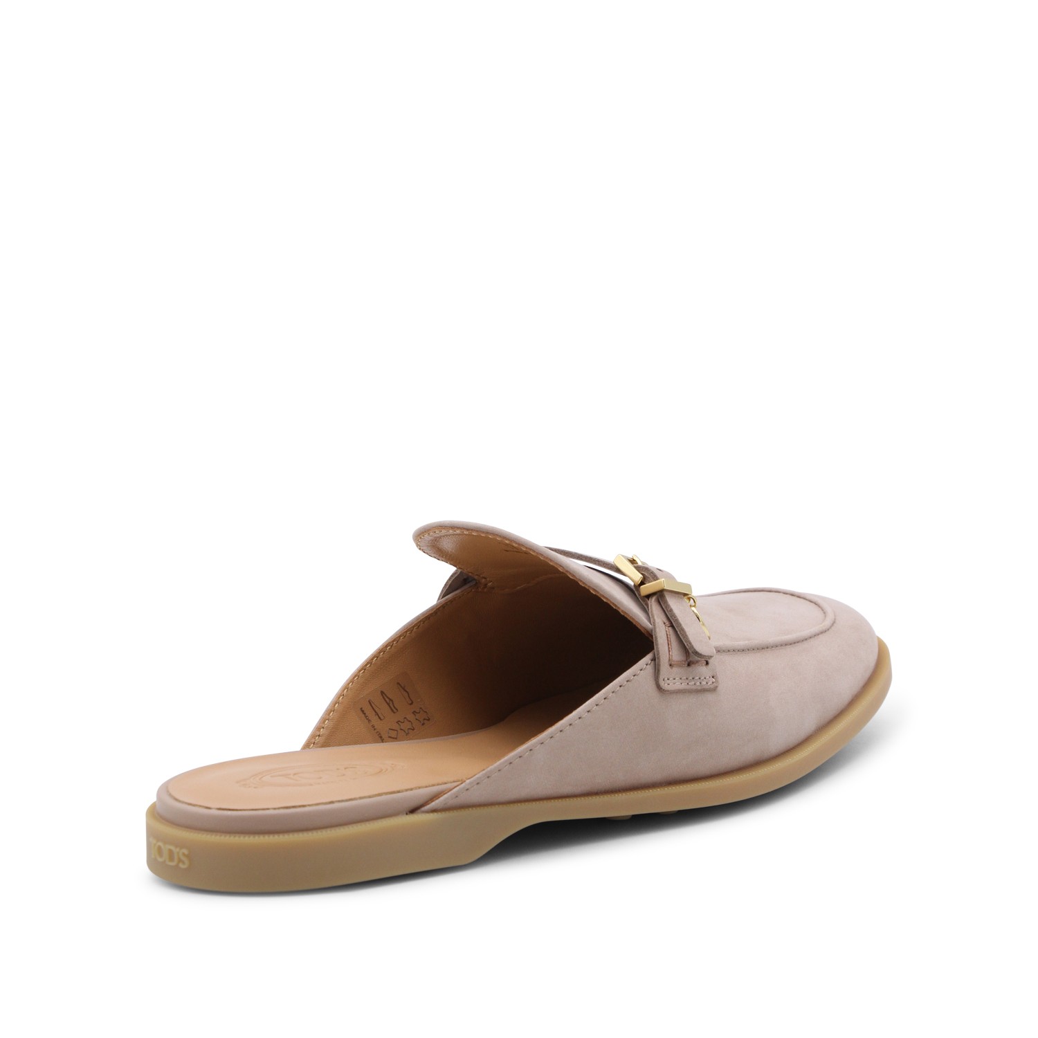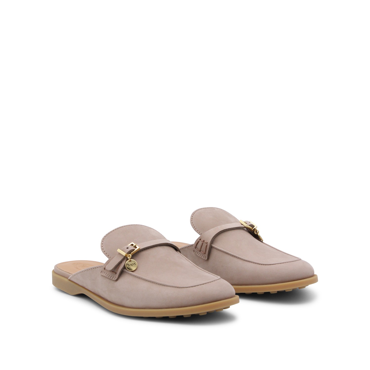 Grey leather loafers from Tod's featuring round toe, open back and leather sole.