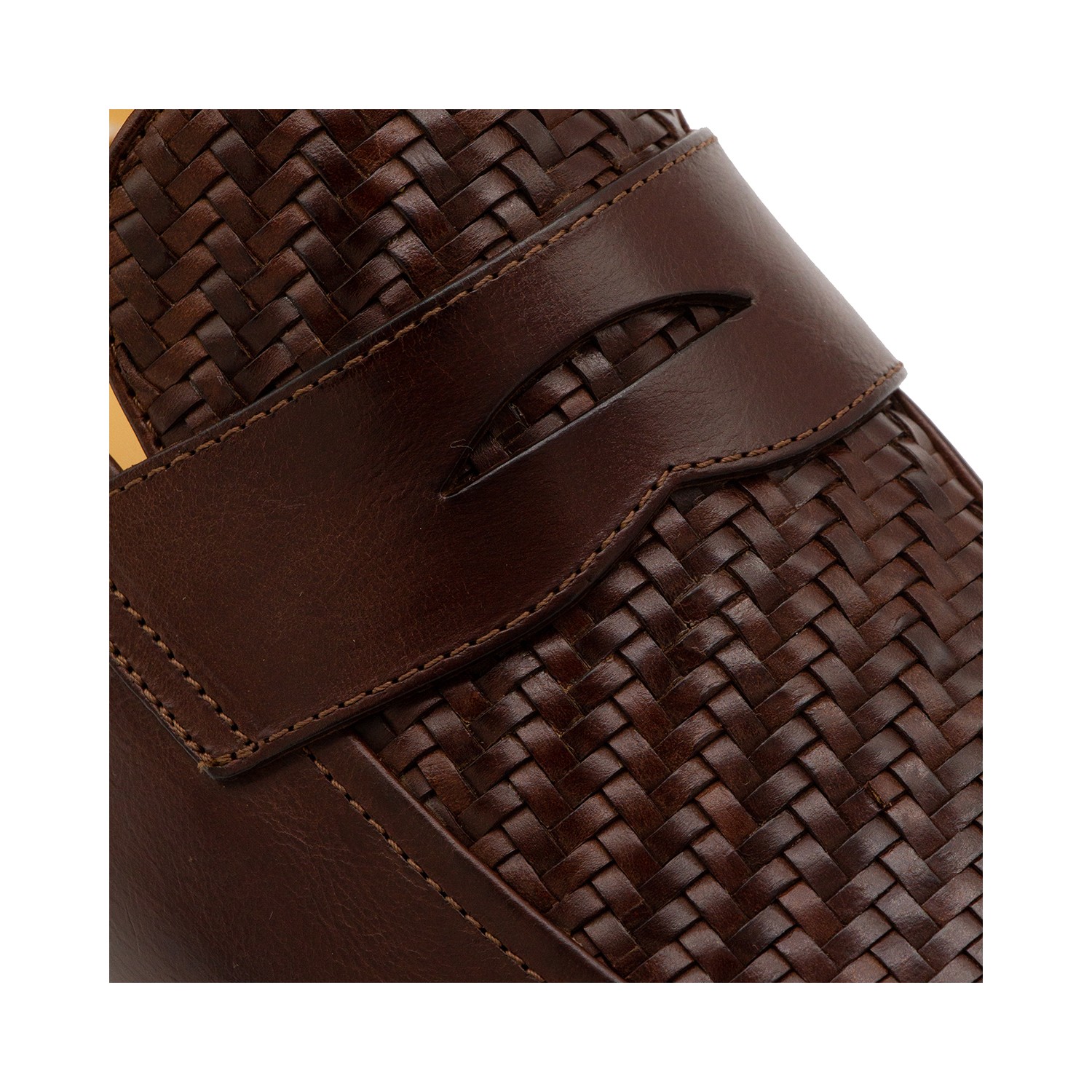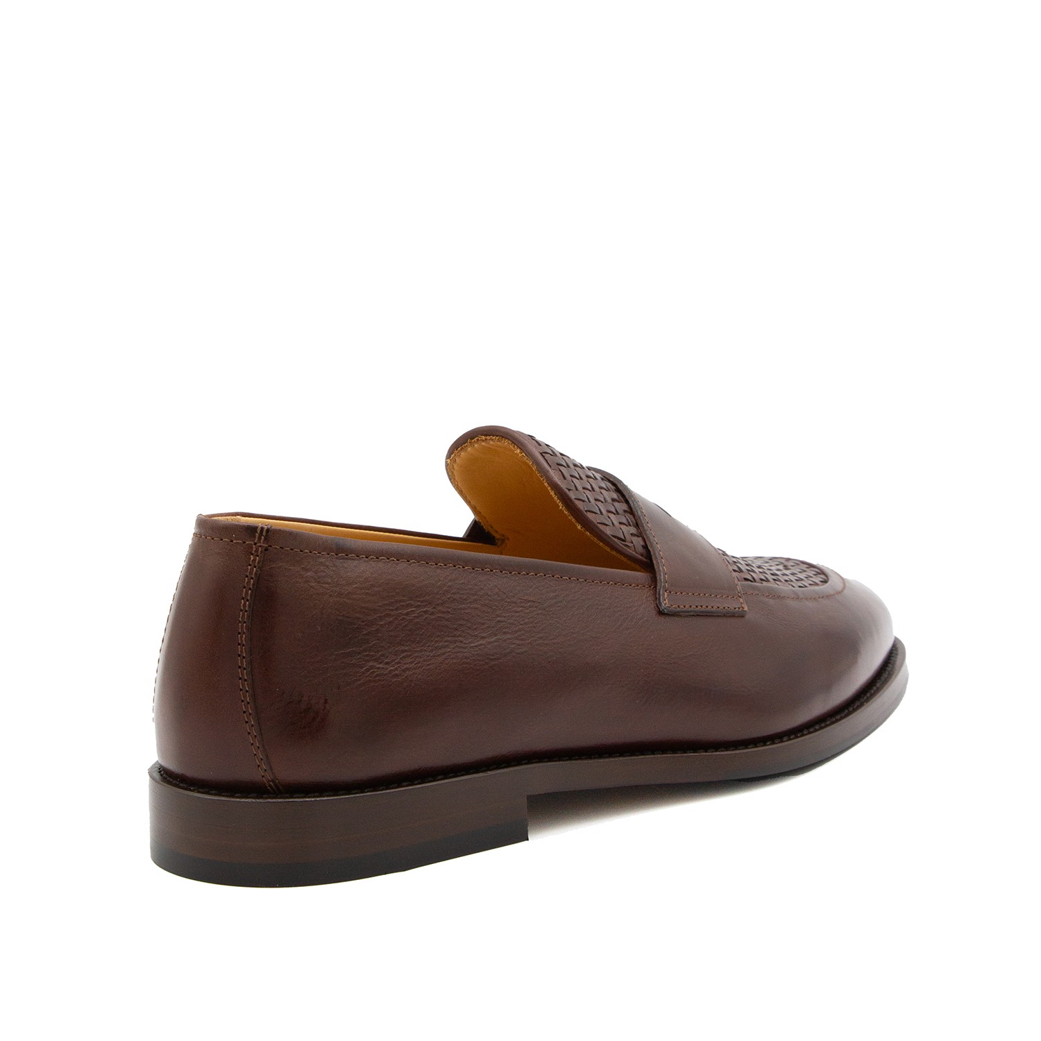 Brown leather loafers from Brunello Cucinelli featuring round toe, slip-on style, branded insole and leather sole.
