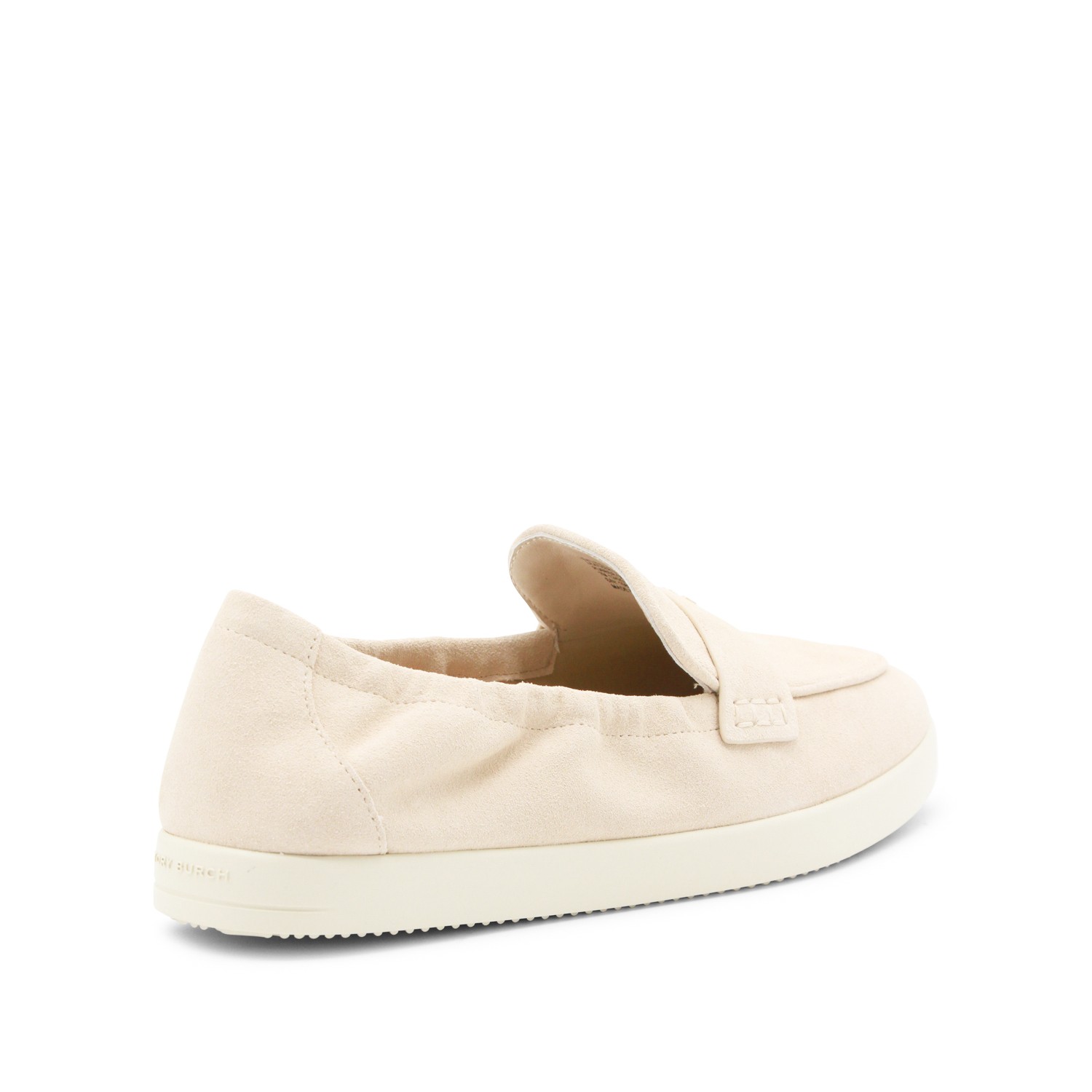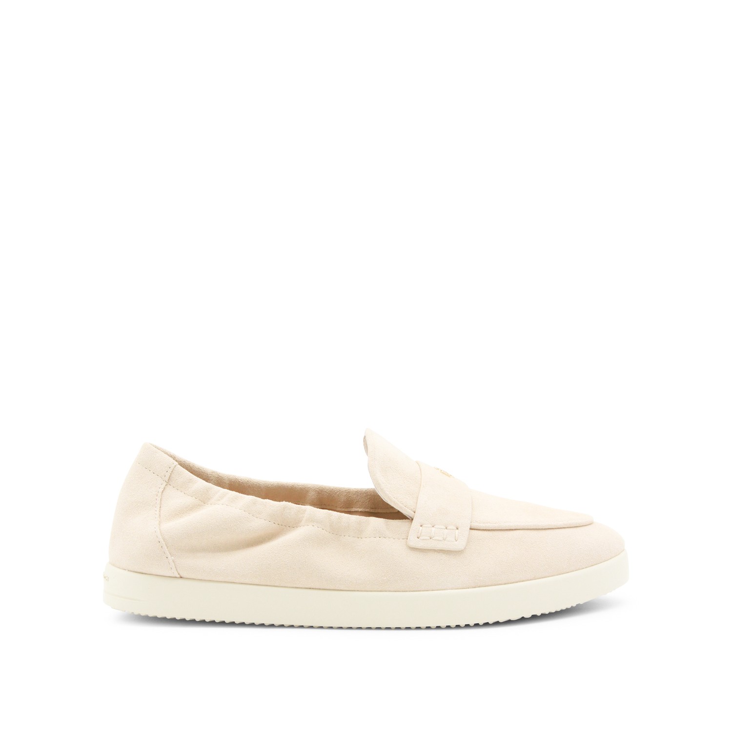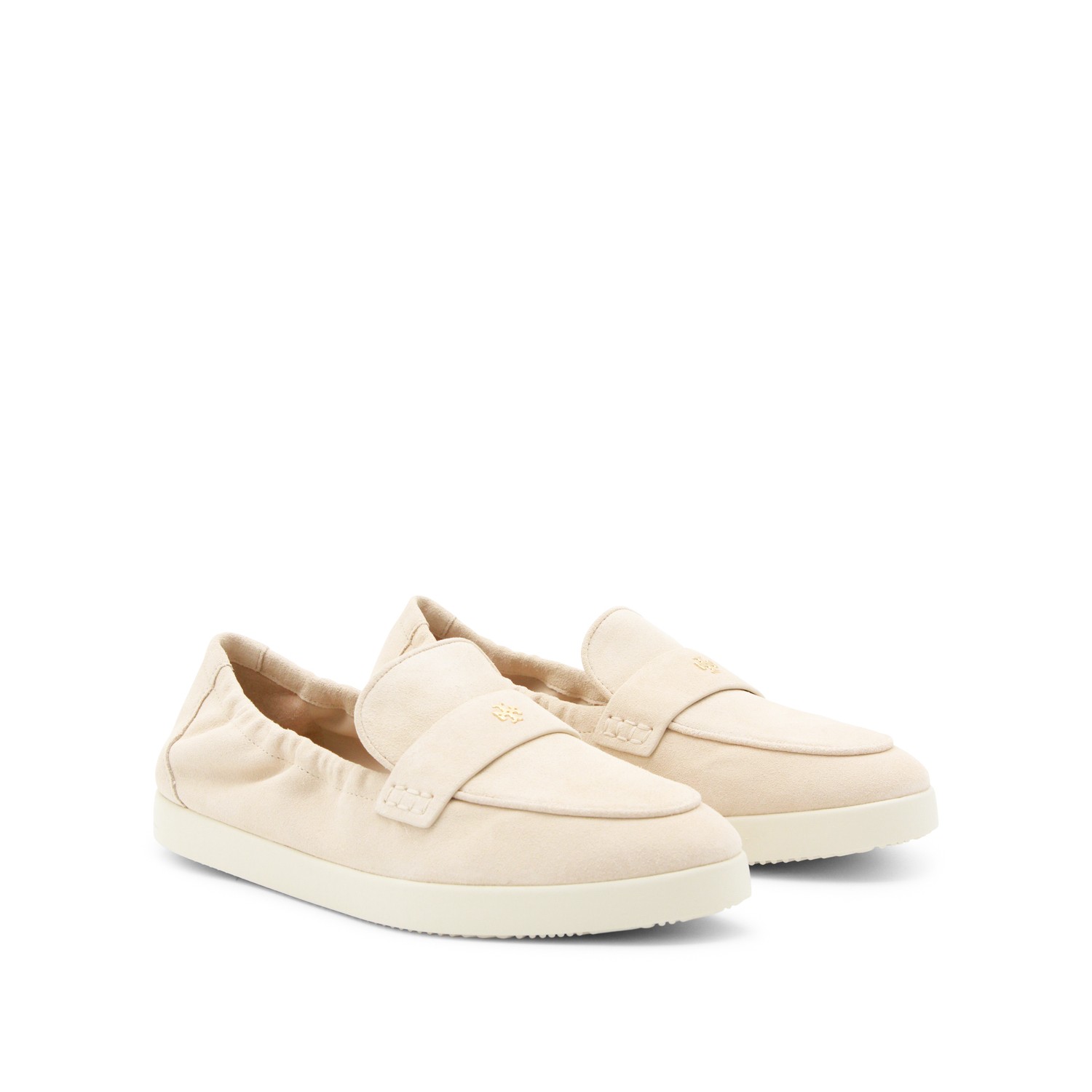 Sand leather loafers from Tory Burch featuring round toe, slip-on style, soft elasticated trim, branded insole and rubber sole.