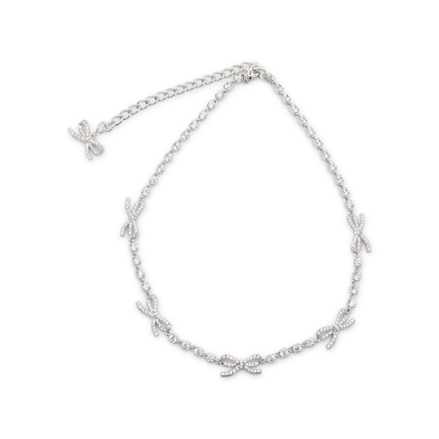 Silver tone necklace from Self-Portrait featuring back fastening, bow detail and gold tone hardware.