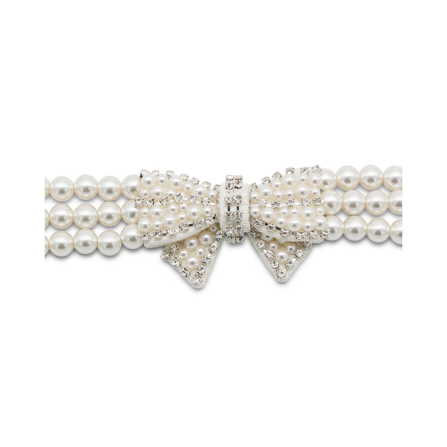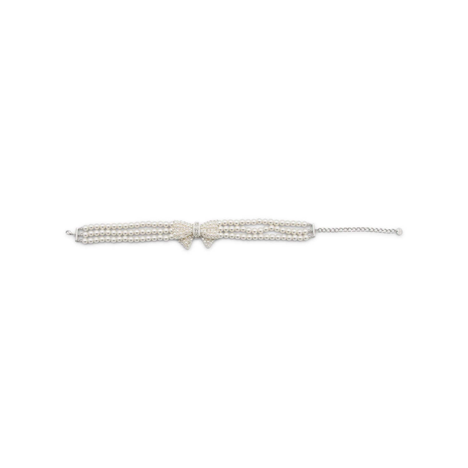 Pearl necklace from Self-Portrait featuring pearls, bow embellishment and silver tone hardware.