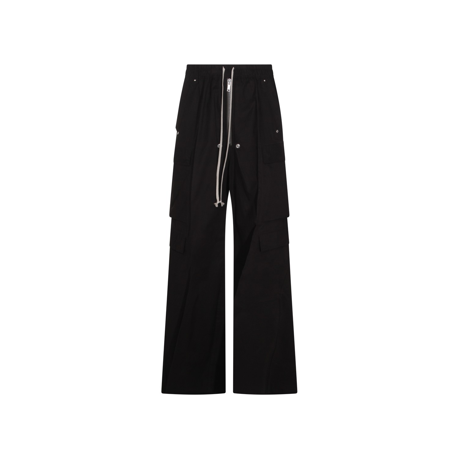 Black cotton pants from Rick Owens featuring high waist, cotton lace fastening, lateral pockets and wide leg.