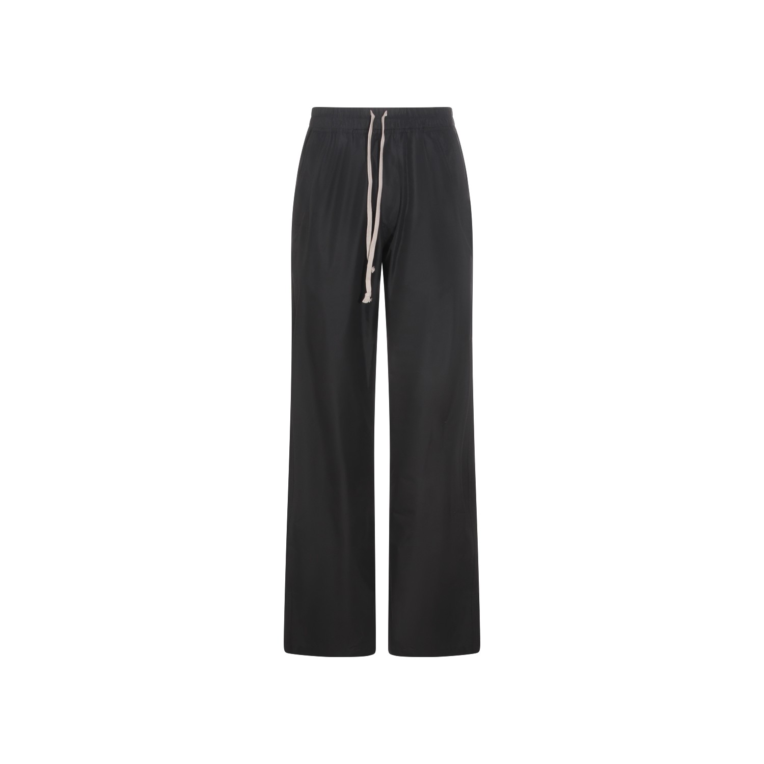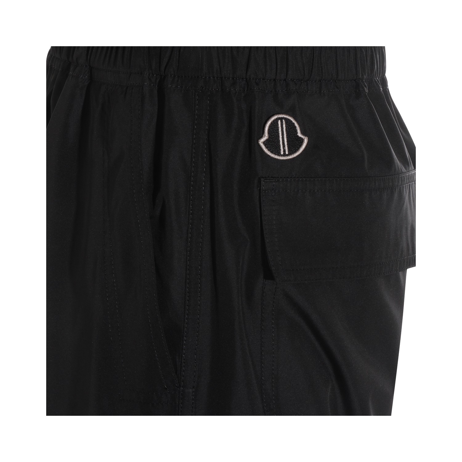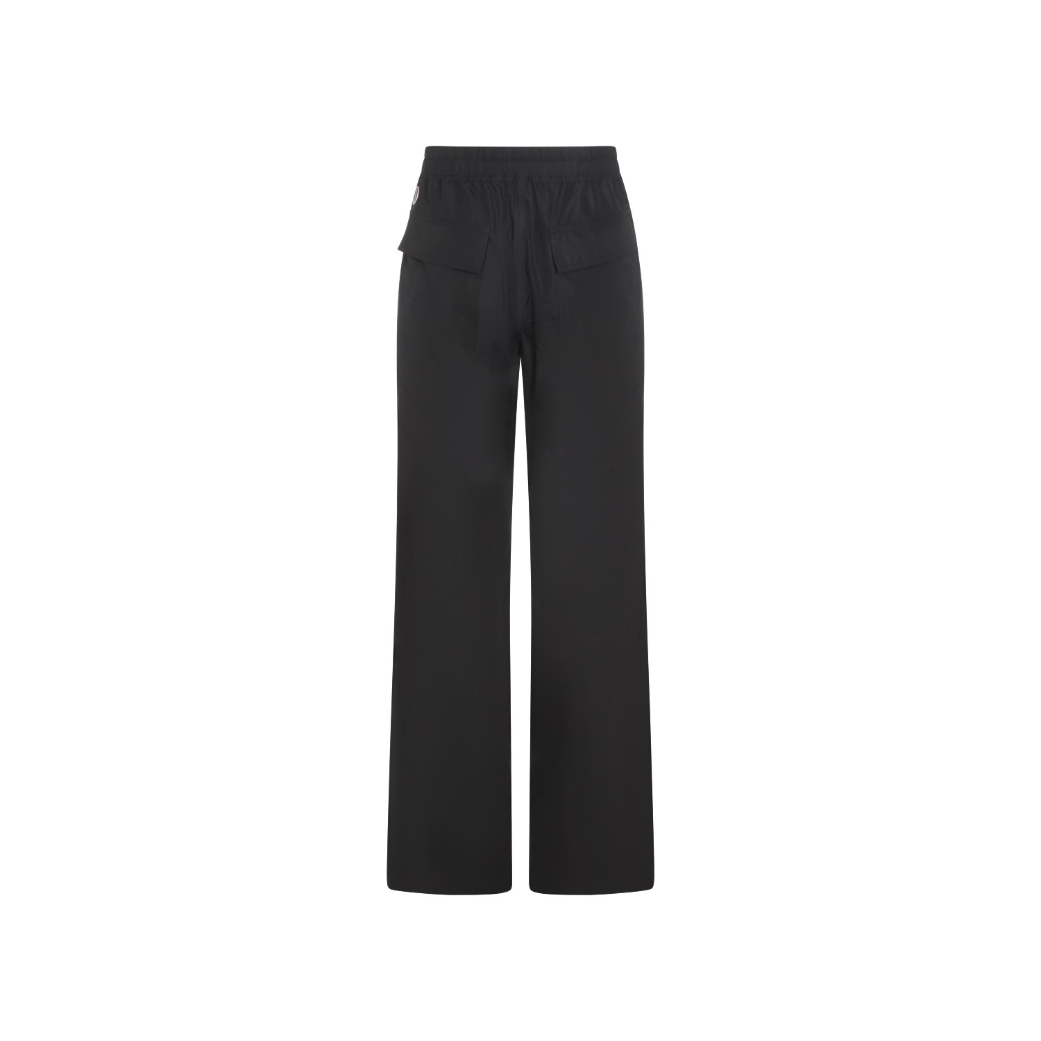 Black pants from Moncler + Rick Owens featuring drawstring waist, welt pockets, patch pockets with button closure, embroidered logo patch and loose fit.