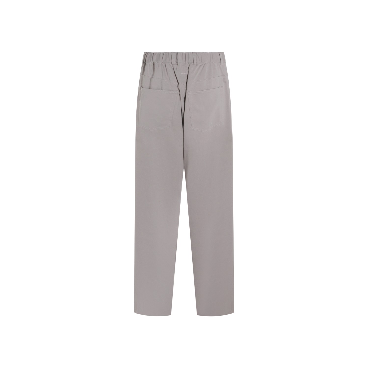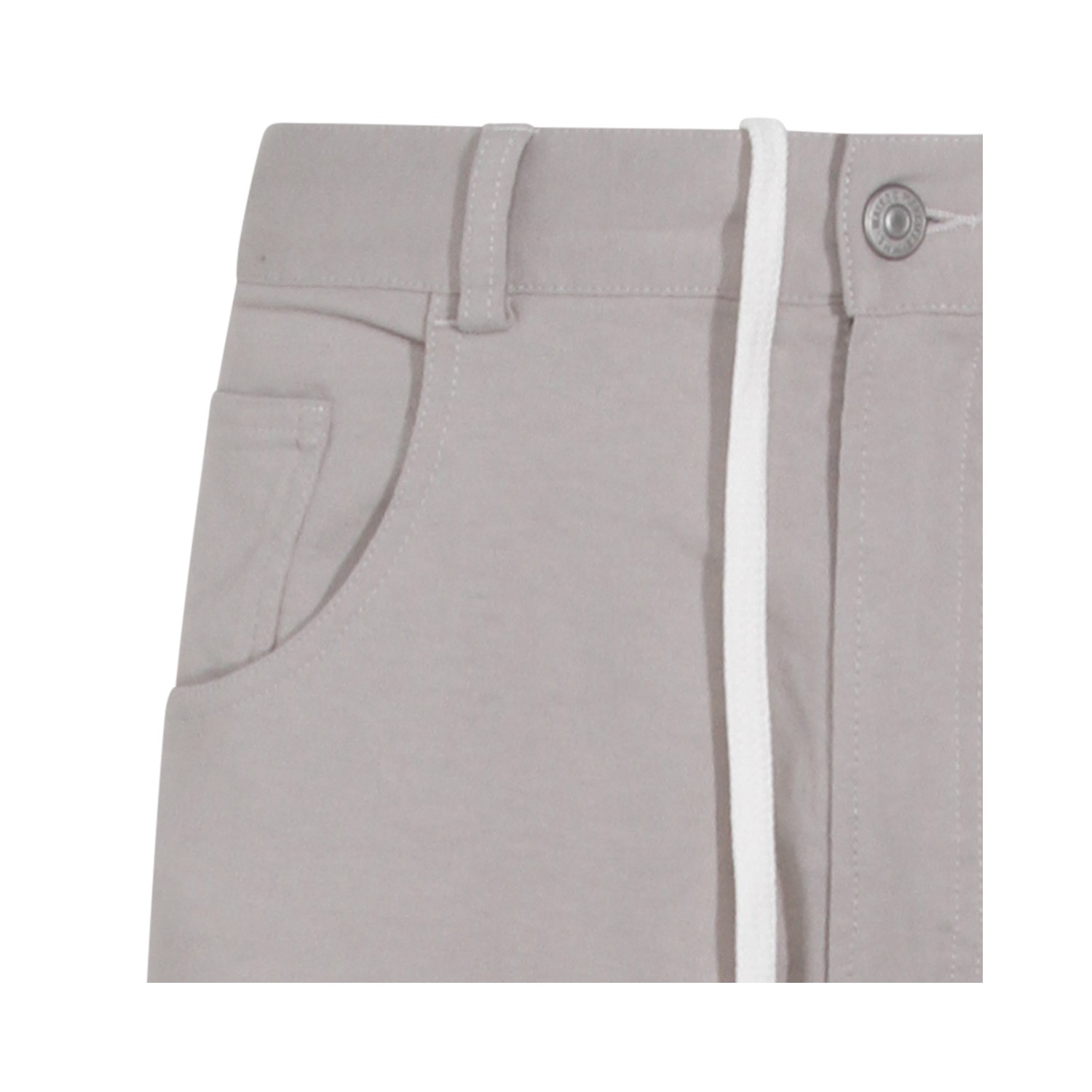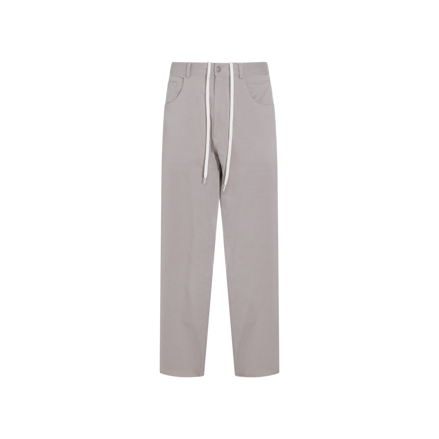 Light grey cotton pants from MM6 Maison Margiela featuring elasticated waist, belt loops, button and zip fastening, cotton laces, five pockets, straight leg and regular fit.