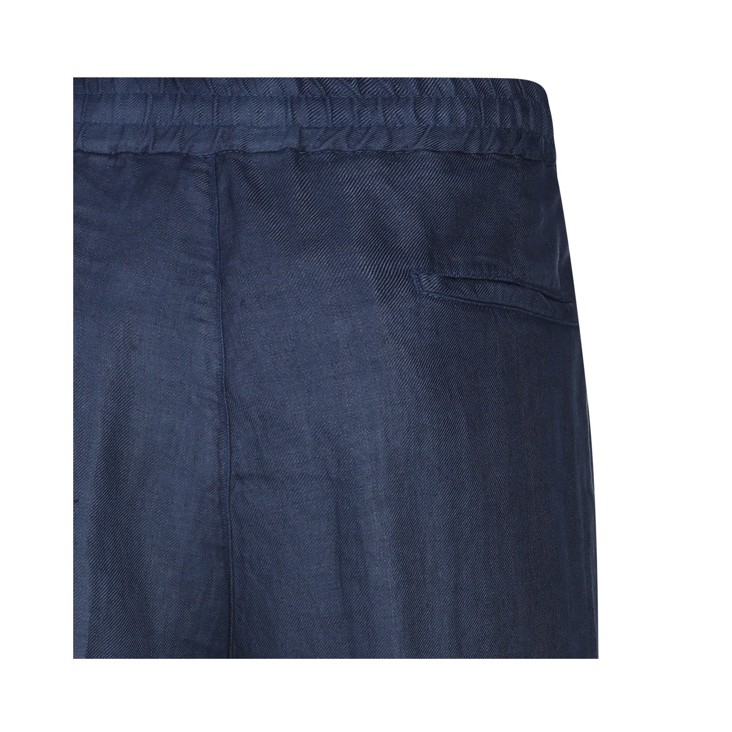 Navy linen pants from Brunello Cucinelli featuring high elasticated waist, cotton laces, back pockets and regular vestibility.