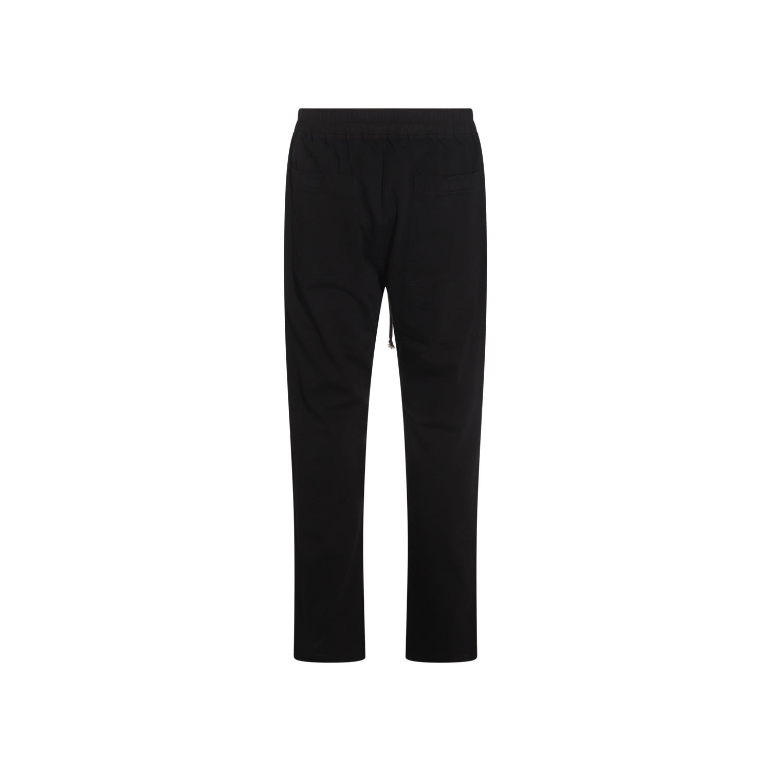 Black cotton Berlin Drawstring pants from Rick Owens DRKSHDW featuring drawstring detail, elasticated waist band, side pockets, regular fit and straight line.