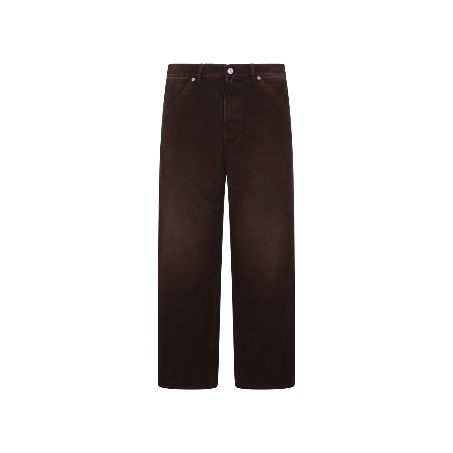 Cocoa cotton pants from Marni featuring regular fit, mid waist, classic five pockets, button closure and belted waist.