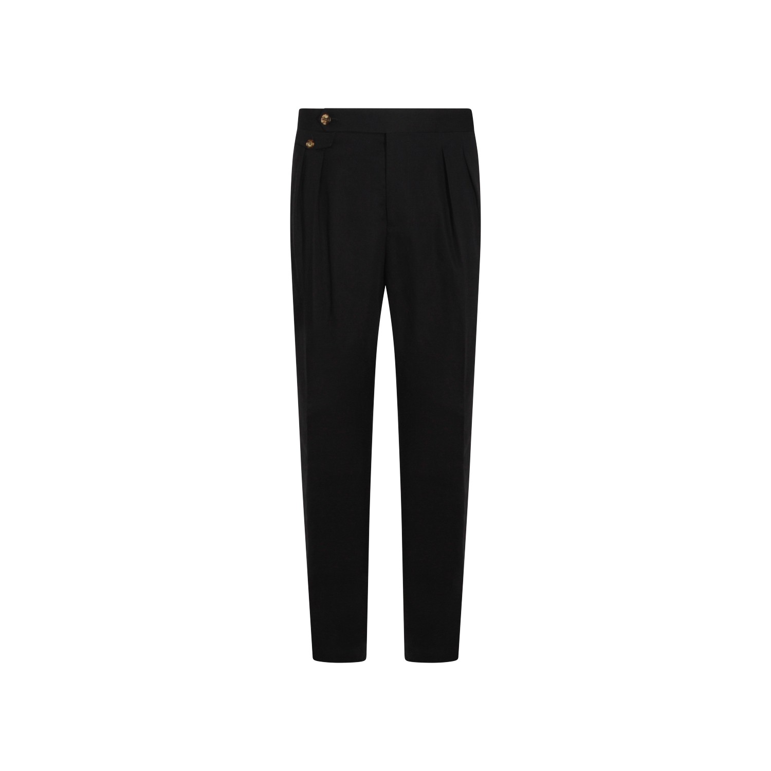 Black cotton and linen blend pants from Brunello Cucinelli featuring mid waist, belted details, classic pockets, zp closure fastening and button closure.