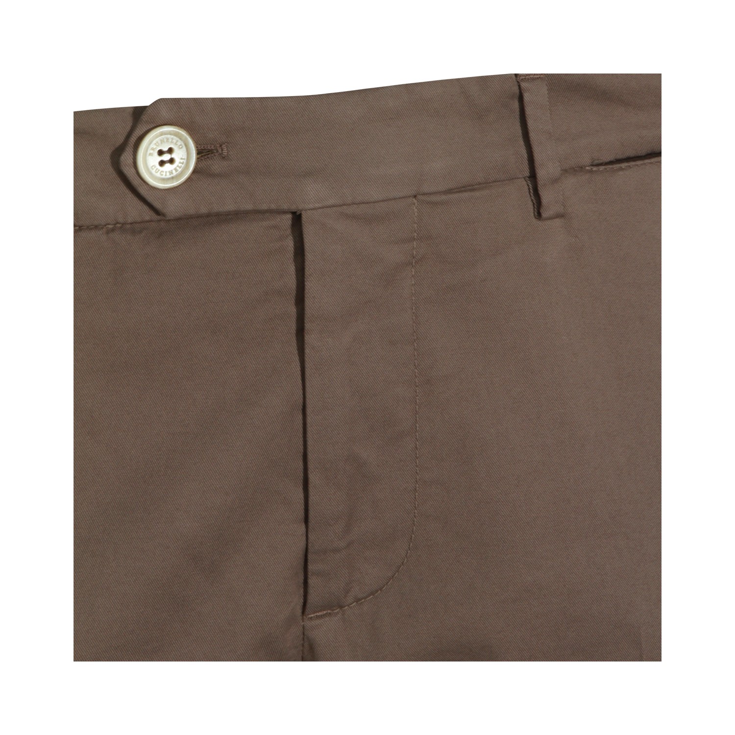 Brown cotton pant from Brunello Cucinelli featuring belt loops, zip and button fastening, straight leg and regular vestibility.