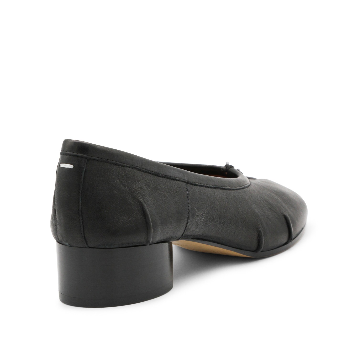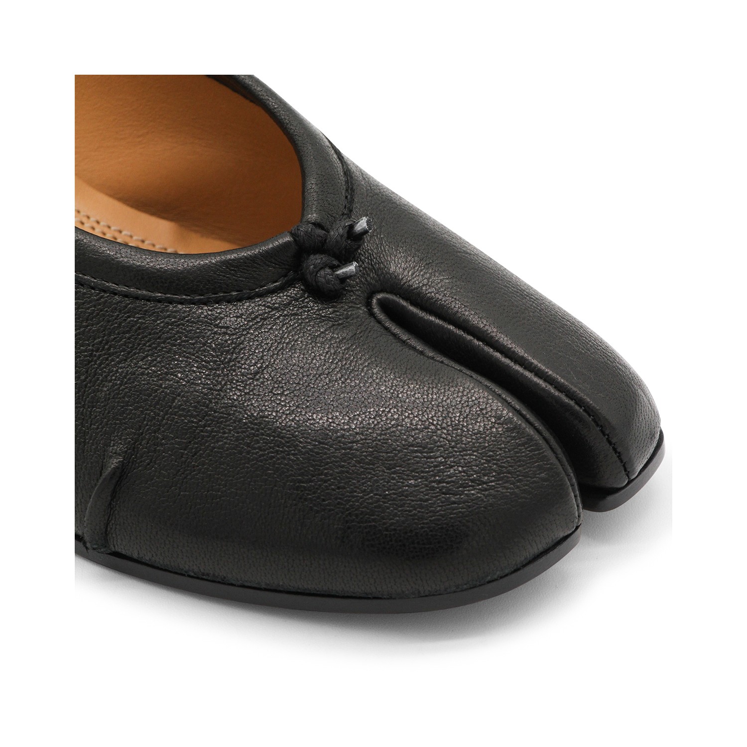 Black leather pumps from Maison Margiela featuring Tabi toe, slip-on style and squared heel.